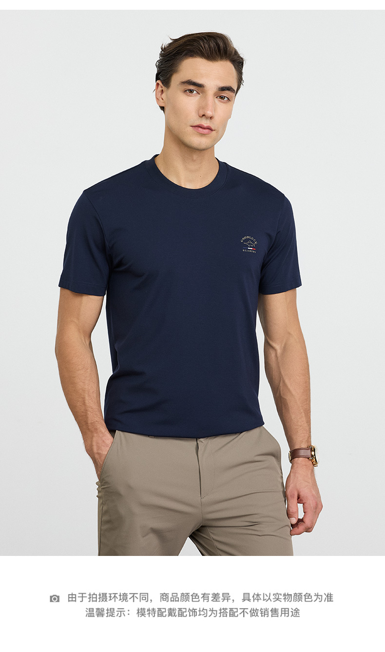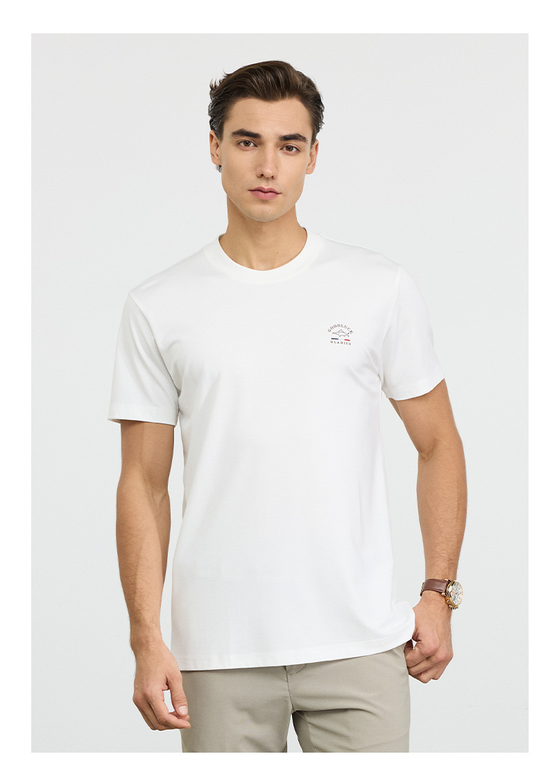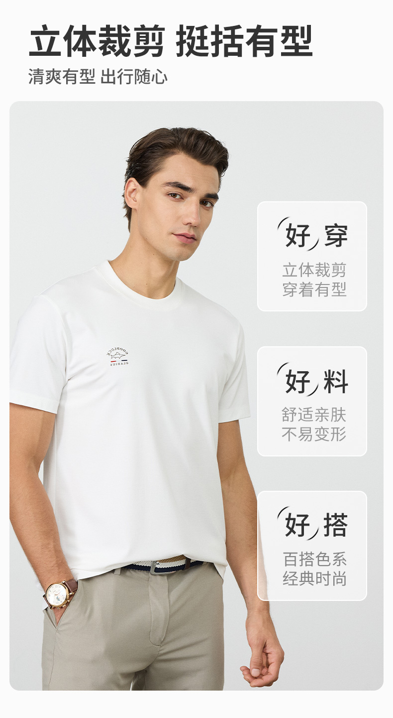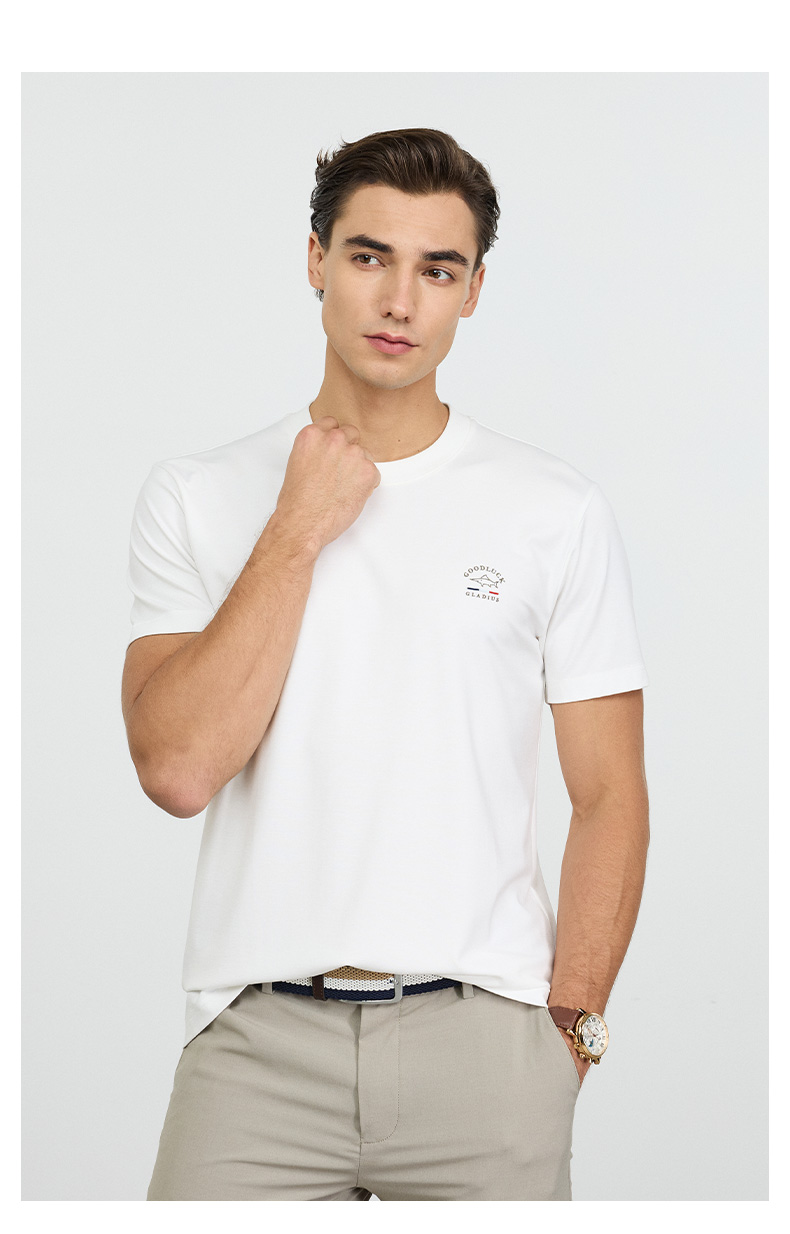 【凉感】德鲨白色圆领短袖T恤男2026夏新款休闲百搭上衣打底衫男