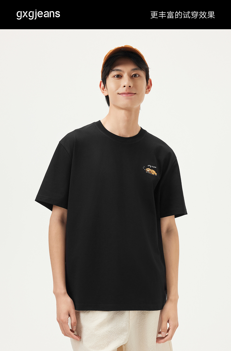 gxg.jeans男装 多色趣味绣花休闲宽松时尚圆领短袖T恤男 25夏热卖