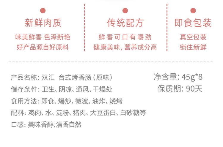 双汇 火腿肠 台式烤香肠 原味 45g*8支 /袋