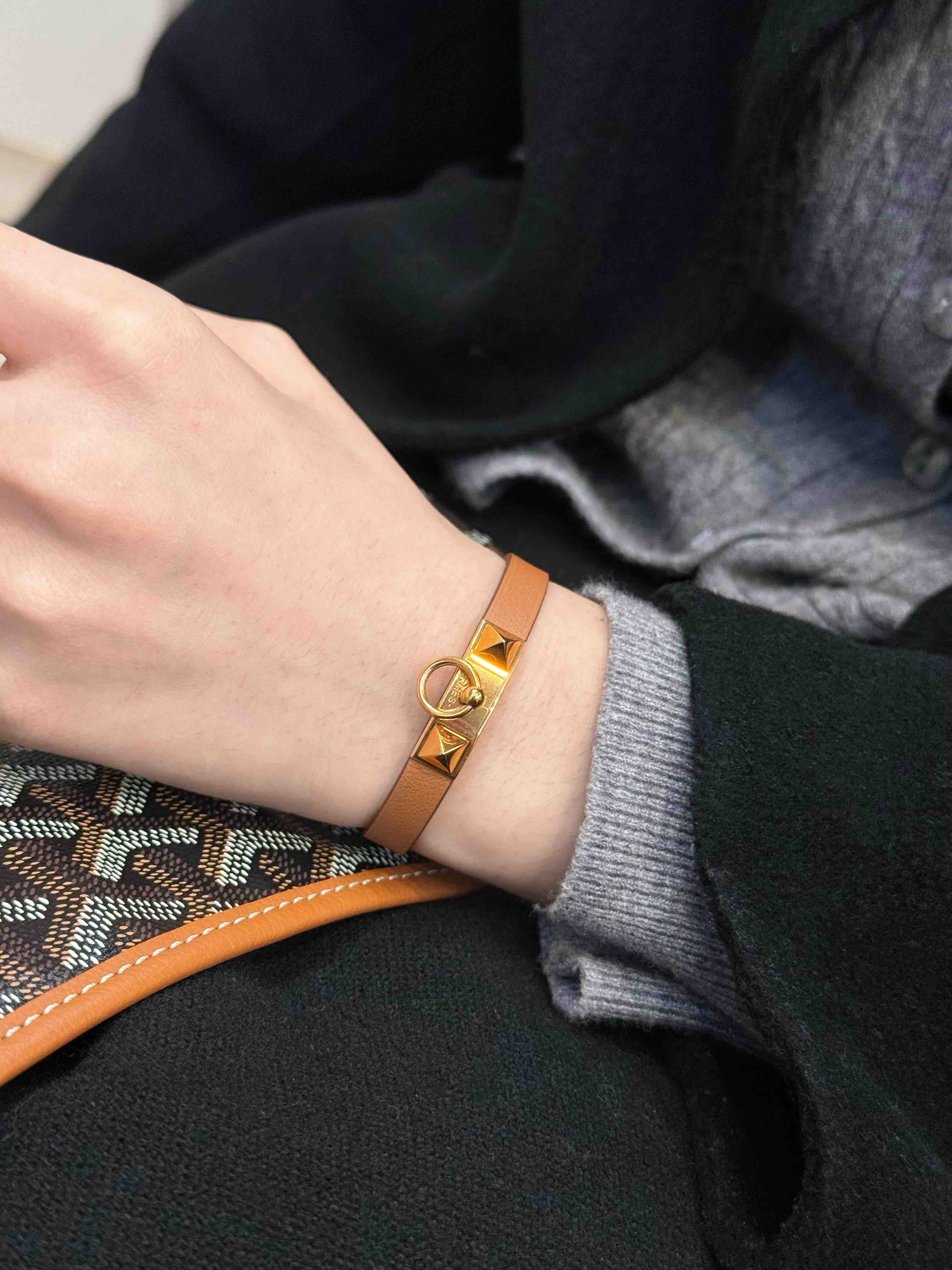 爱马仕 玫瑰金 金棕 swif皮 Rivale mini 手环