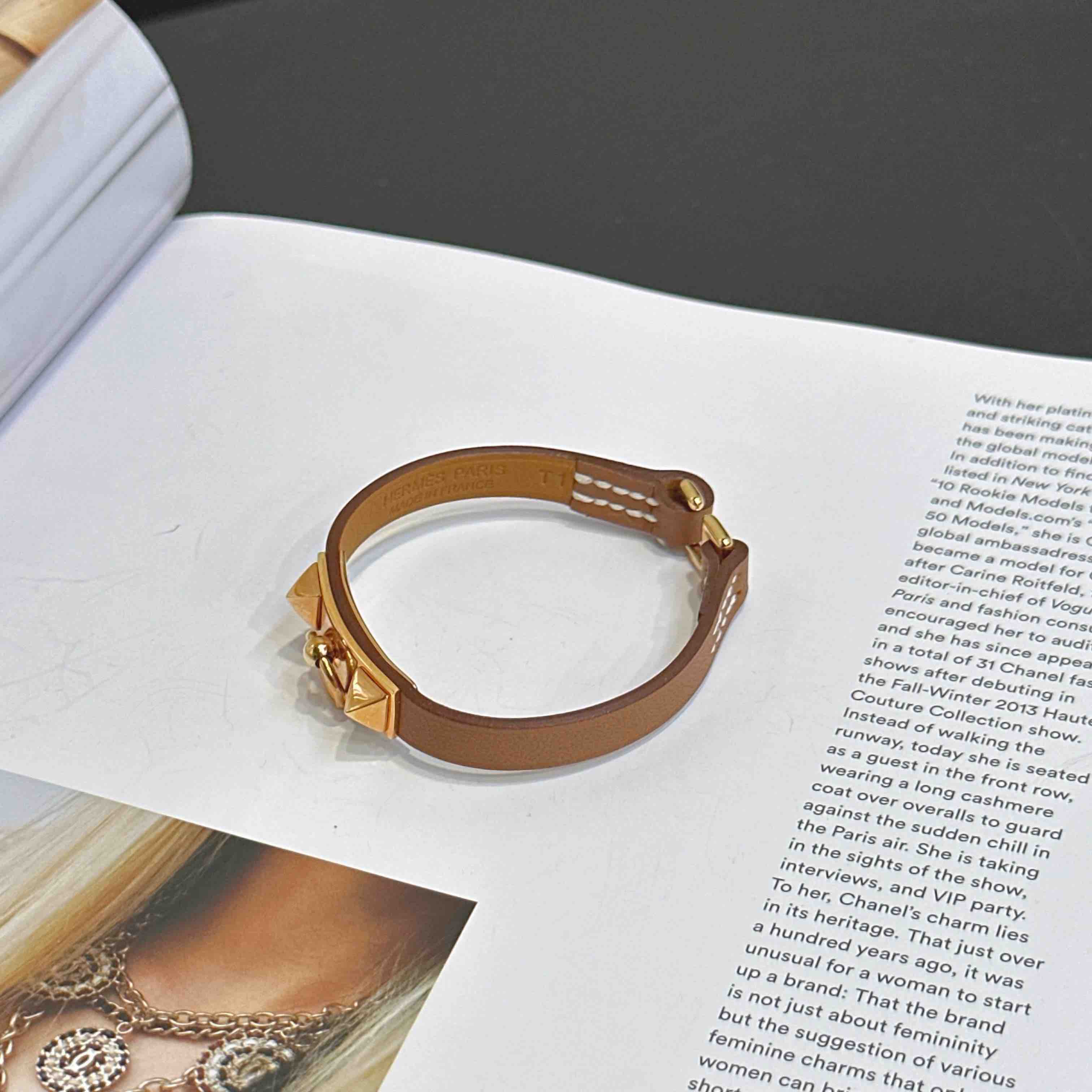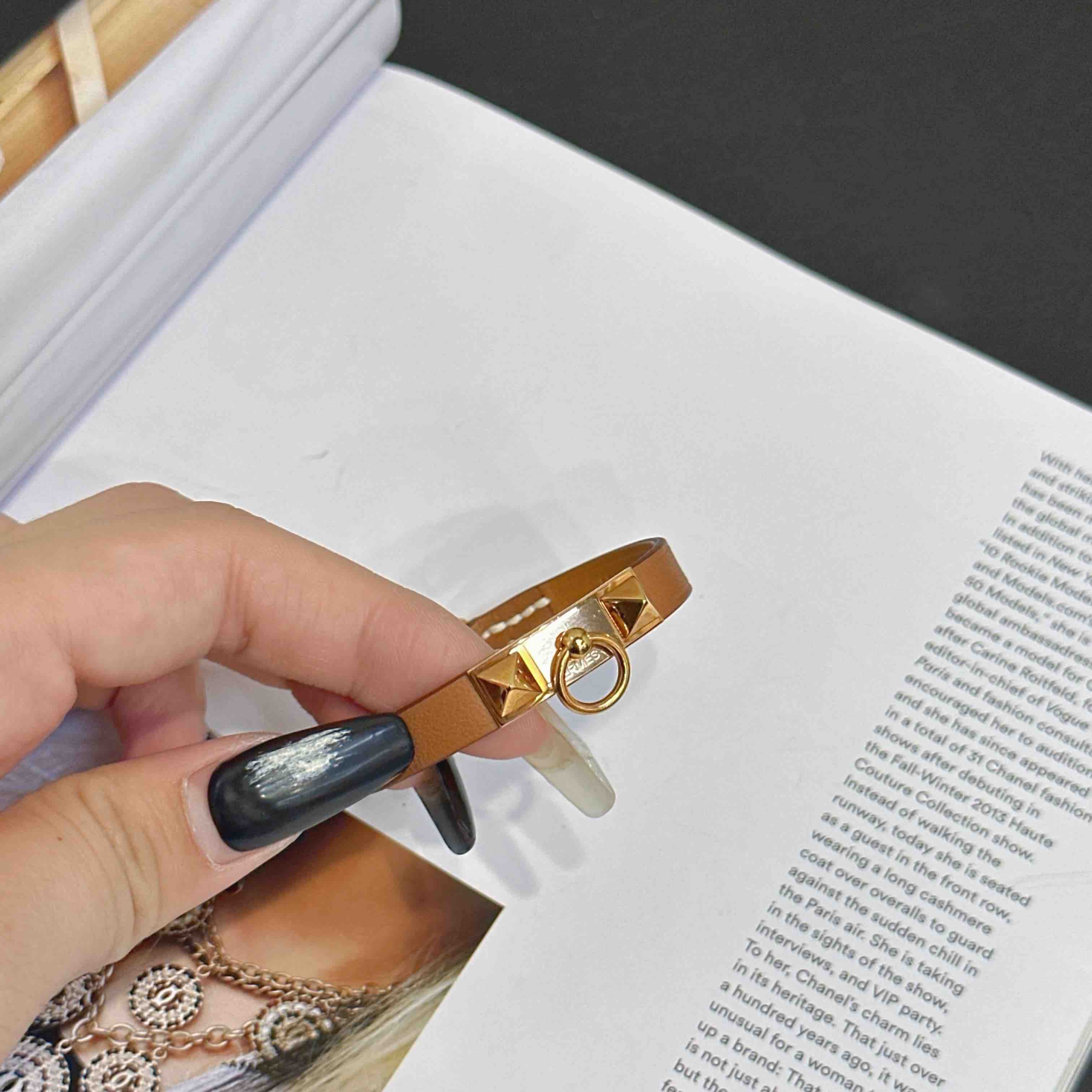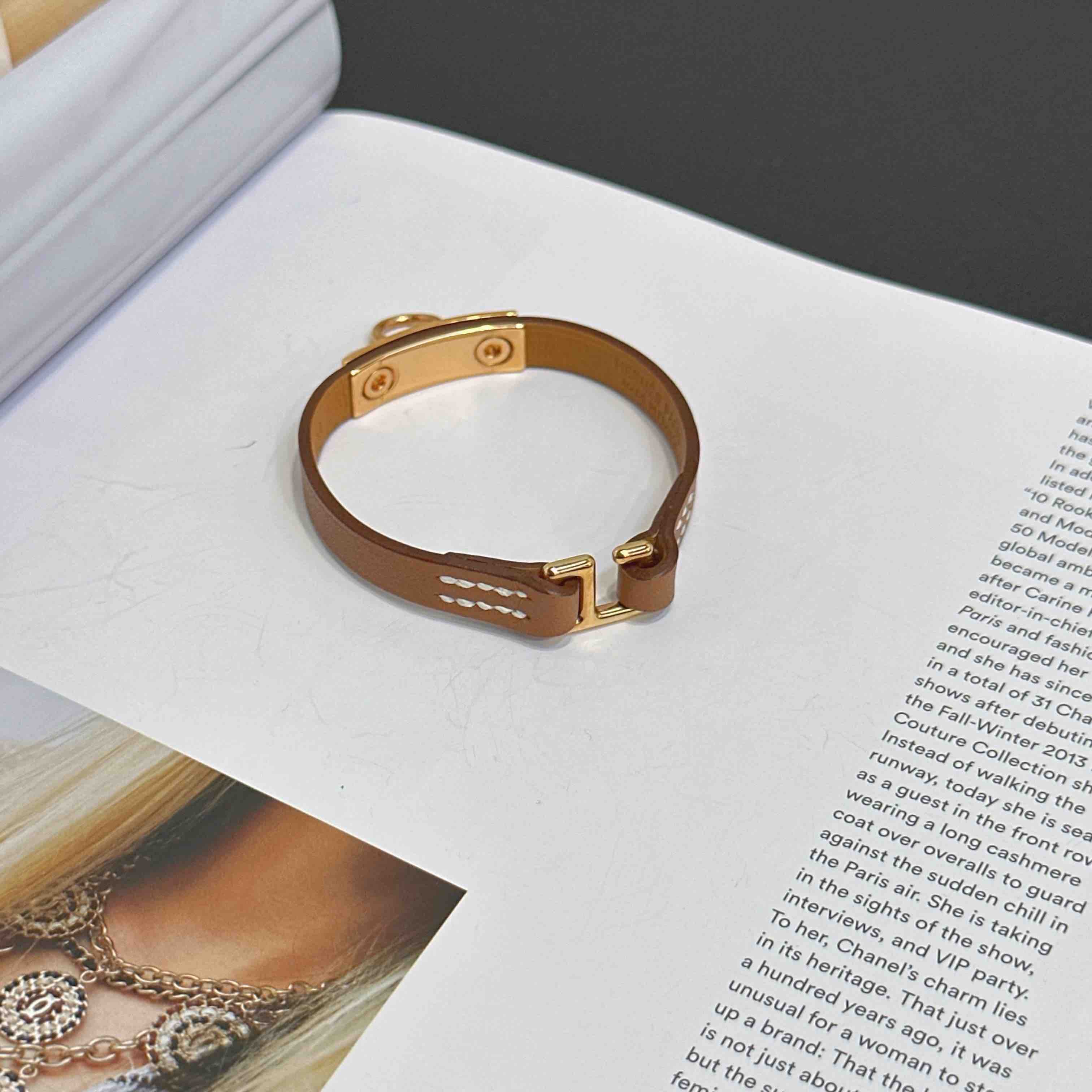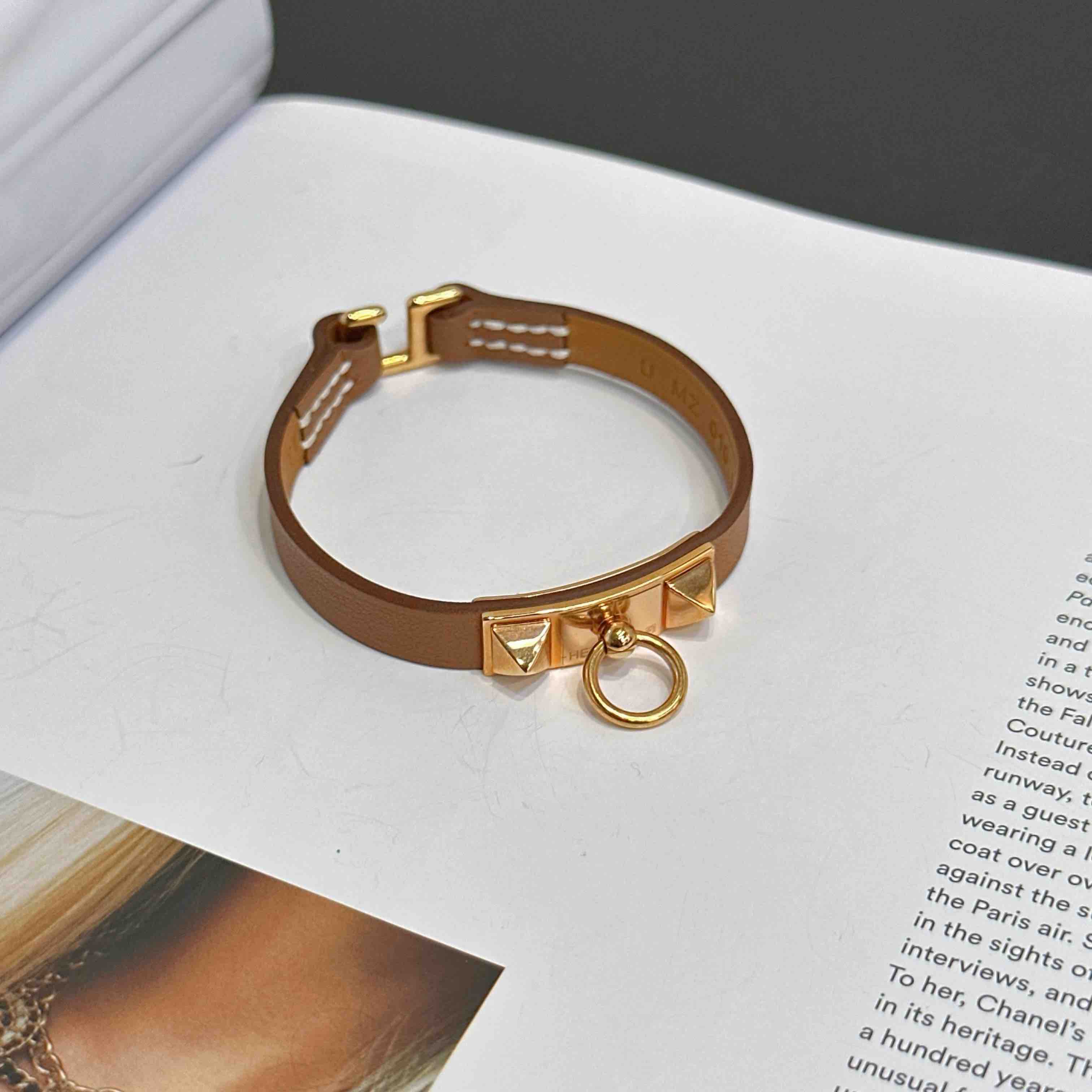 【商品詳情】正品二手 爱马仕 玫瑰金 金棕 swif皮 Rivale mini 手环🎁 99新 15cm 配件:防尘袋 。专柜成色 自用送人非常可