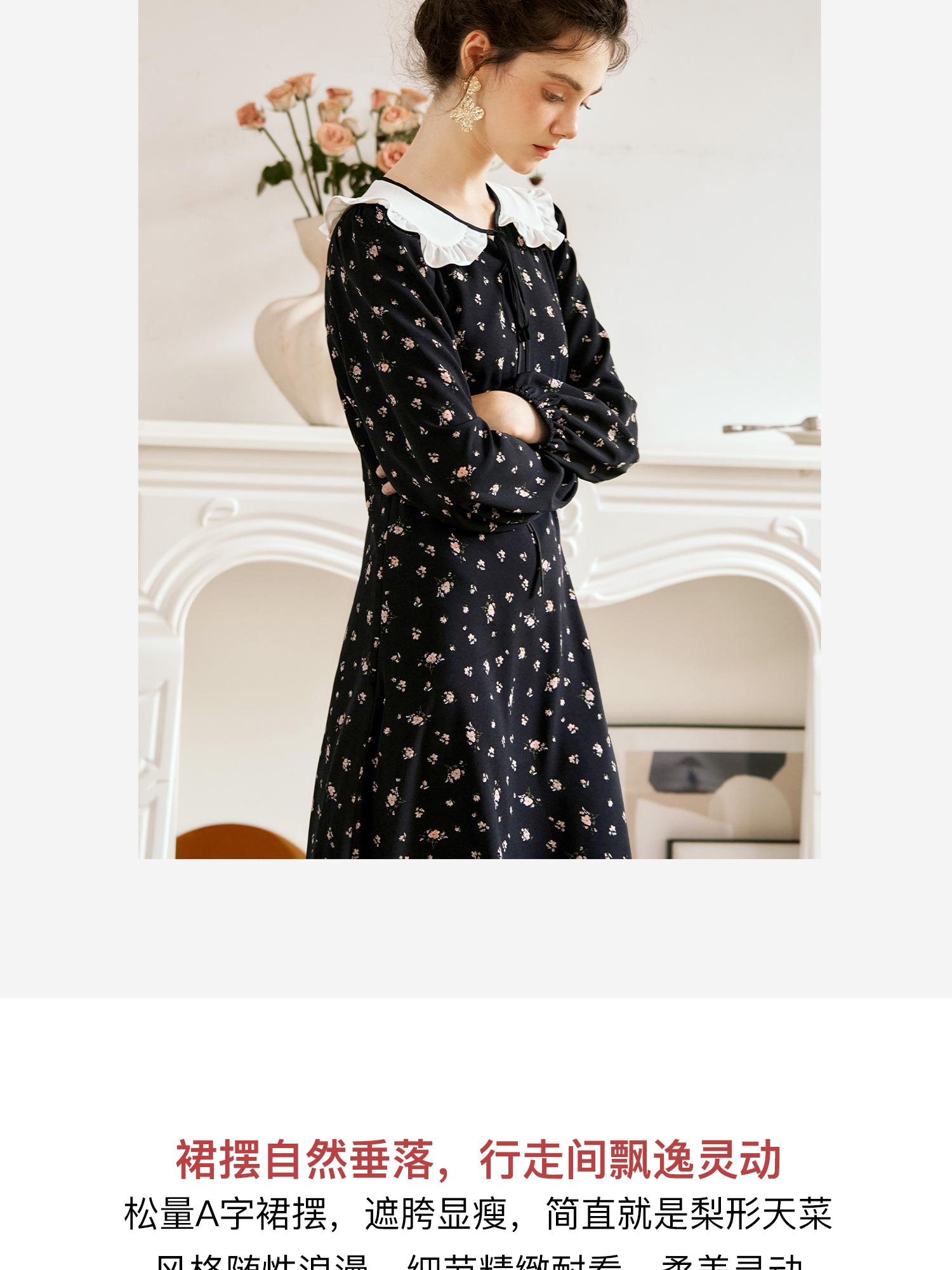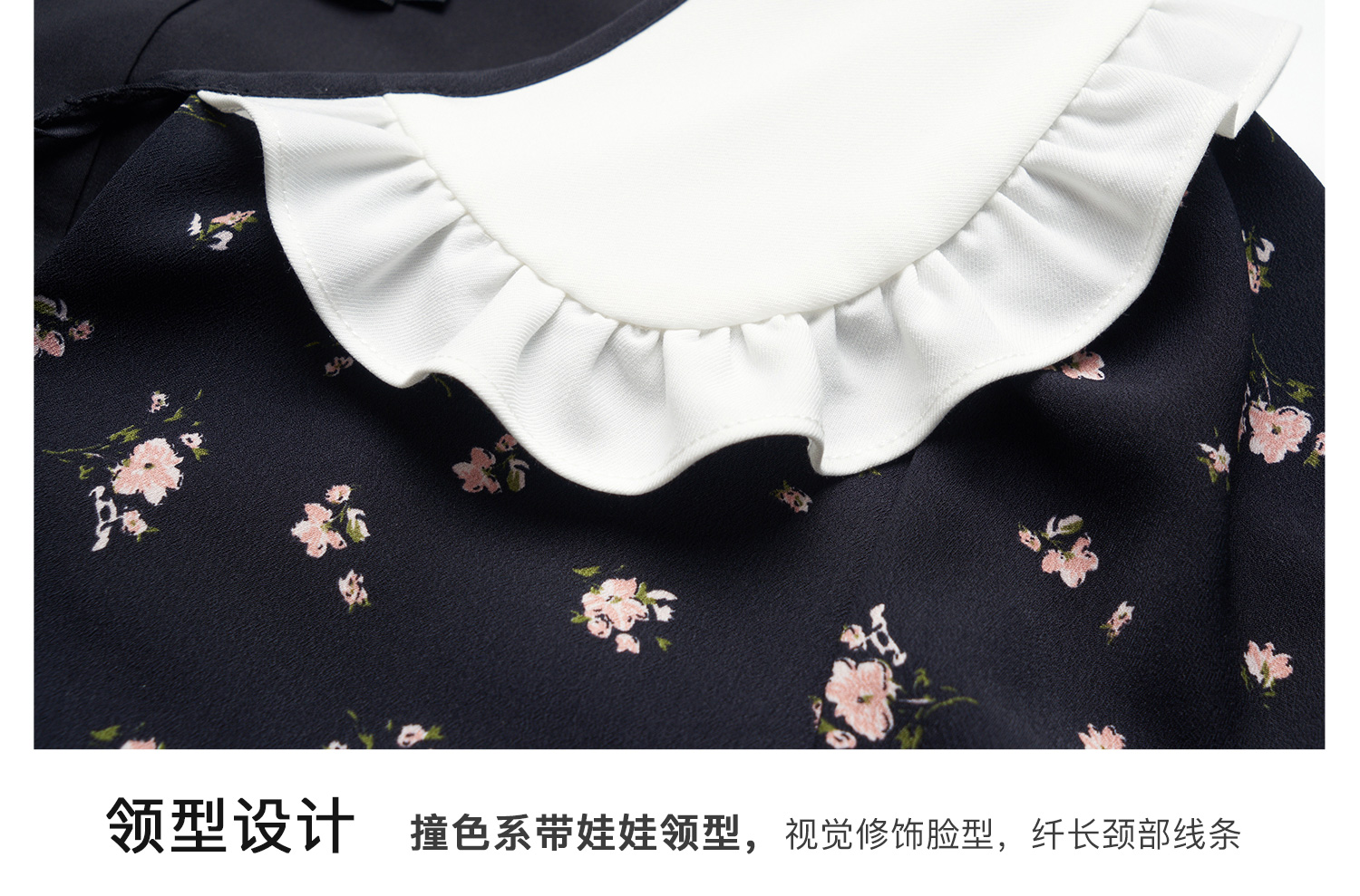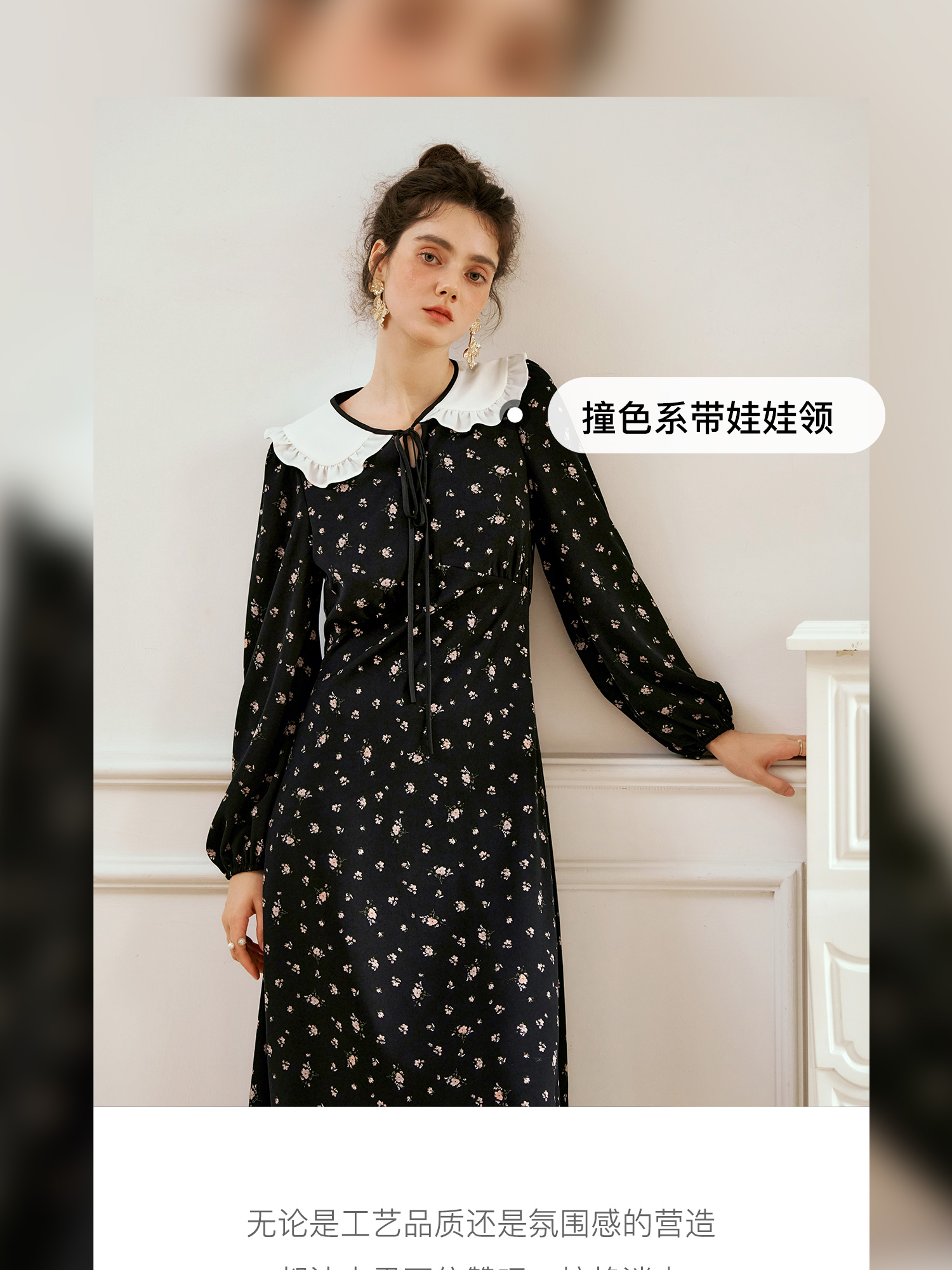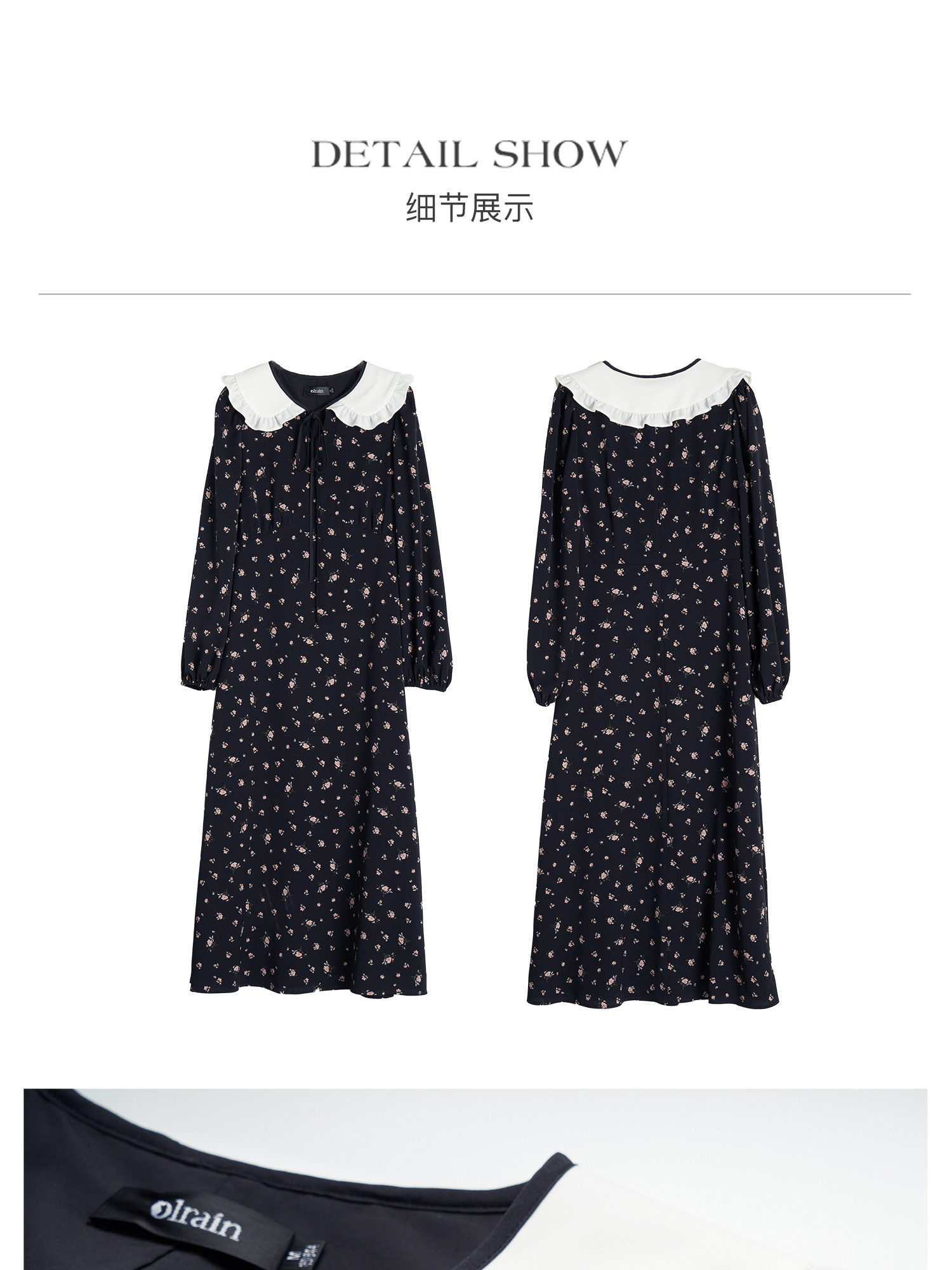 OLrain欧芮儿法式连衣裙女秋季2024年新款碎花雪纺娃娃领长袖裙子