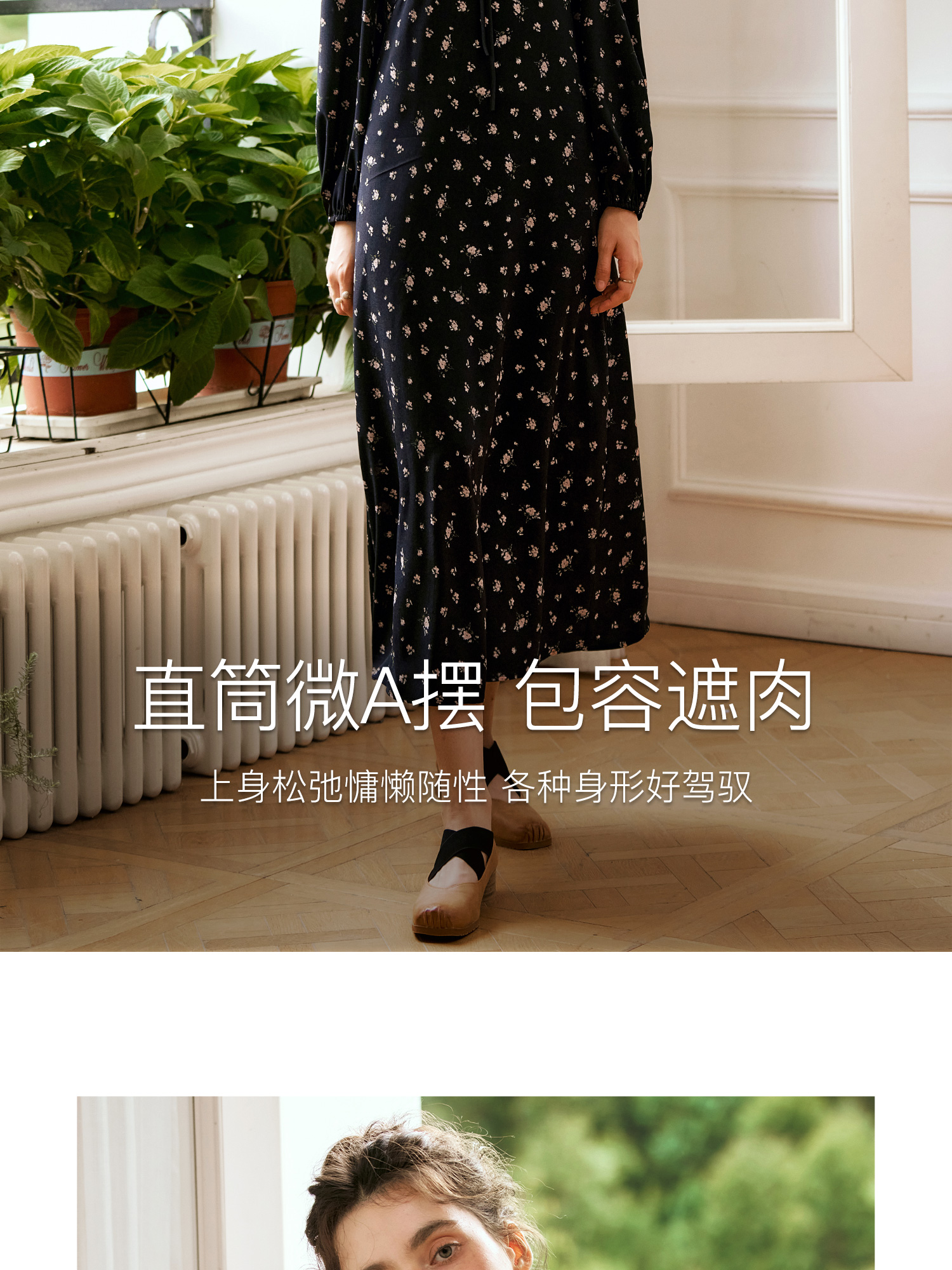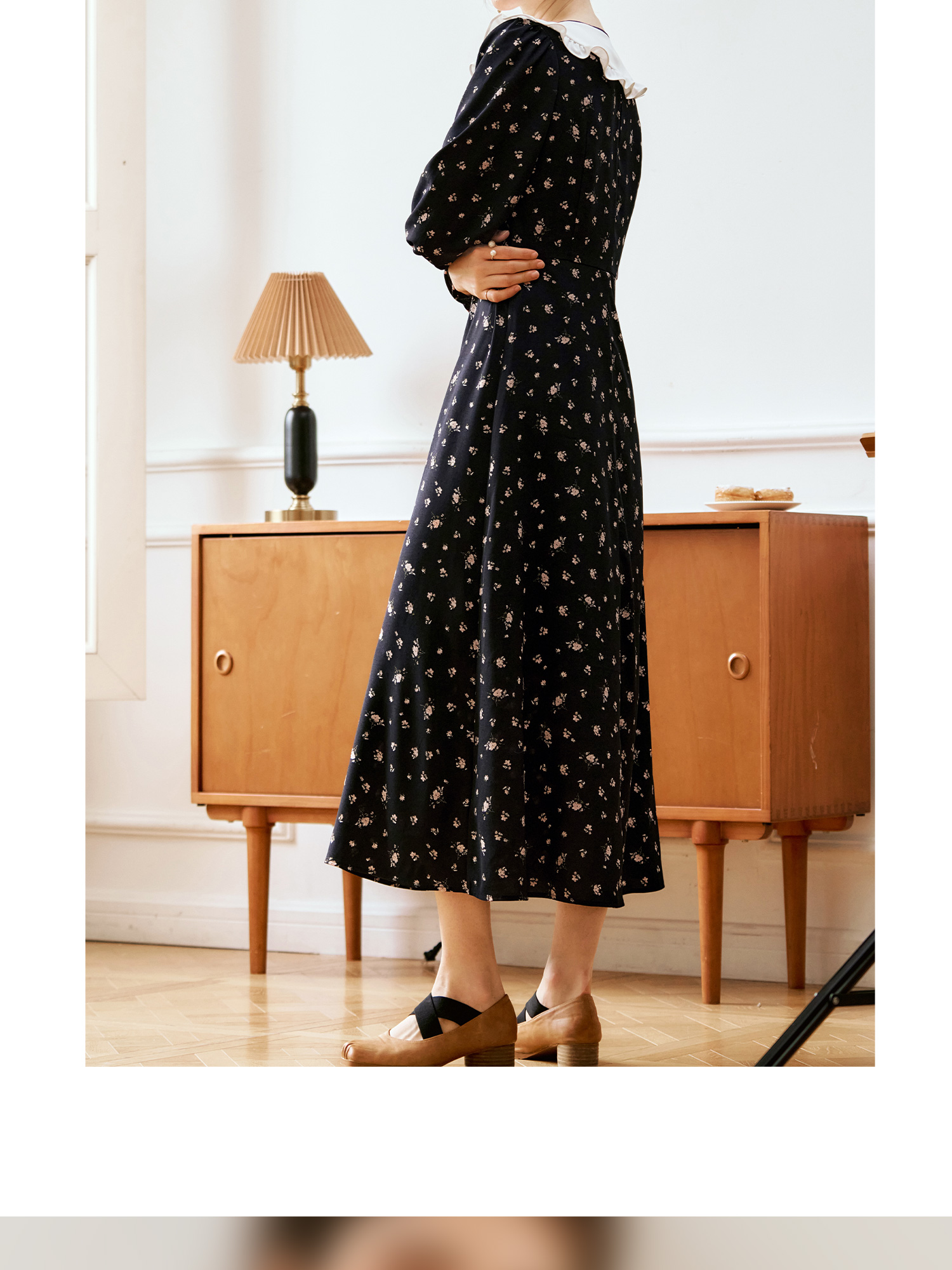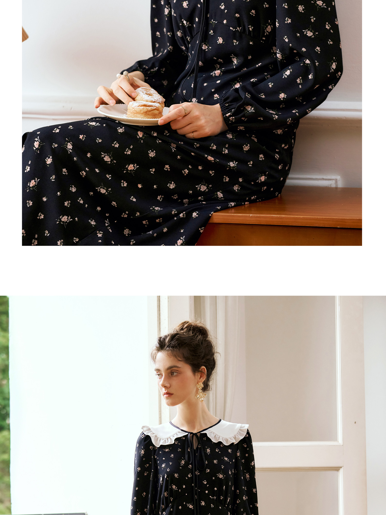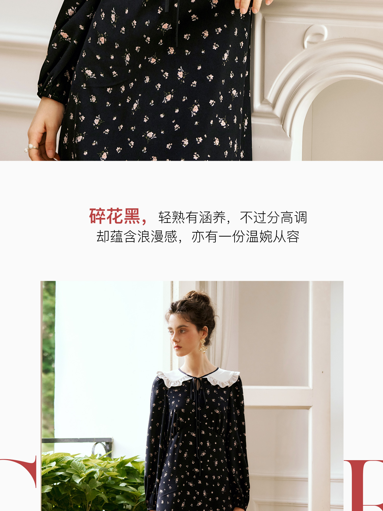 OLrain欧芮儿法式连衣裙女秋季2024年新款碎花雪纺娃娃领长袖裙子