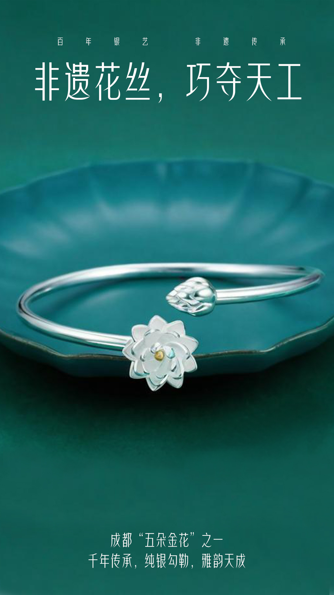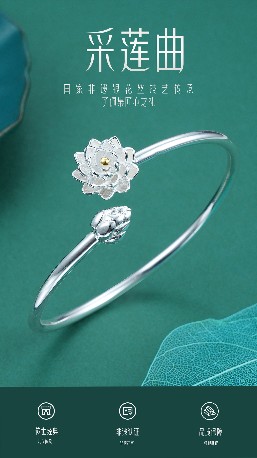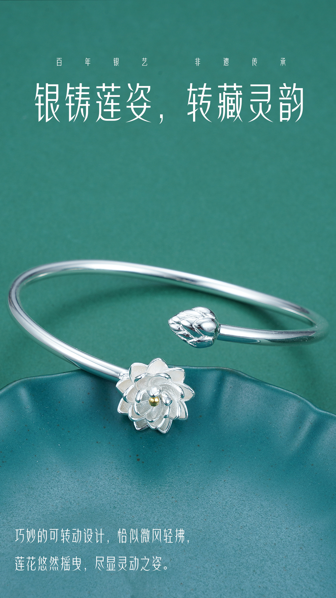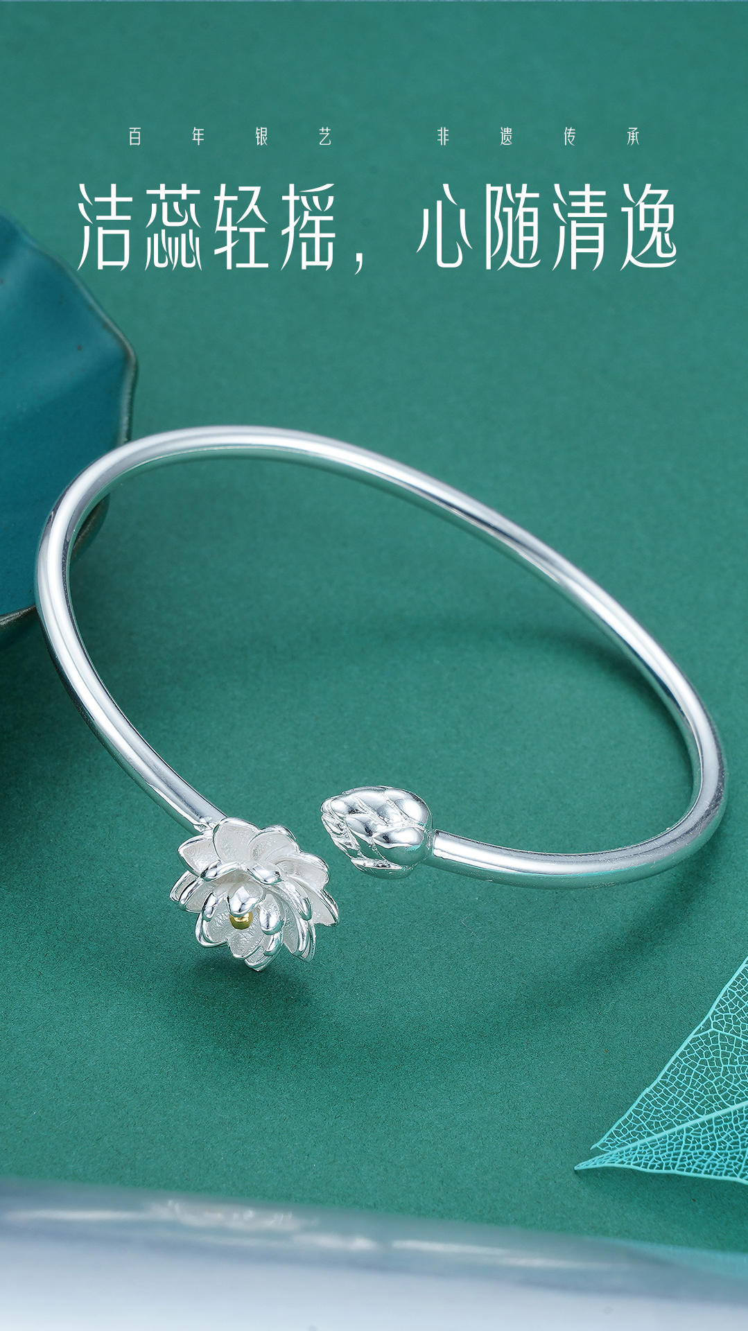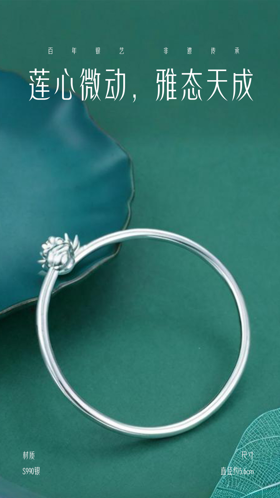 子佩集S990银【采莲曲】手镯【YHSZ027-3】2108