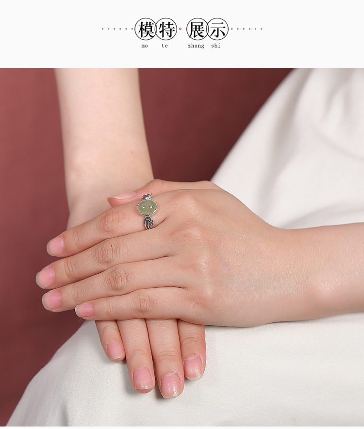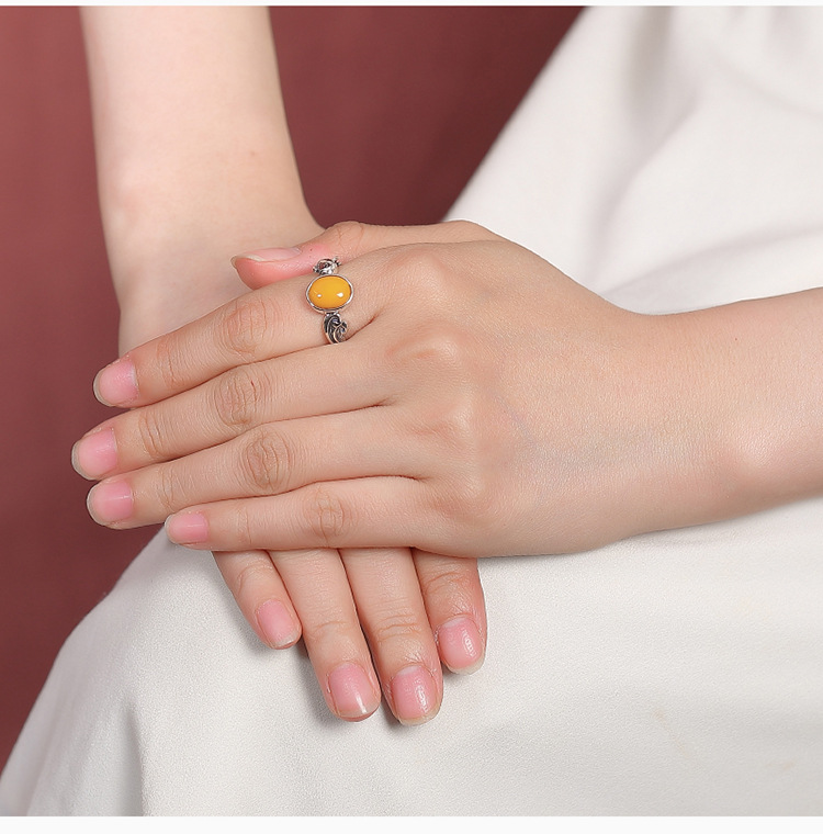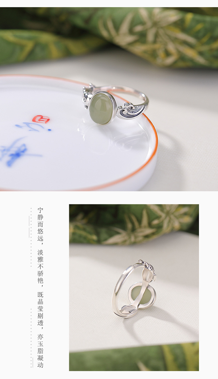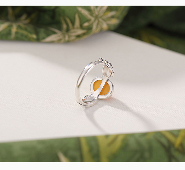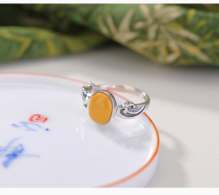 【云游锦鲤】S925纯银和田玉晴水玉蜜蜡锦鲤鲤鱼开口戒指【CW-JZ07574】