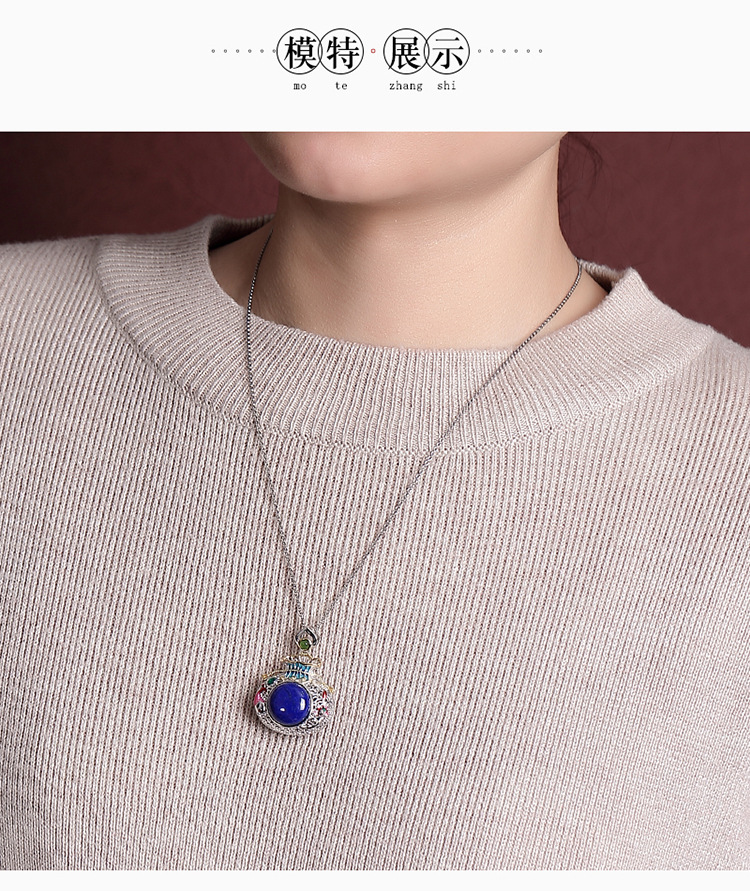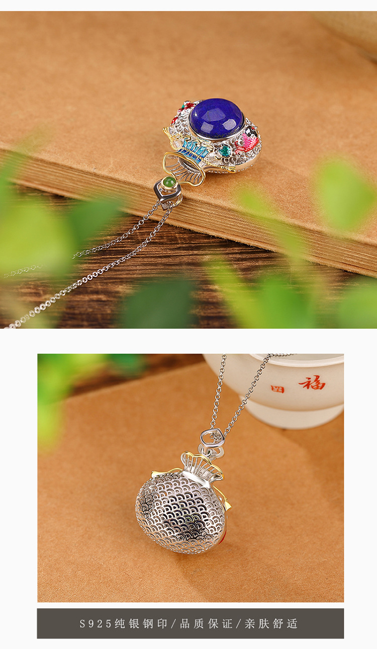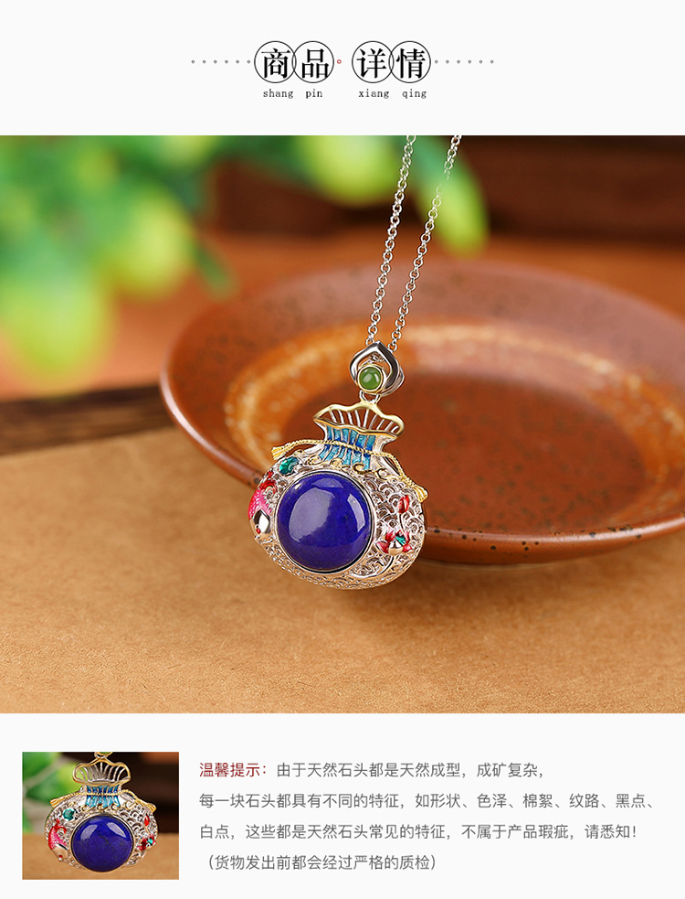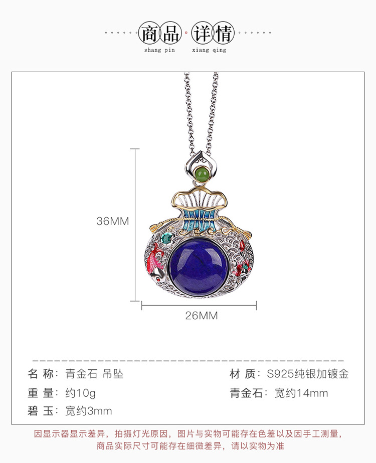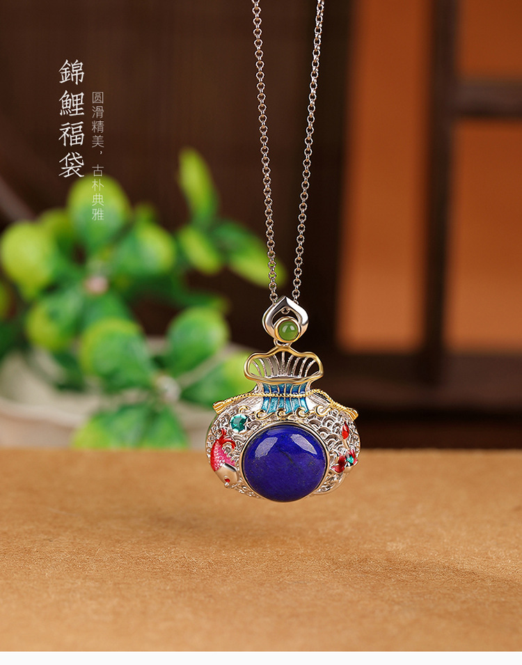 【莲花锦鲤】S925银镀金和田玉青金石珐琅福袋吊坠【CW-DZ06164】