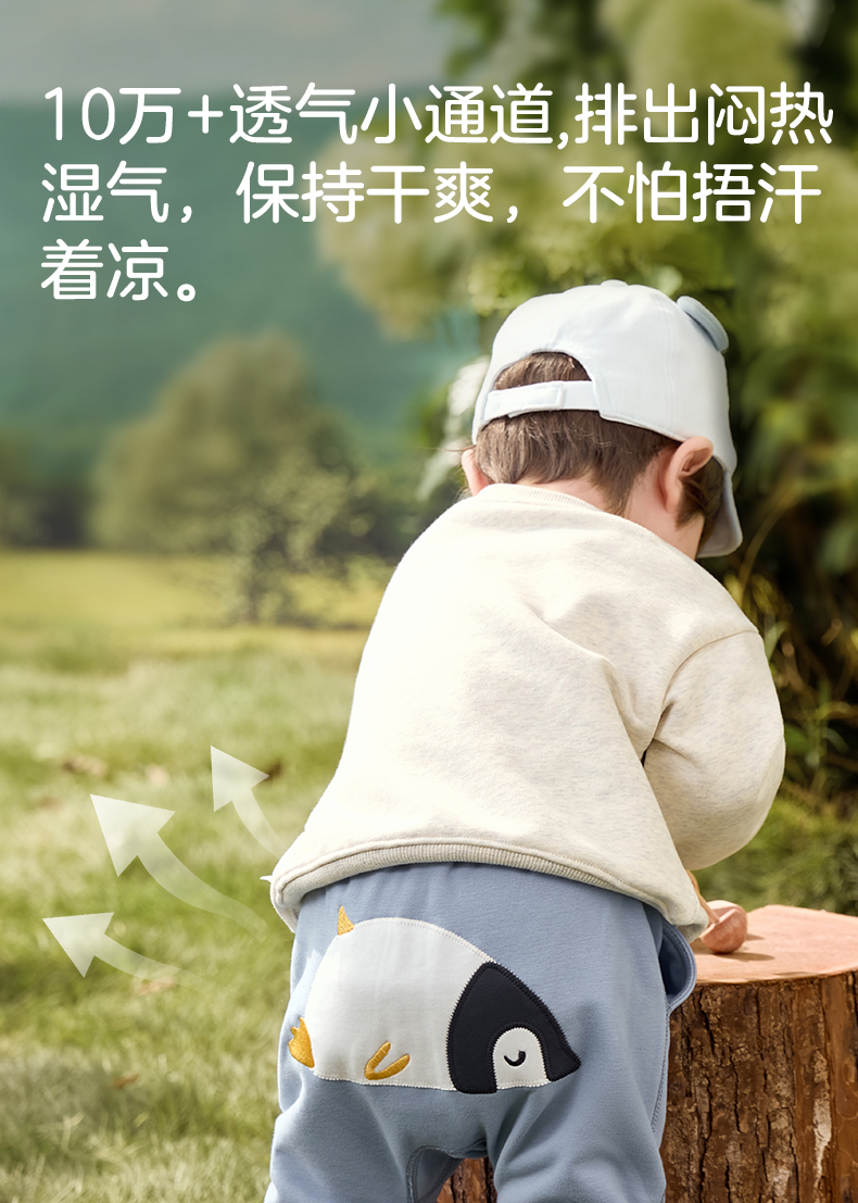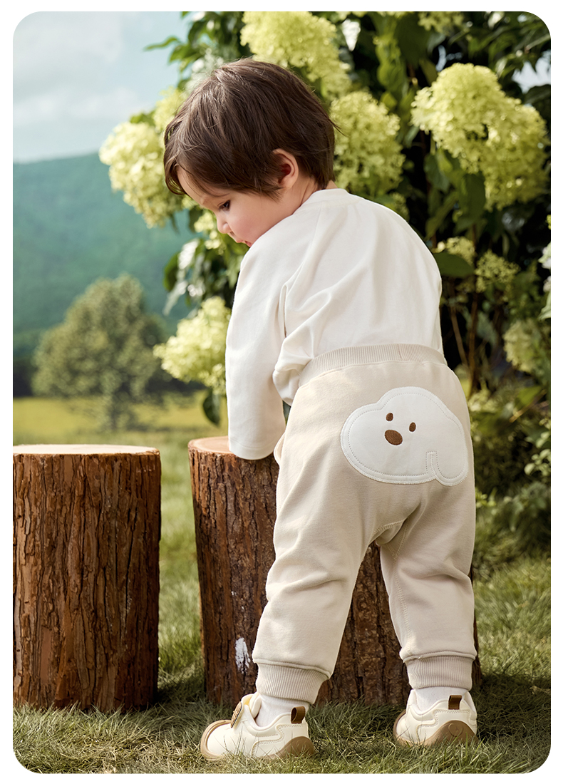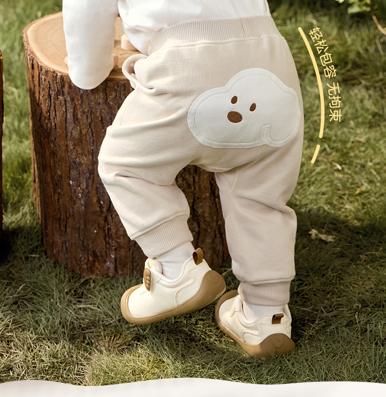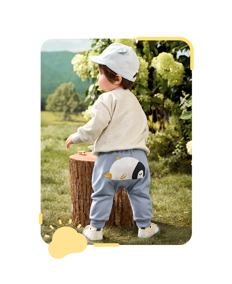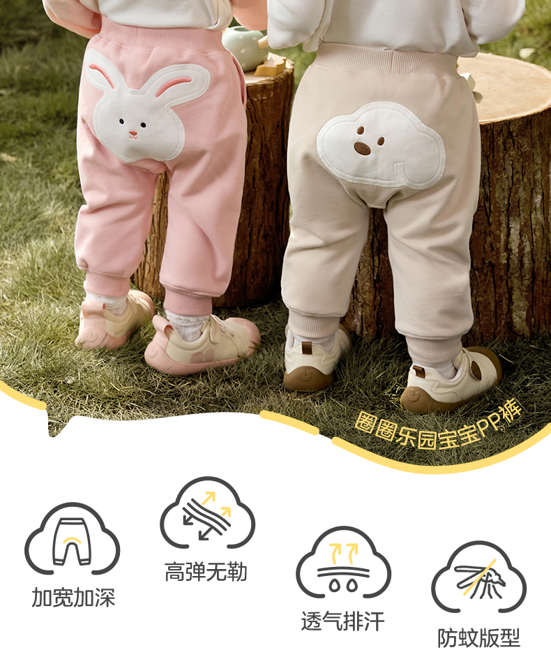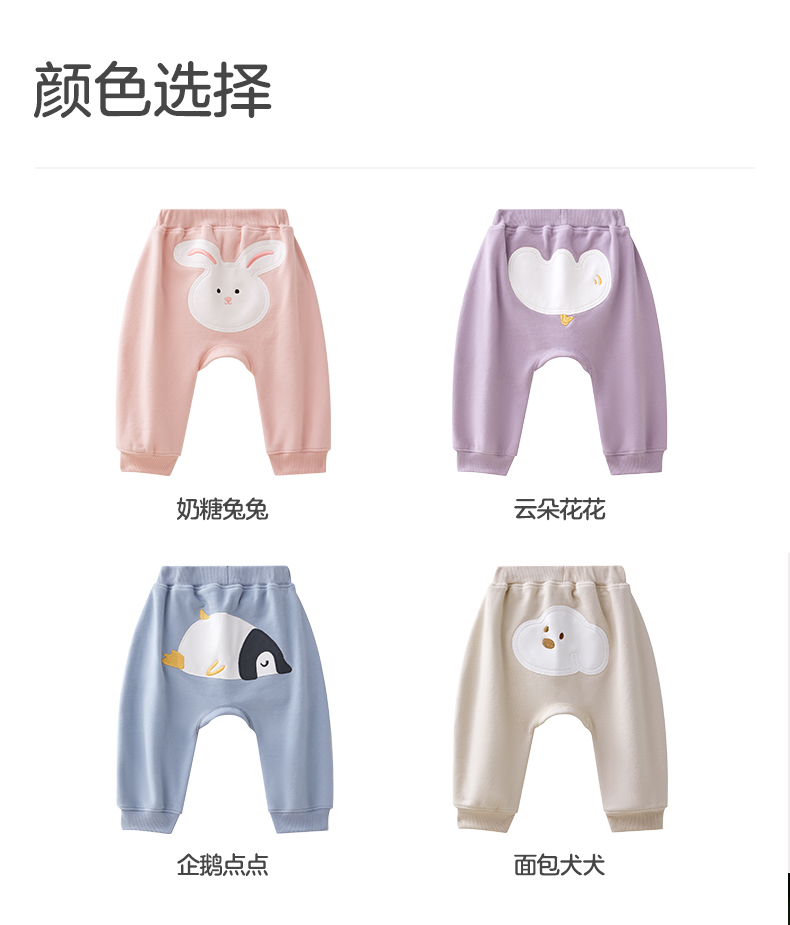 粒粒阳光秋季婴儿裤子男女宝萌趣屁屁裤亲肤透气防蚊长裤