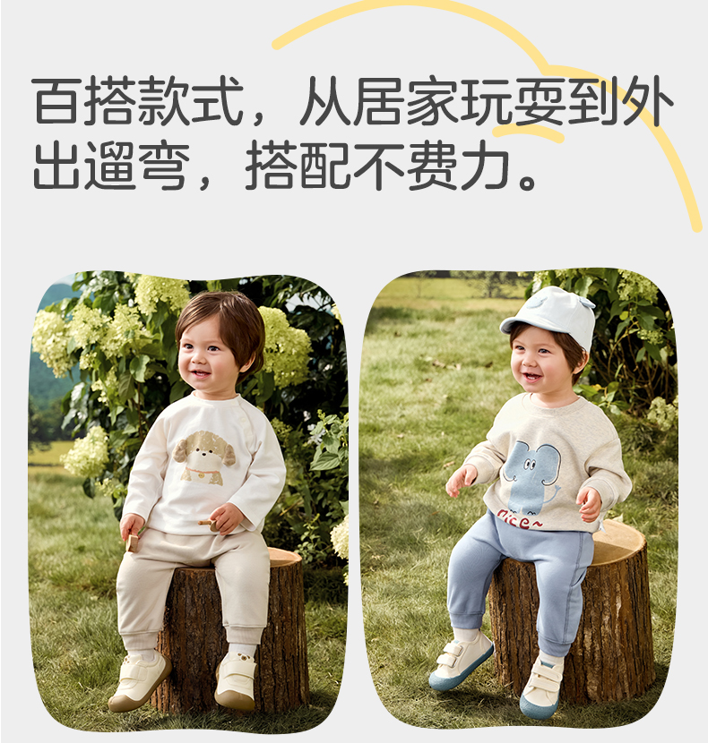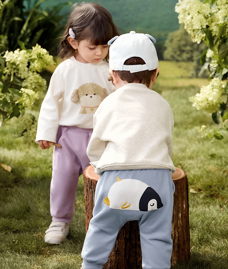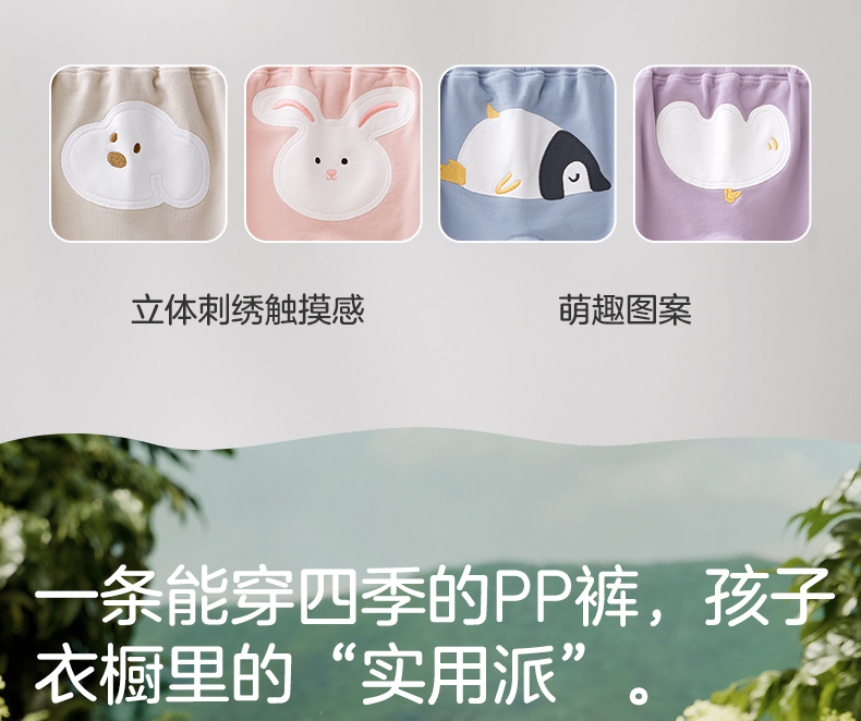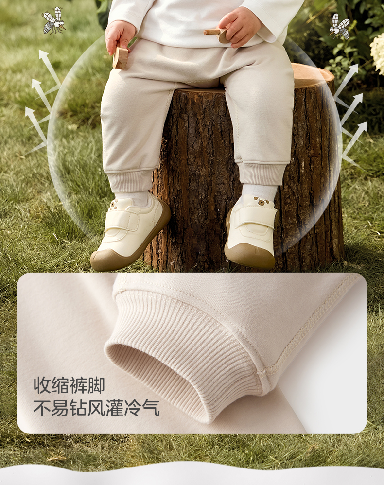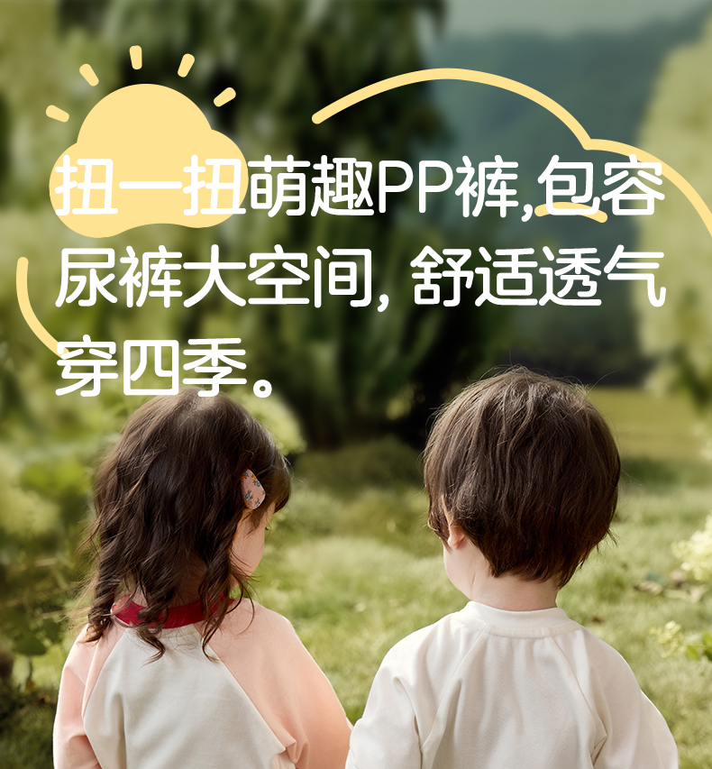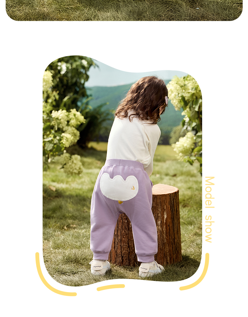粒粒阳光秋季婴儿裤子男女宝萌趣屁屁裤亲肤透气防蚊长裤