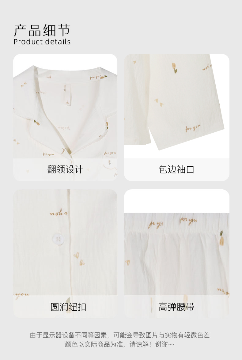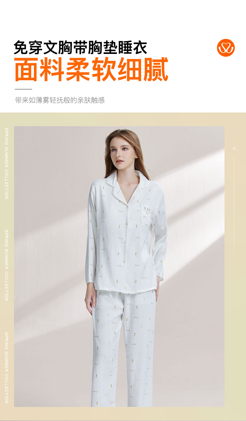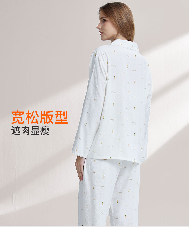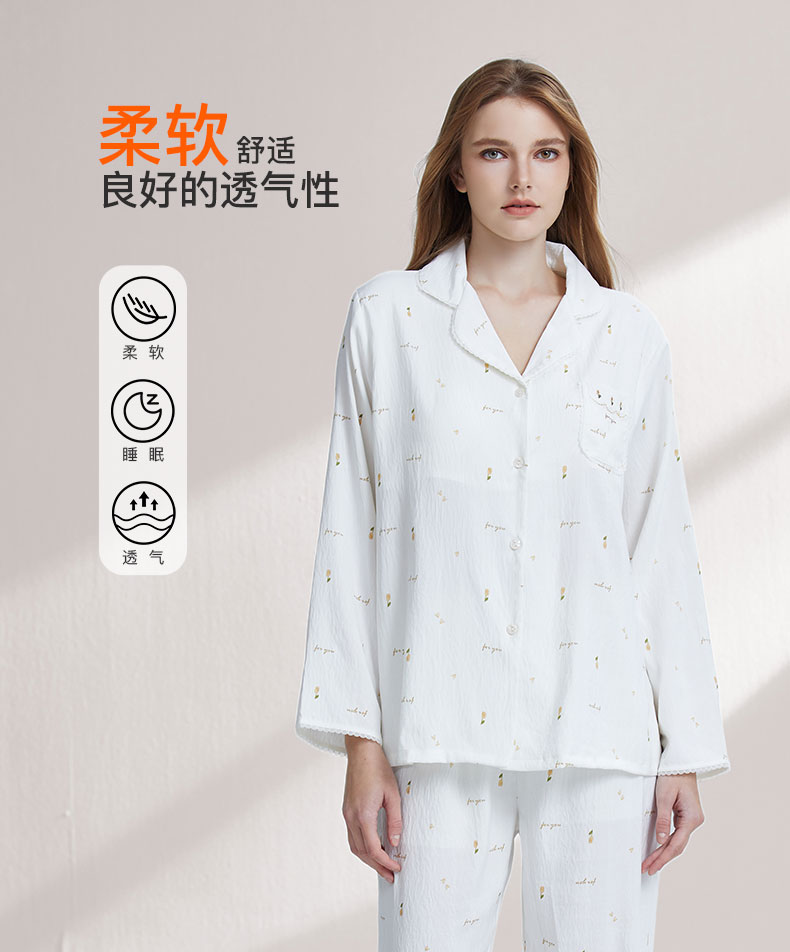 【99元超值新品】【秀黛】女翻领杯垫印花长袖套装印花柔雾细腻舒适女士春秋睡衣家居服W1551013T【门店同款】