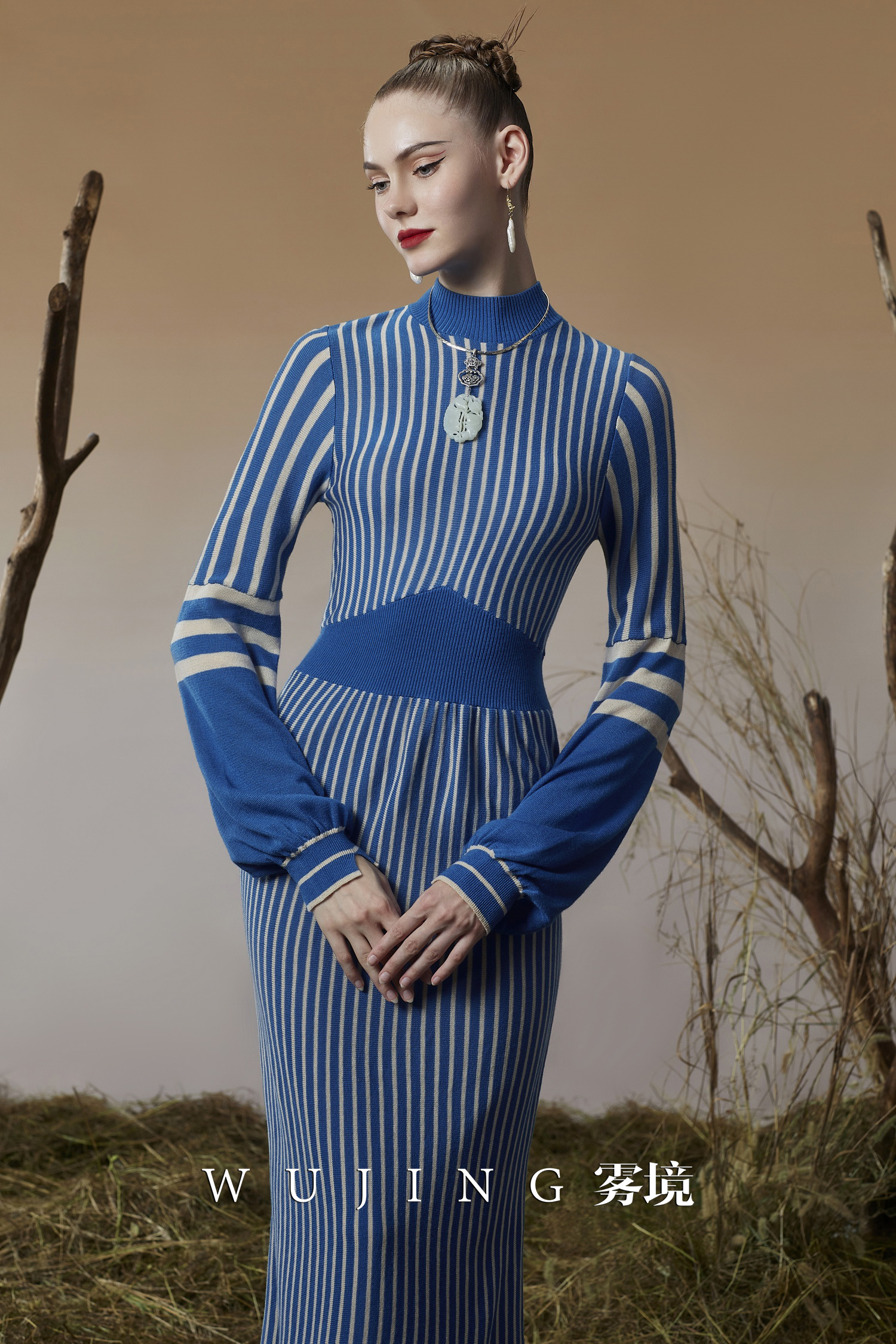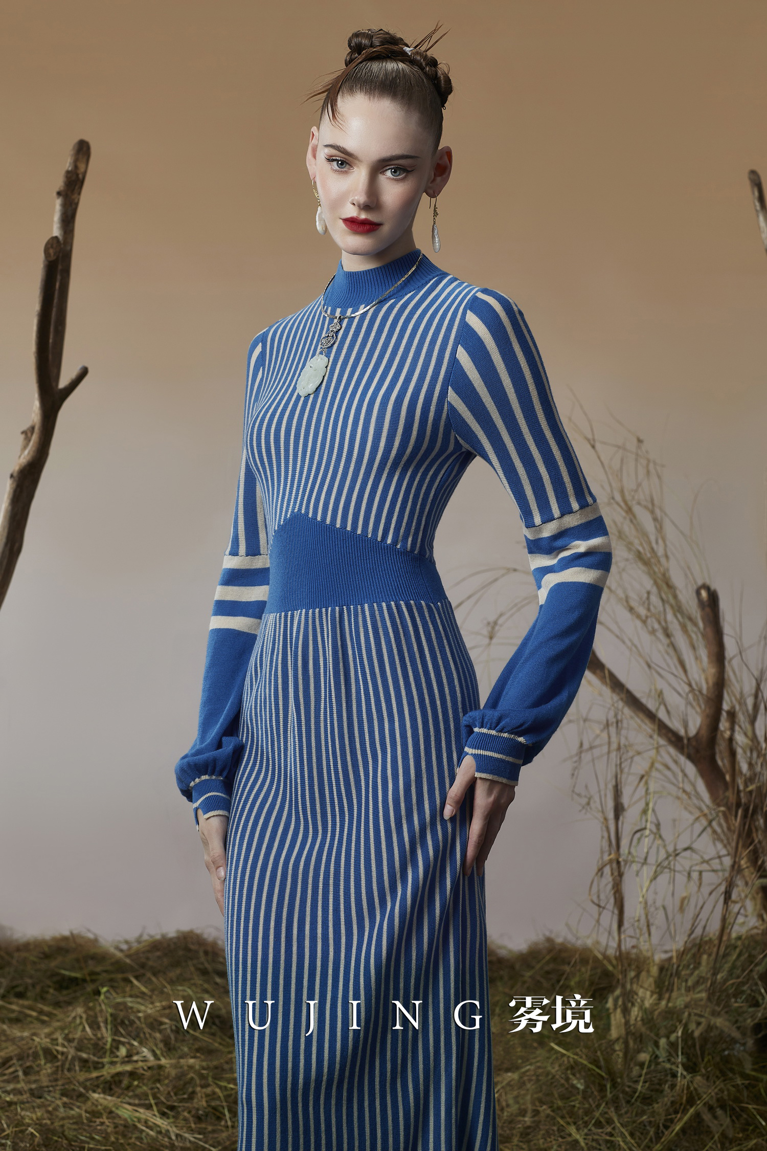 3203075 青蓝冰水 进口超细美丽诺羊毛针织连衣裙 雾境