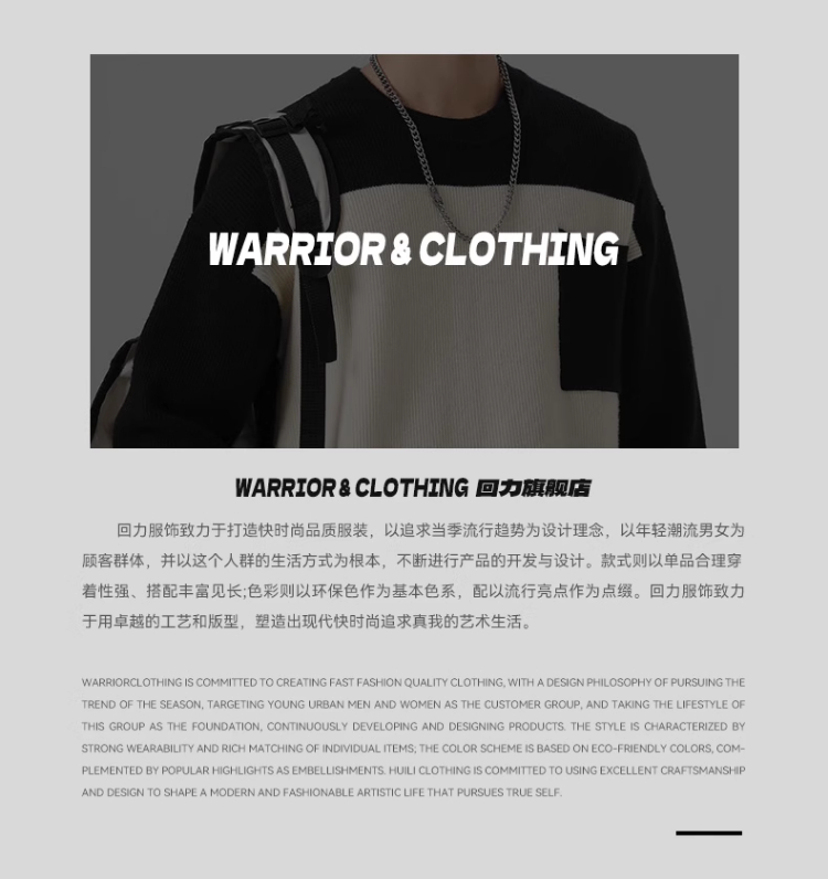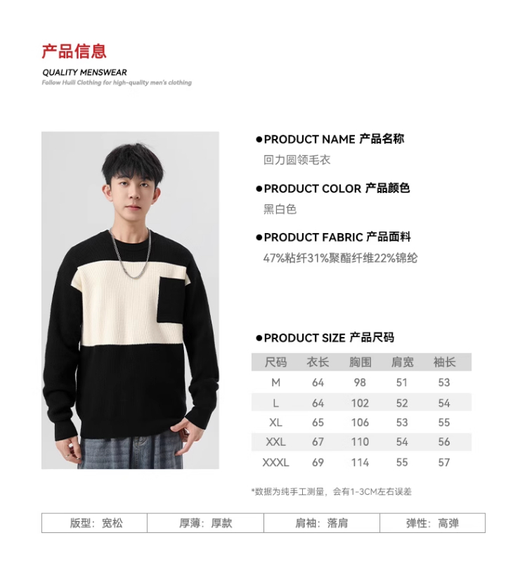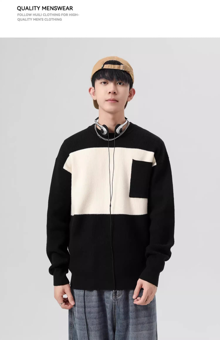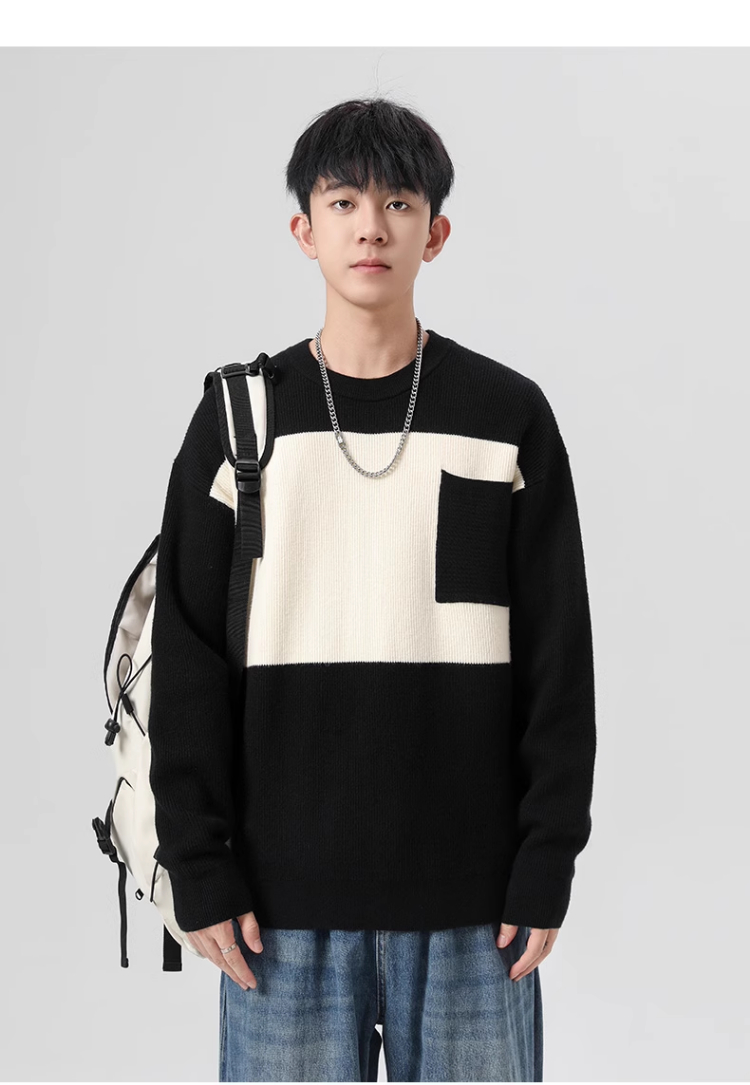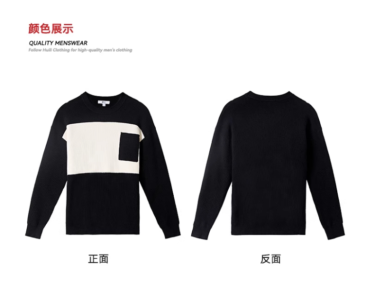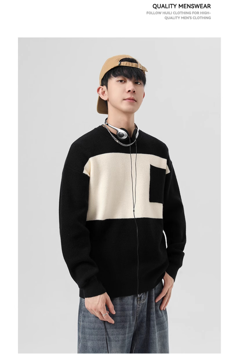回力毛衣男2025秋冬新款潮流黑白撞色宽松套头保暖上衣内搭针织衫