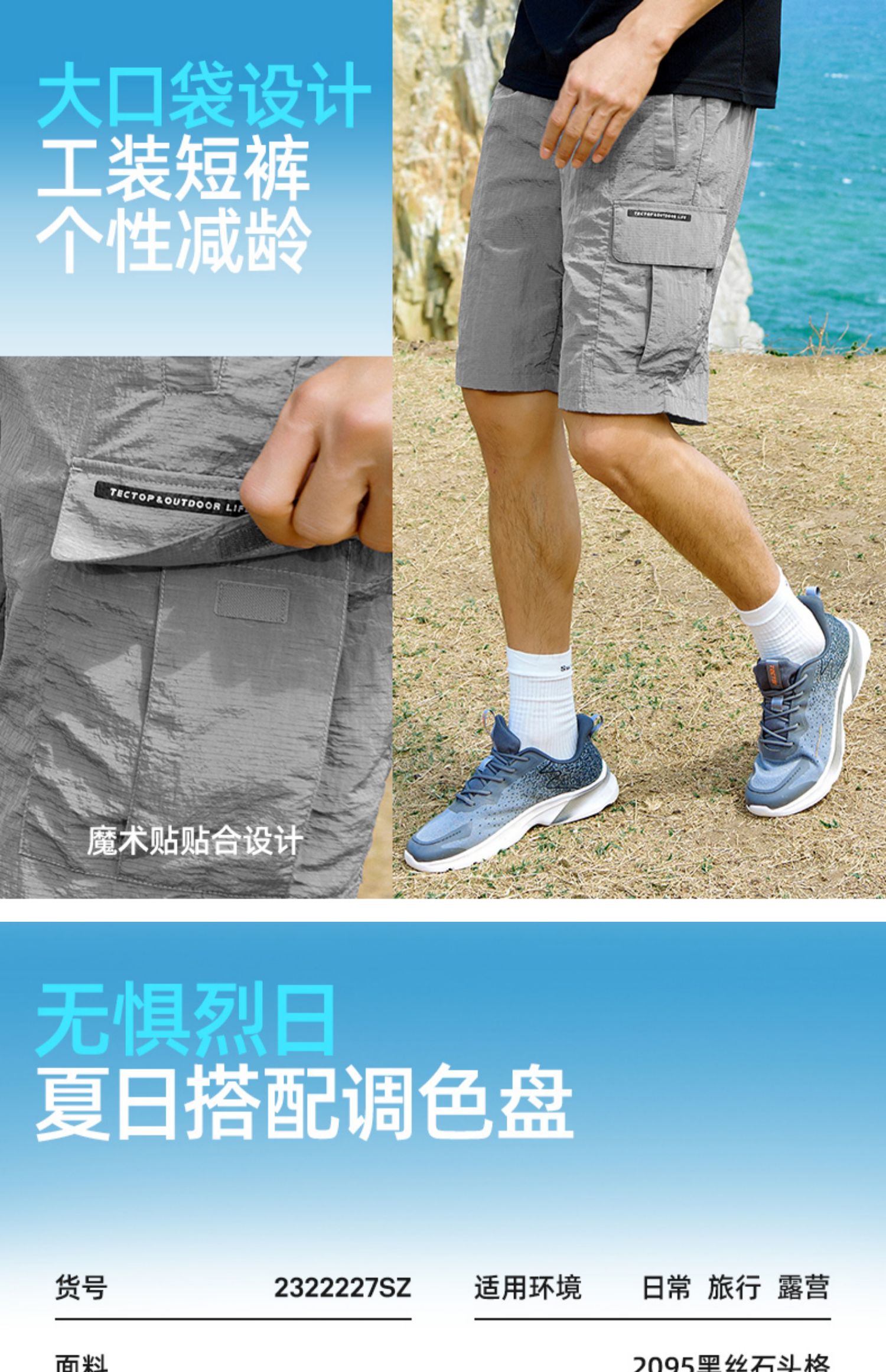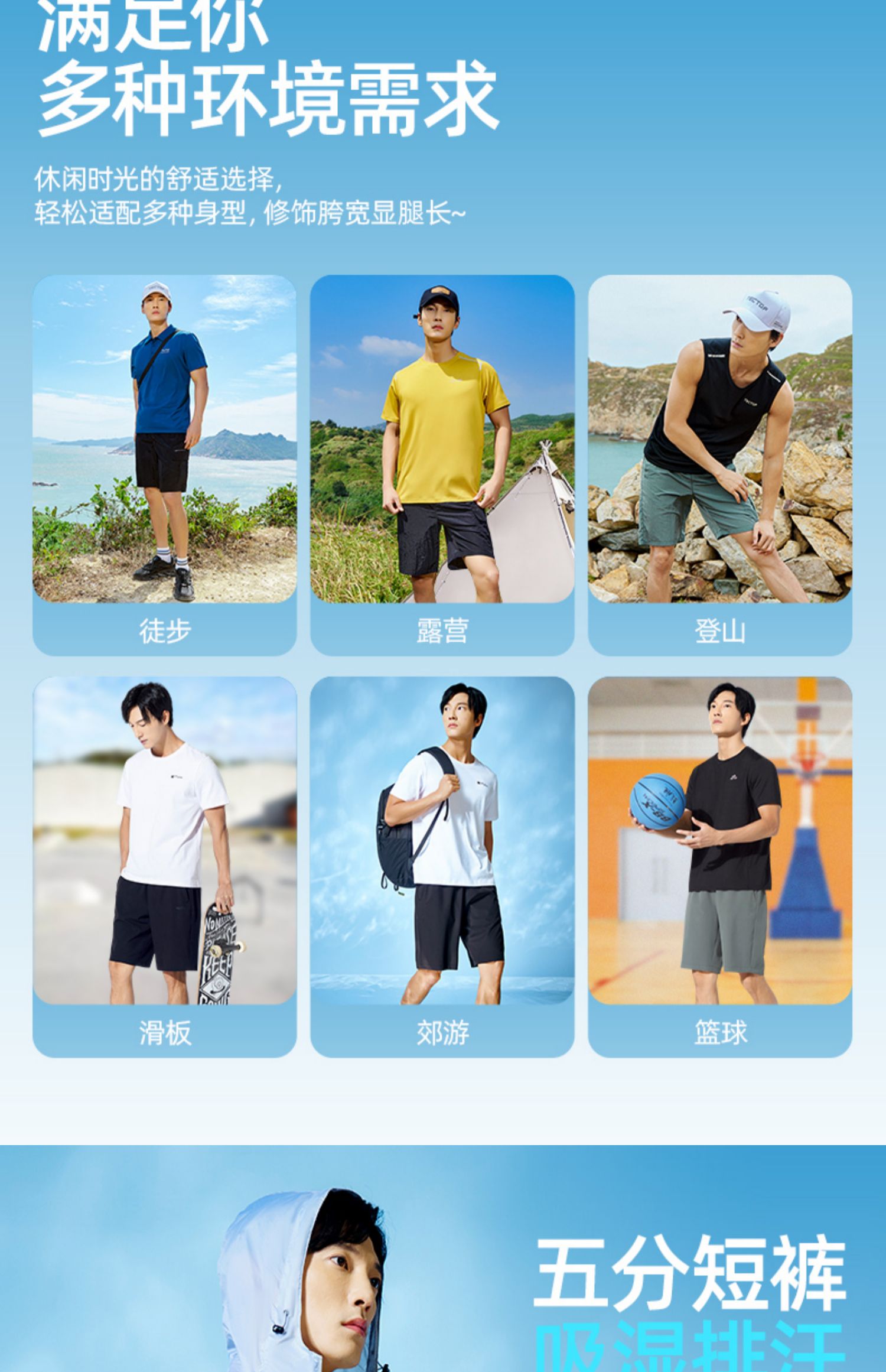 探拓户外运动短裤男速干春夏新款轻薄透气弹力休闲宽松跑步五分裤