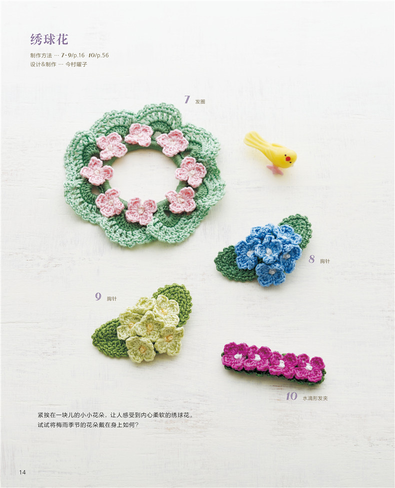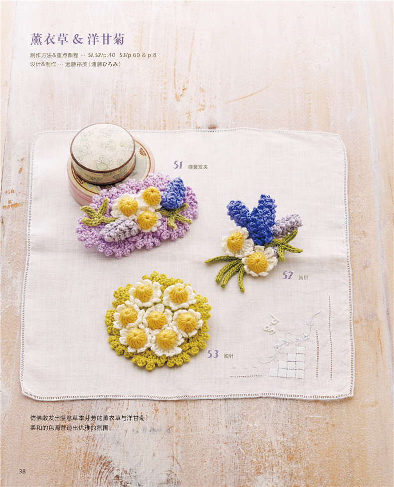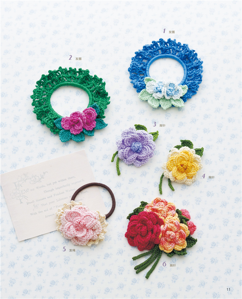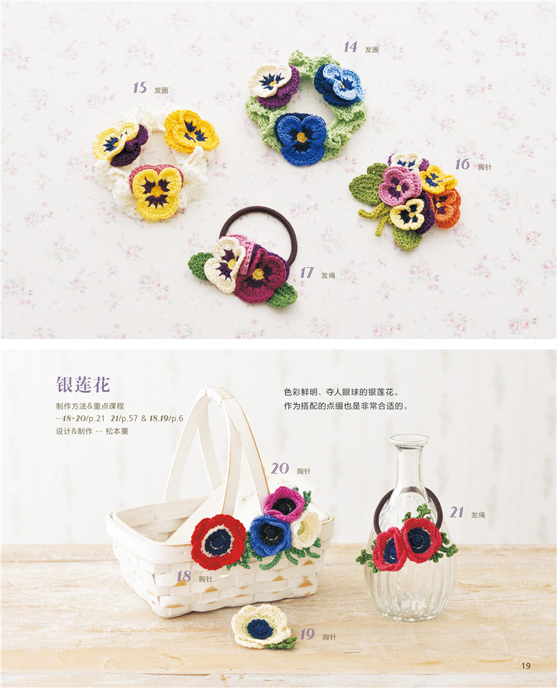 受到女性欢迎的使用钩针编织的胸章&发饰作品集。