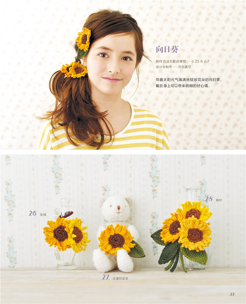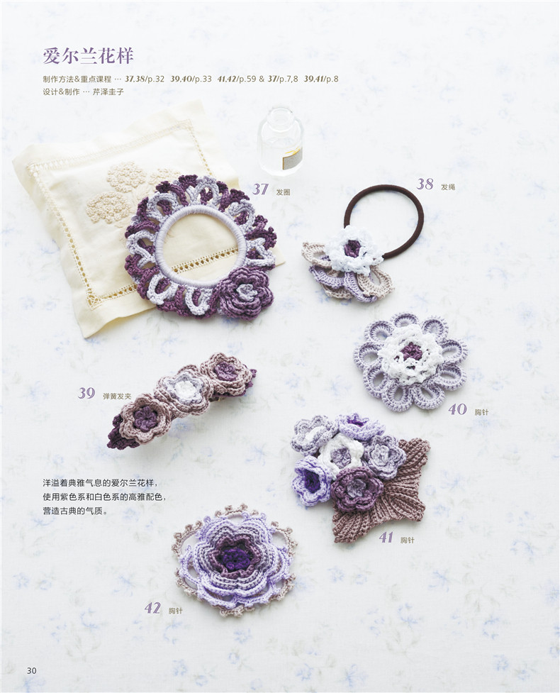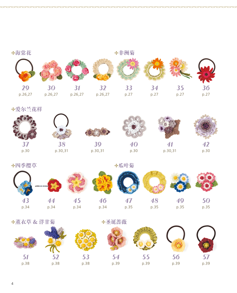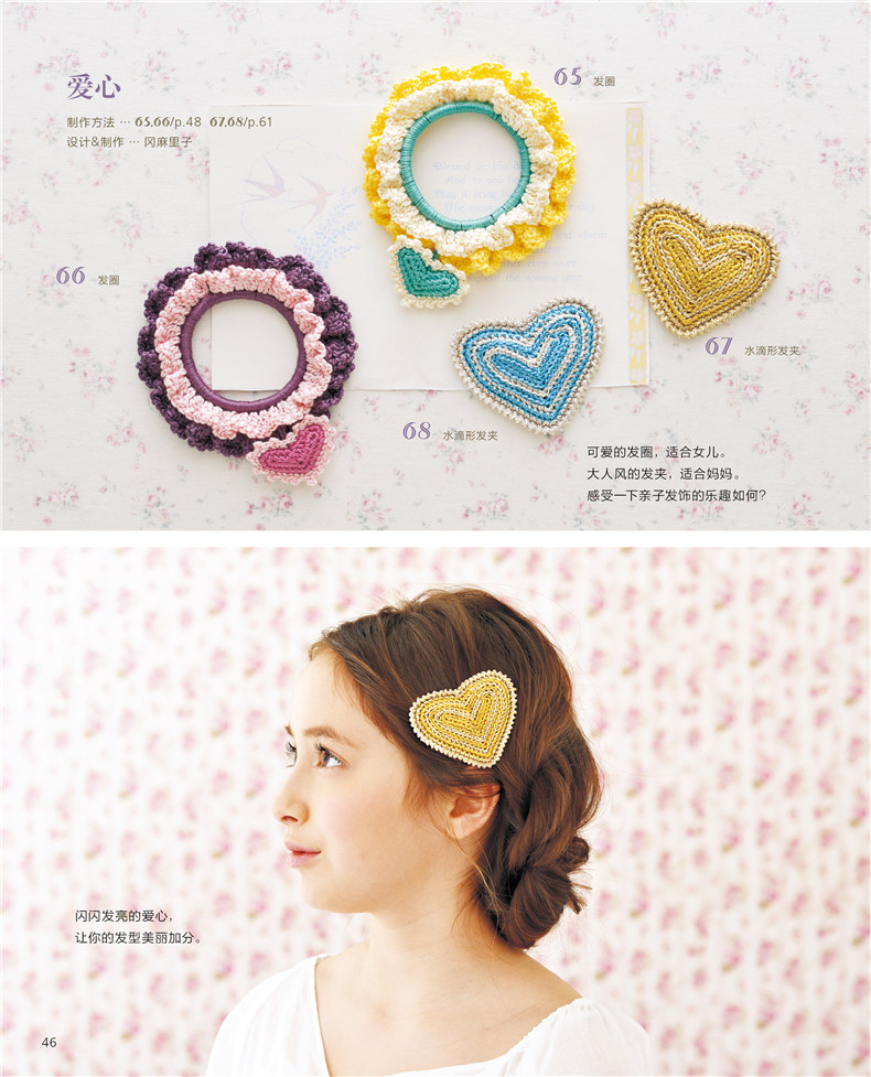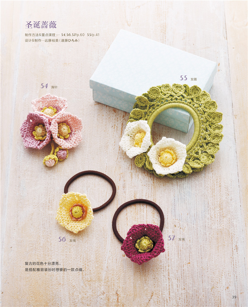 受到女性欢迎的使用钩针编织的胸章&发饰作品集。