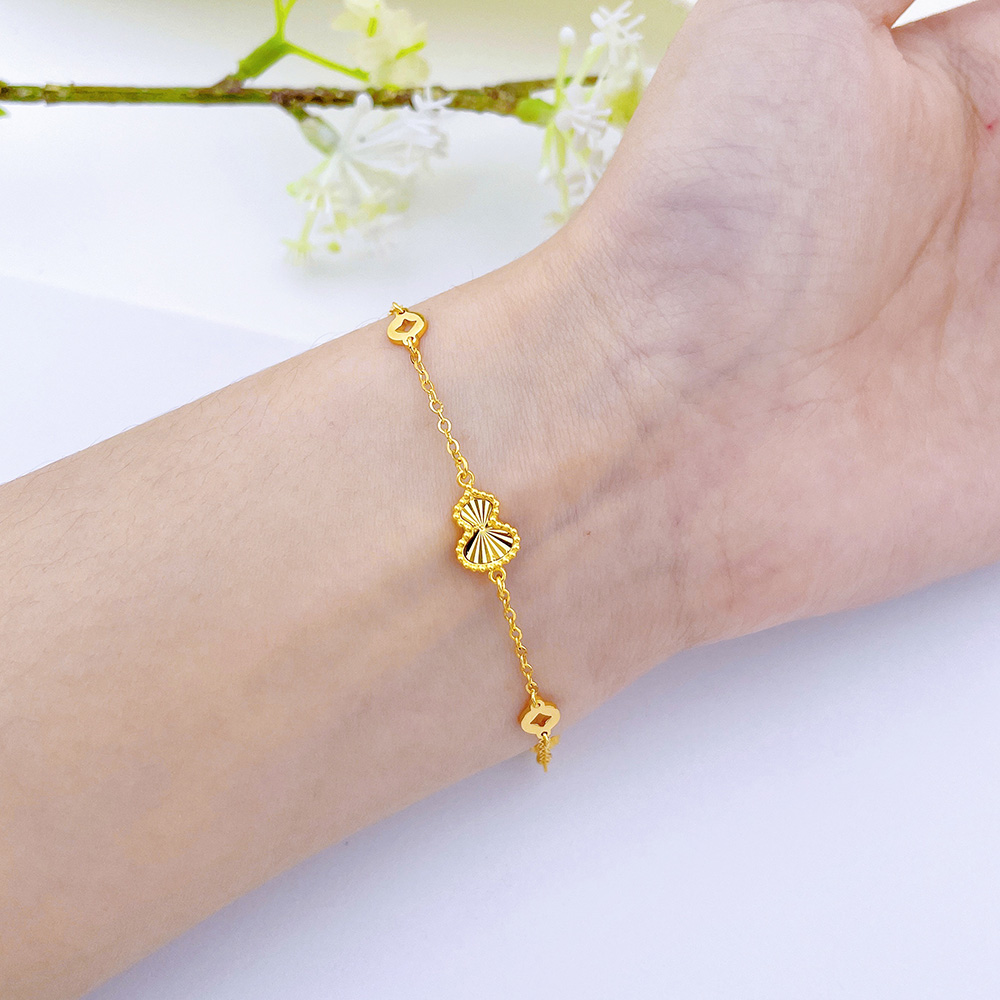 【限时克减150元】足金999 【精品】车花辘珠边3葫芦调节手链(AUSL00022)(预售产品下单后不退款不退货不换货不补差价)