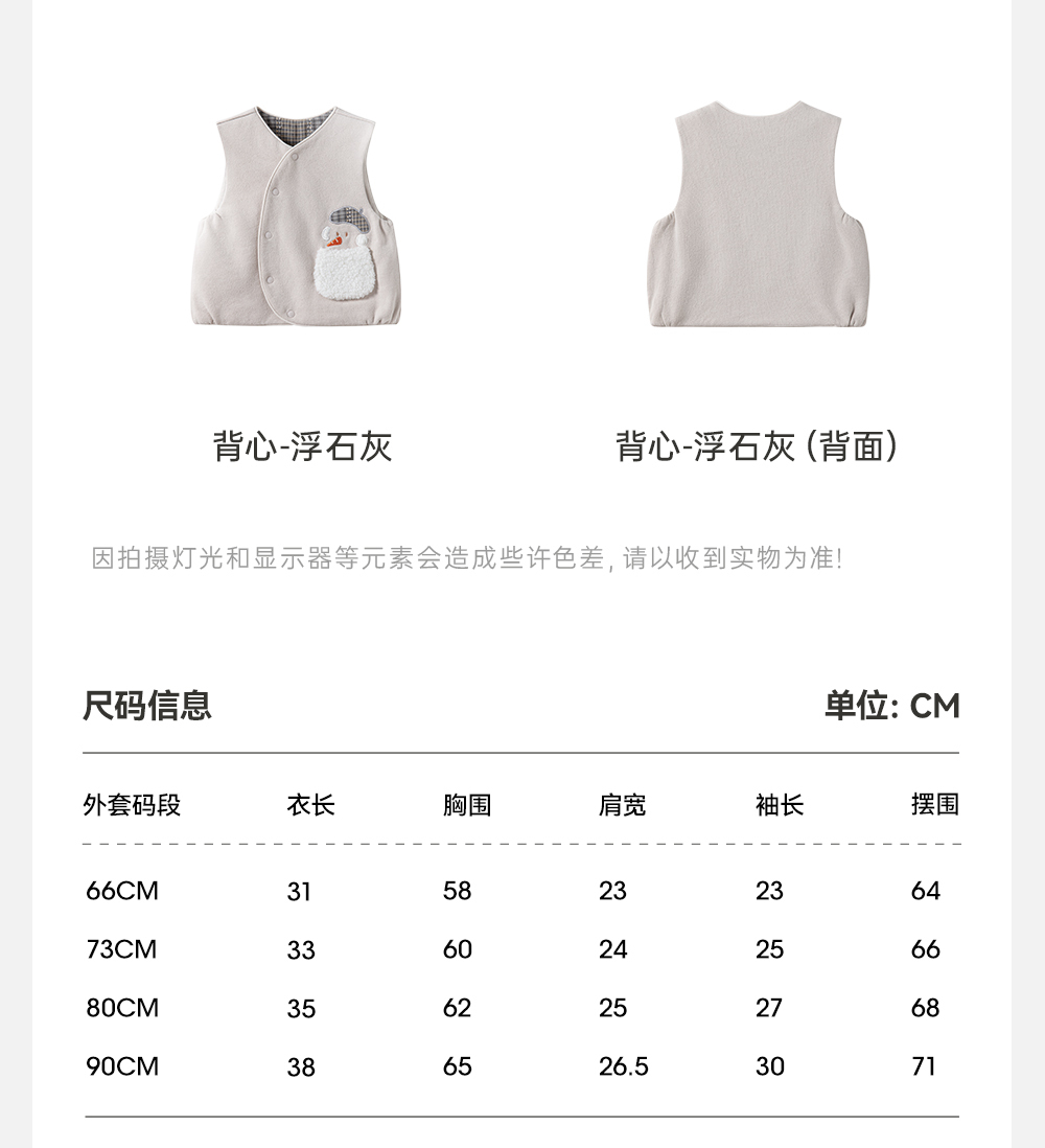 英氏儿童家居服上衣马甲秋冬季保暖羊绒新款宝宝衣服YZJGJ1Q001A