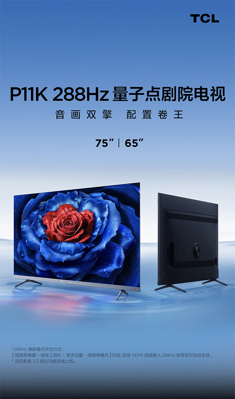 TCL_P11K75英寸_288Hz量子点剧院电视_一级能效_量子点高色域_安桥2.12Hi-Fi音响_464GB_超薄一体化_75英寸
