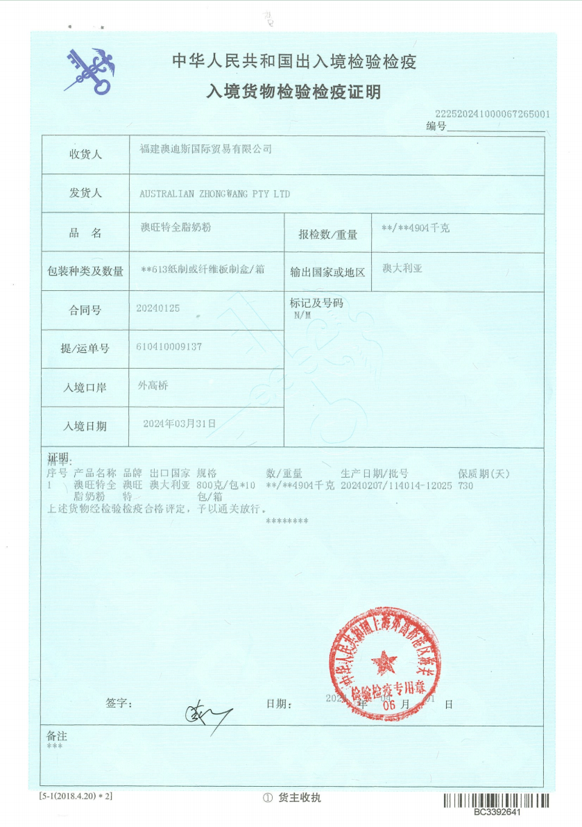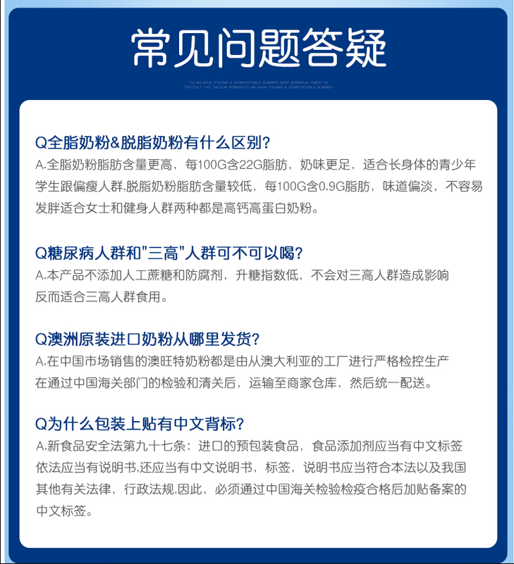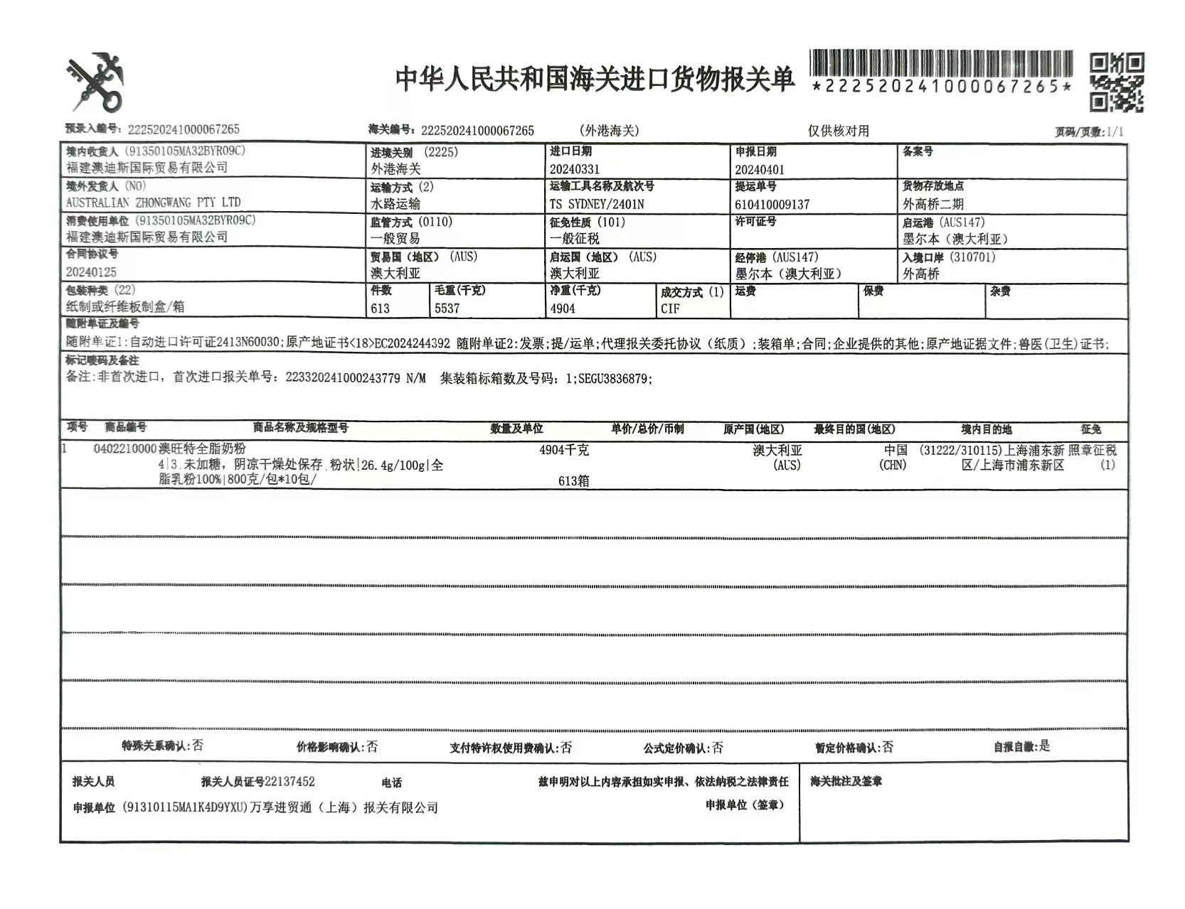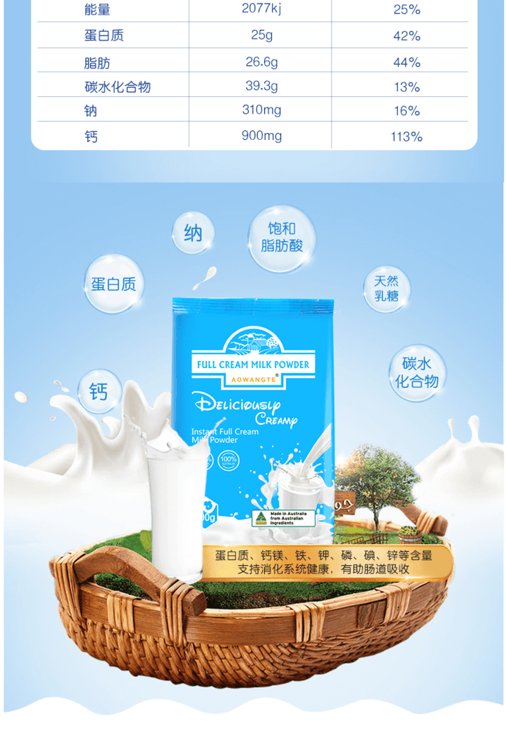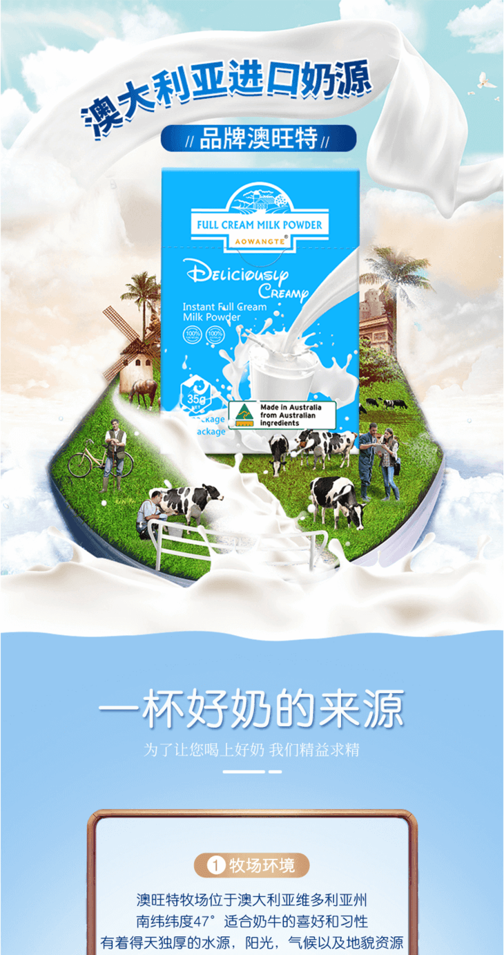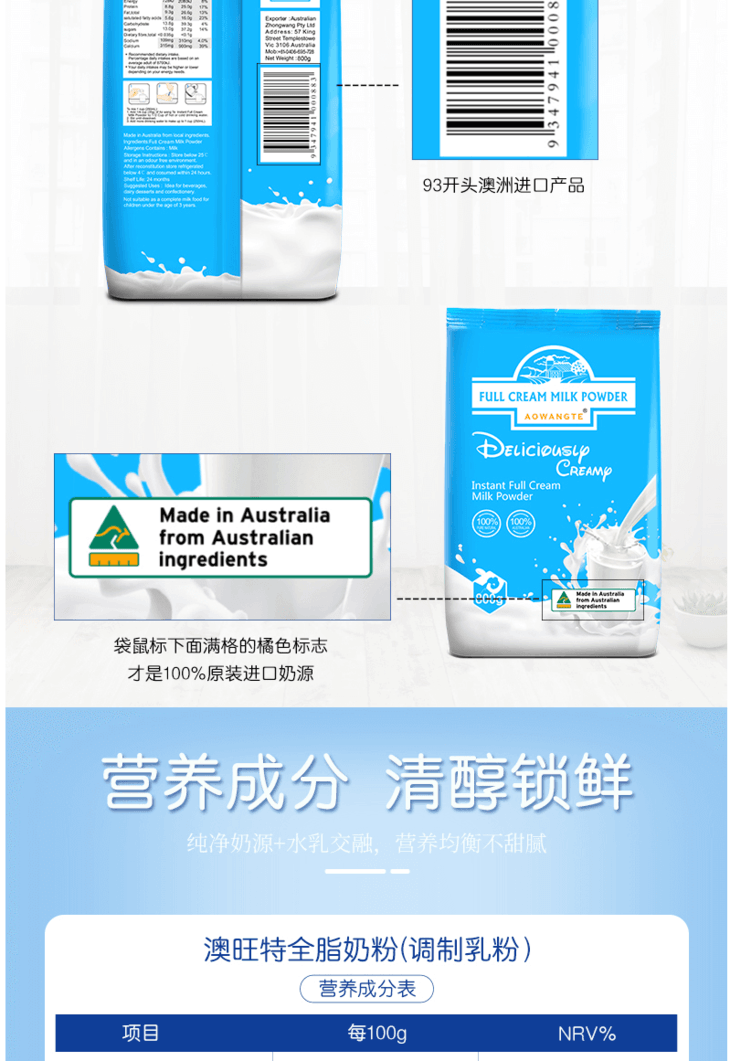 【中欧班列精选】澳洲奶粉 原装进口澳旺特袋装全脂奶粉800g /袋 新日期