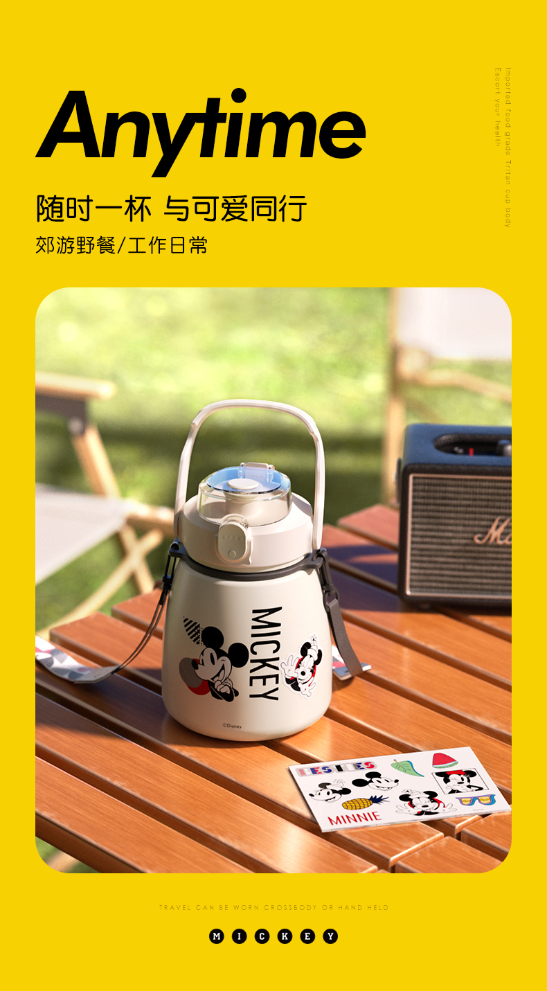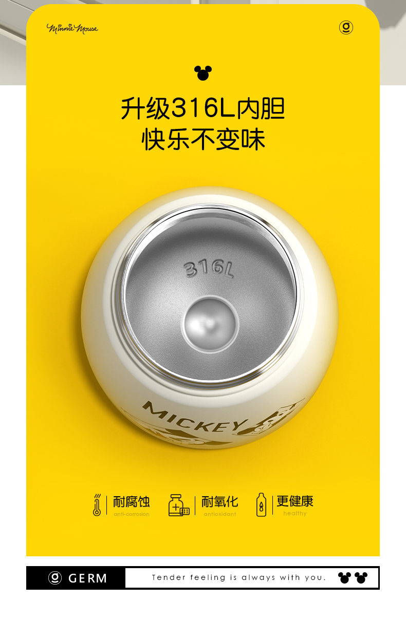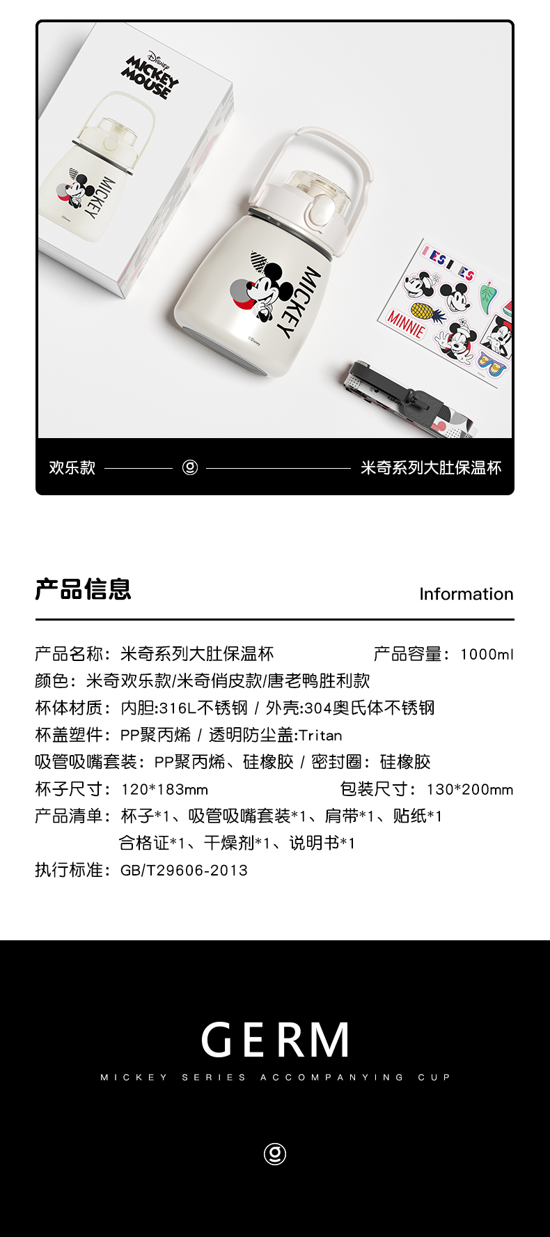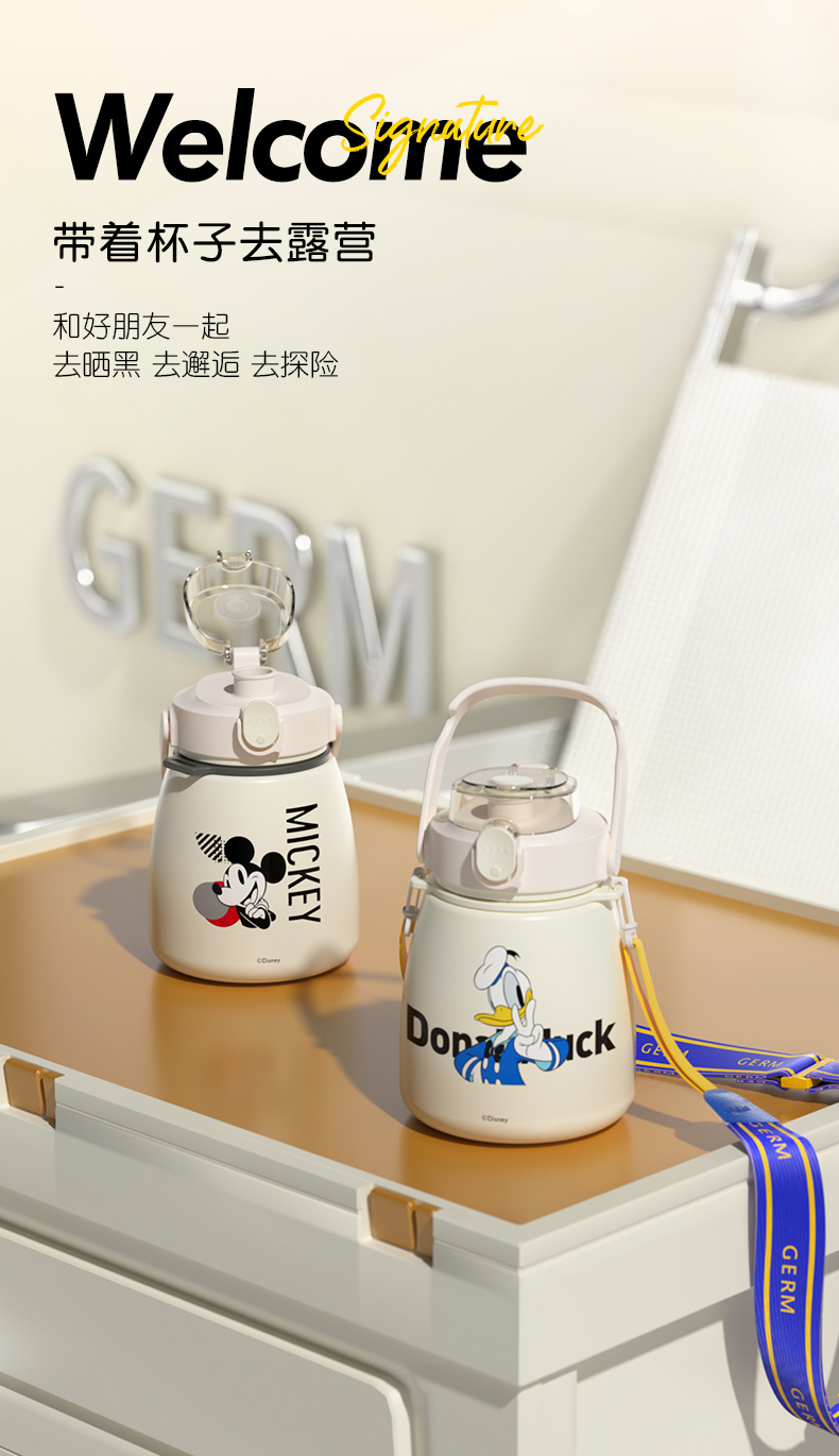 GERM格沵迪士尼米奇唐老鸭大肚杯 1000ml超大容量 背带手提保温杯