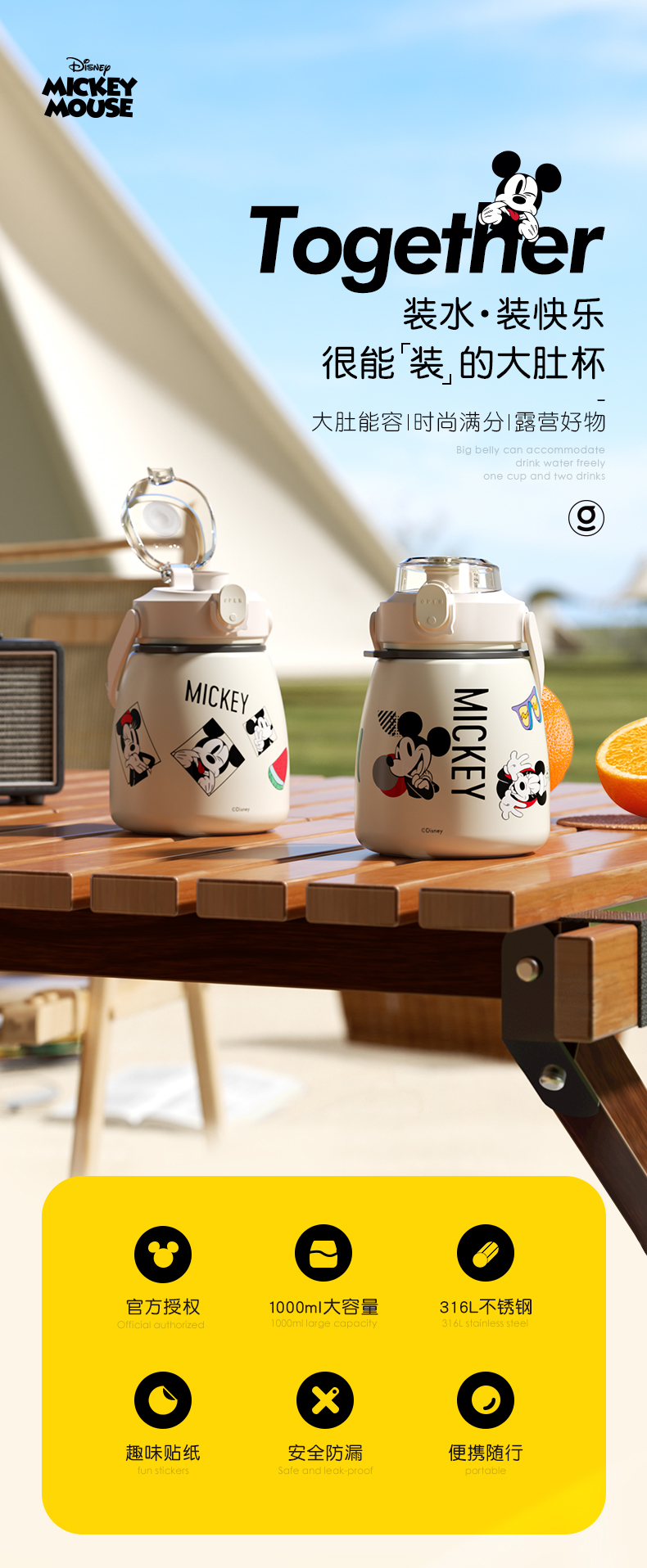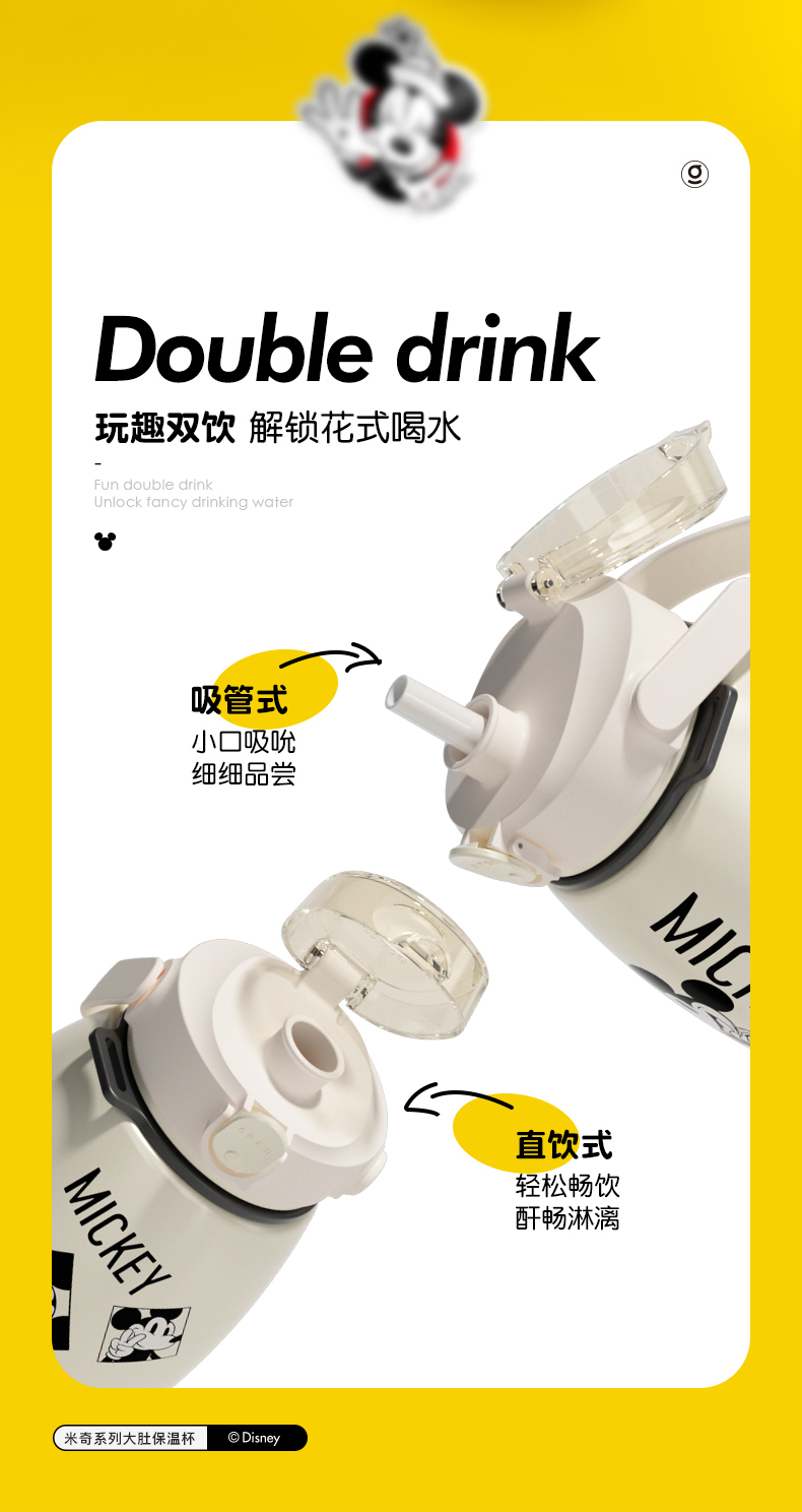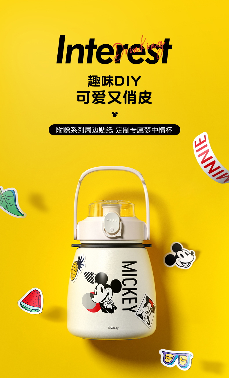 GERM格沵迪士尼米奇唐老鸭大肚杯 1000ml超大容量 背带手提保温杯