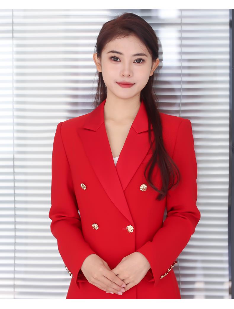 IWY/正红色年会礼服女高级感上镜艺考主持人正装气质醋酸领商务工作服Q1002-R
