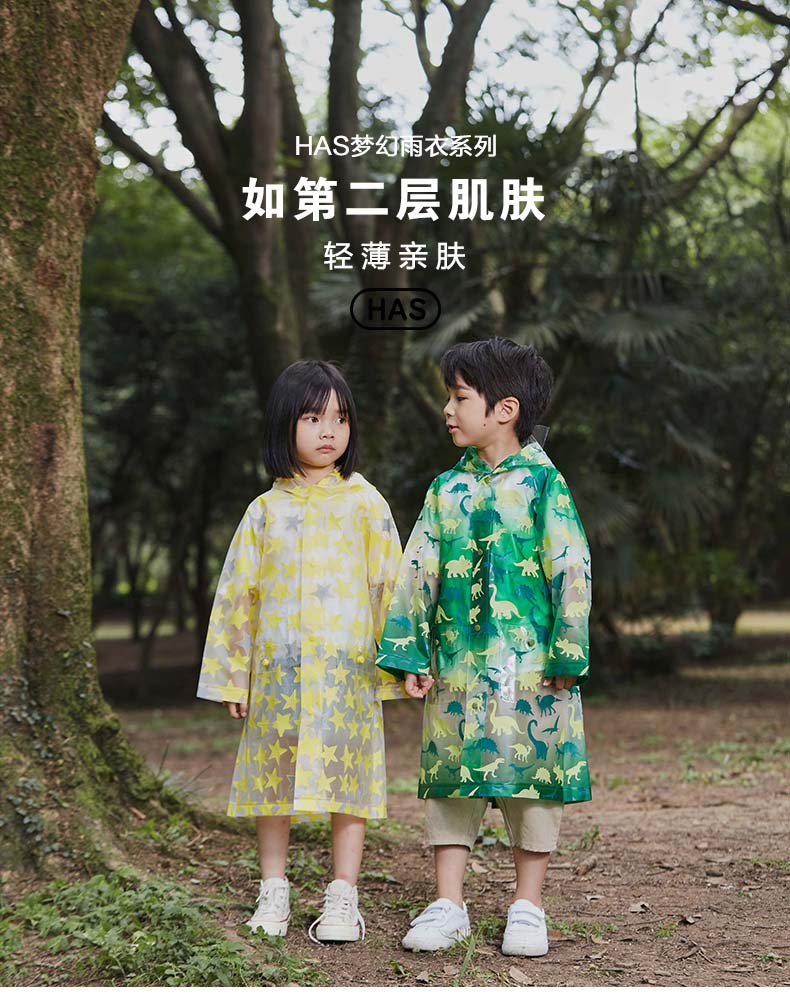 韩国HAS儿童雨衣幼儿园宝宝男女童小孩全身轻薄小学生雨披斗篷式