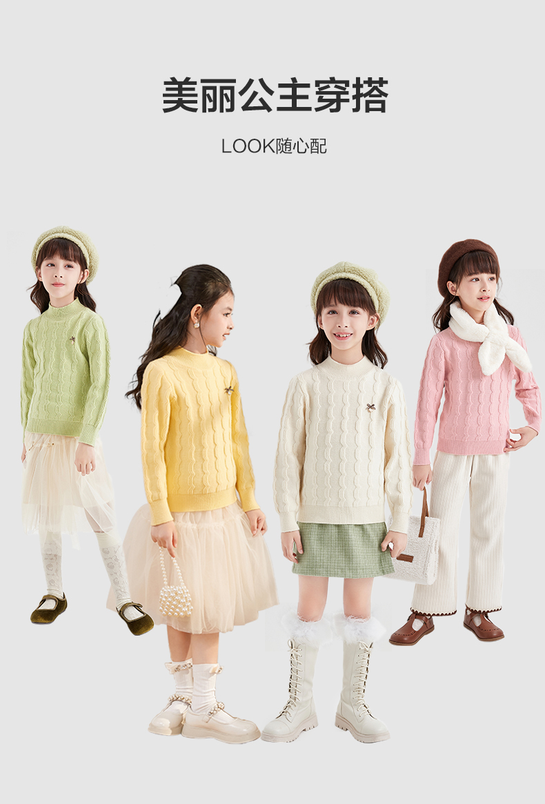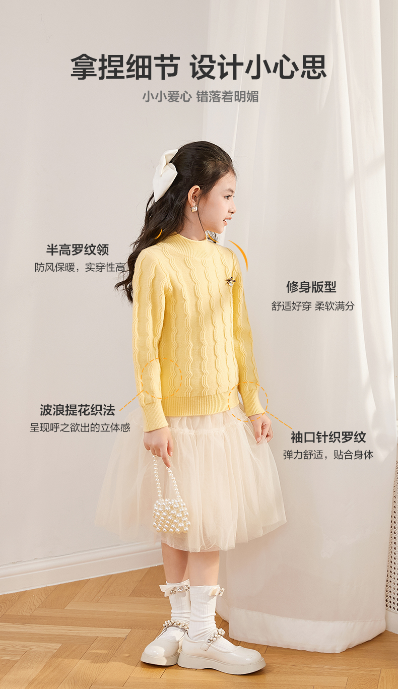 笛莎Deesha 童装女童毛衣2023冬季新款中大童时尚针织毛衣