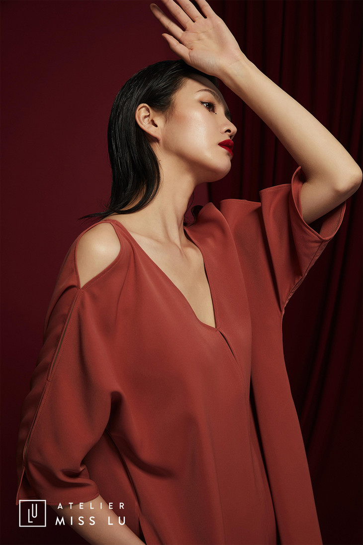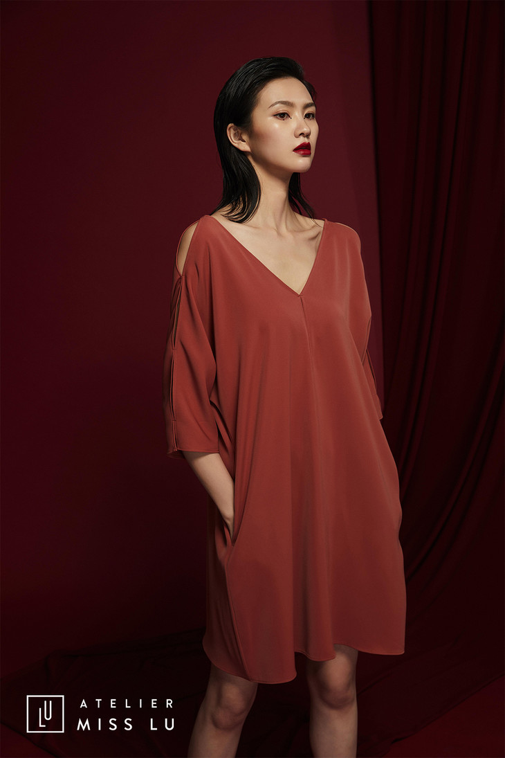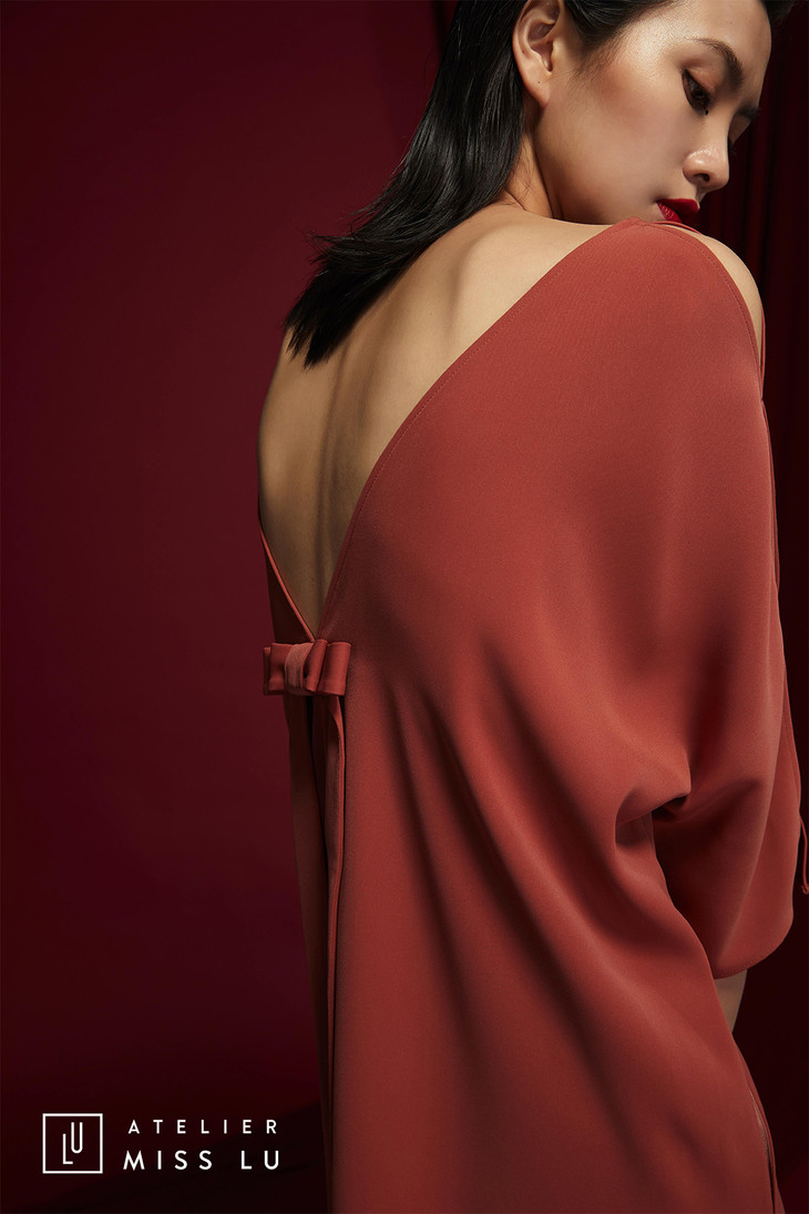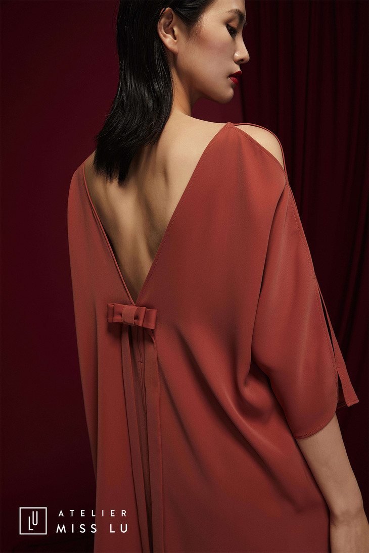 AtelierMissLu /Munoz-肉桂橘V领露背连身裙/0000576