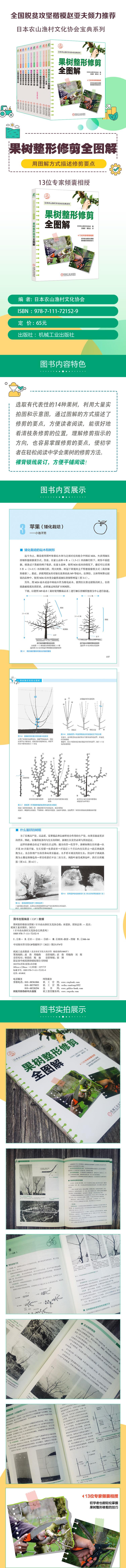 自己培育的果树,枝条旺盛生长、花朵娇艳开放、结出的果实新鲜好吃,这种兴奋程度是无法形容的。修剪是果树栽培过程中很重要的管理工作,有时不管怎么用心,果树结果总是没有达到自己理想的程度。本书选取有代表性的14种果树,利用大量实拍图和示意图,通过图解的方式描述修剪的要点,旨在帮助读者解决修剪时遇到的问题,使其能准确找到枝条修剪的位置,理解修剪指示的方向,也容易掌握修剪的要点,即使是初学者也能在轻松阅读中学会果树的修剪方法。本书可供广大果农及果树技术人员使用,也可供农林院校相关专业的师生学习和参考。