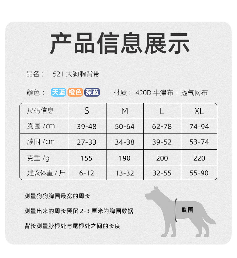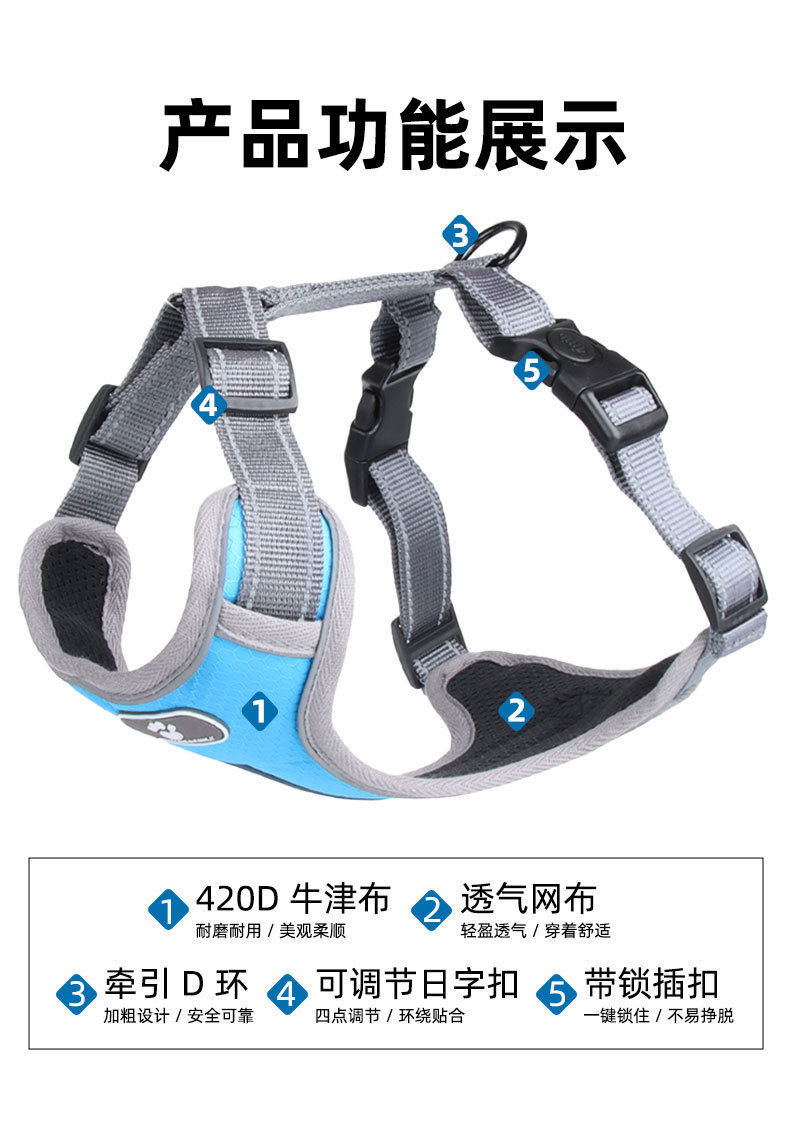 狗狗背心式胸背中大小型犬 防挣脱 夜用反光 结实舒适透气便携 不含绳子