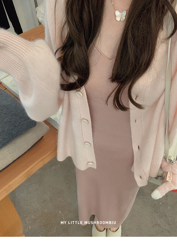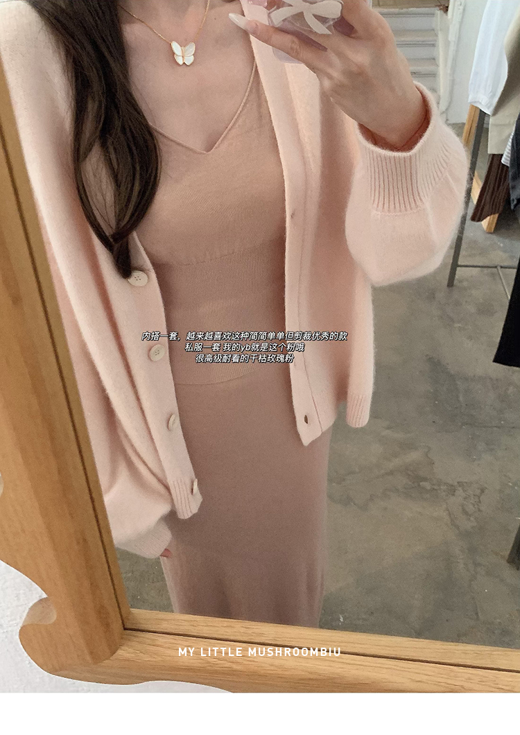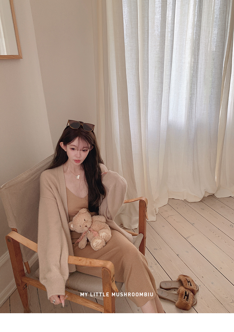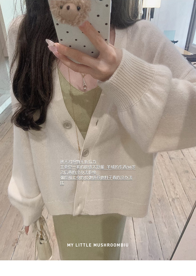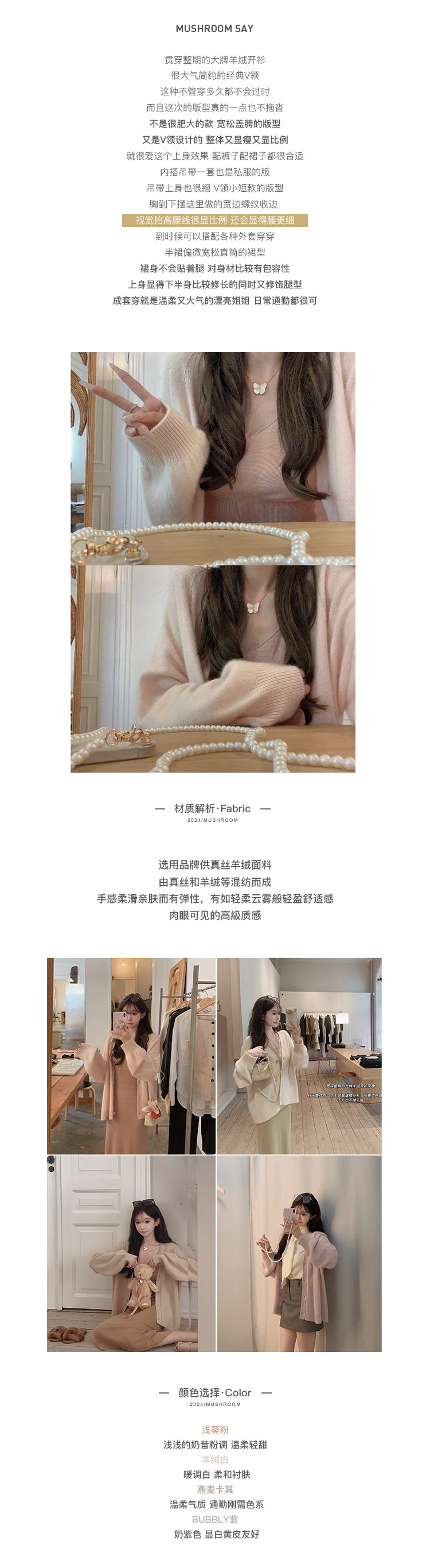 金蘑菇菇 羊绒织物穿搭套组/真丝羊绒开衫