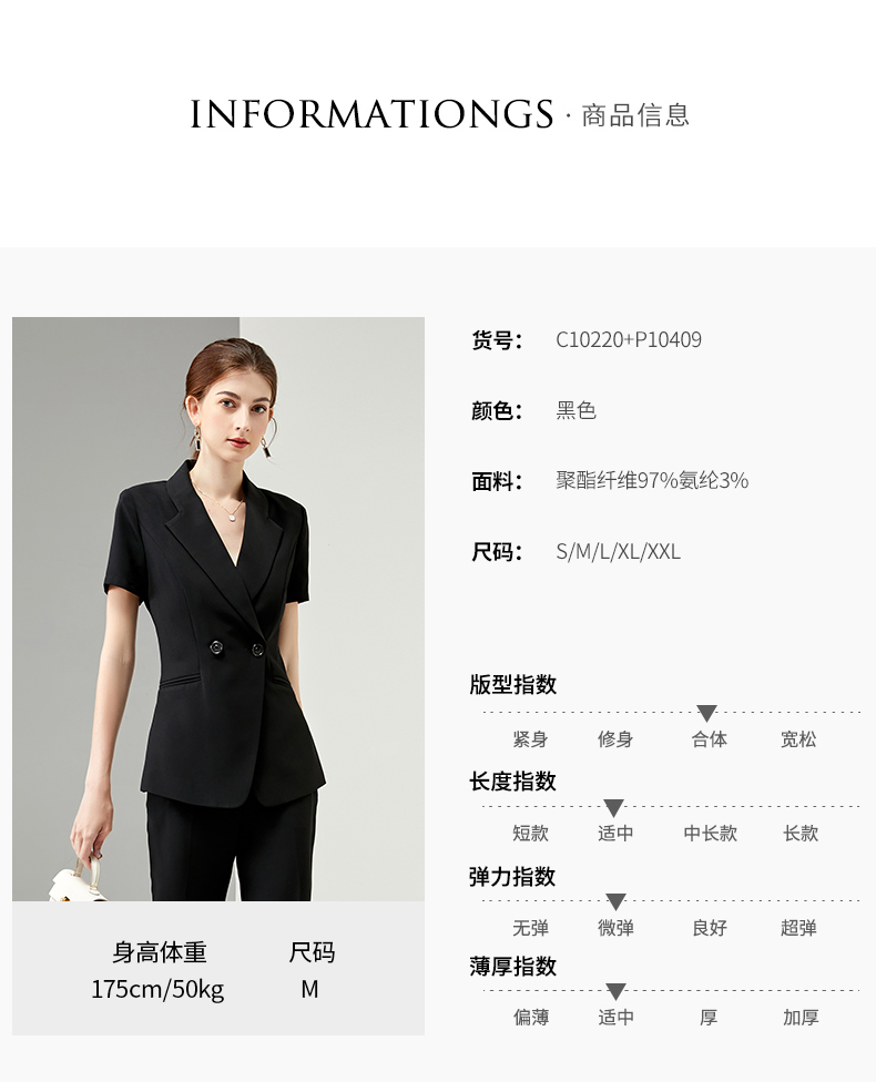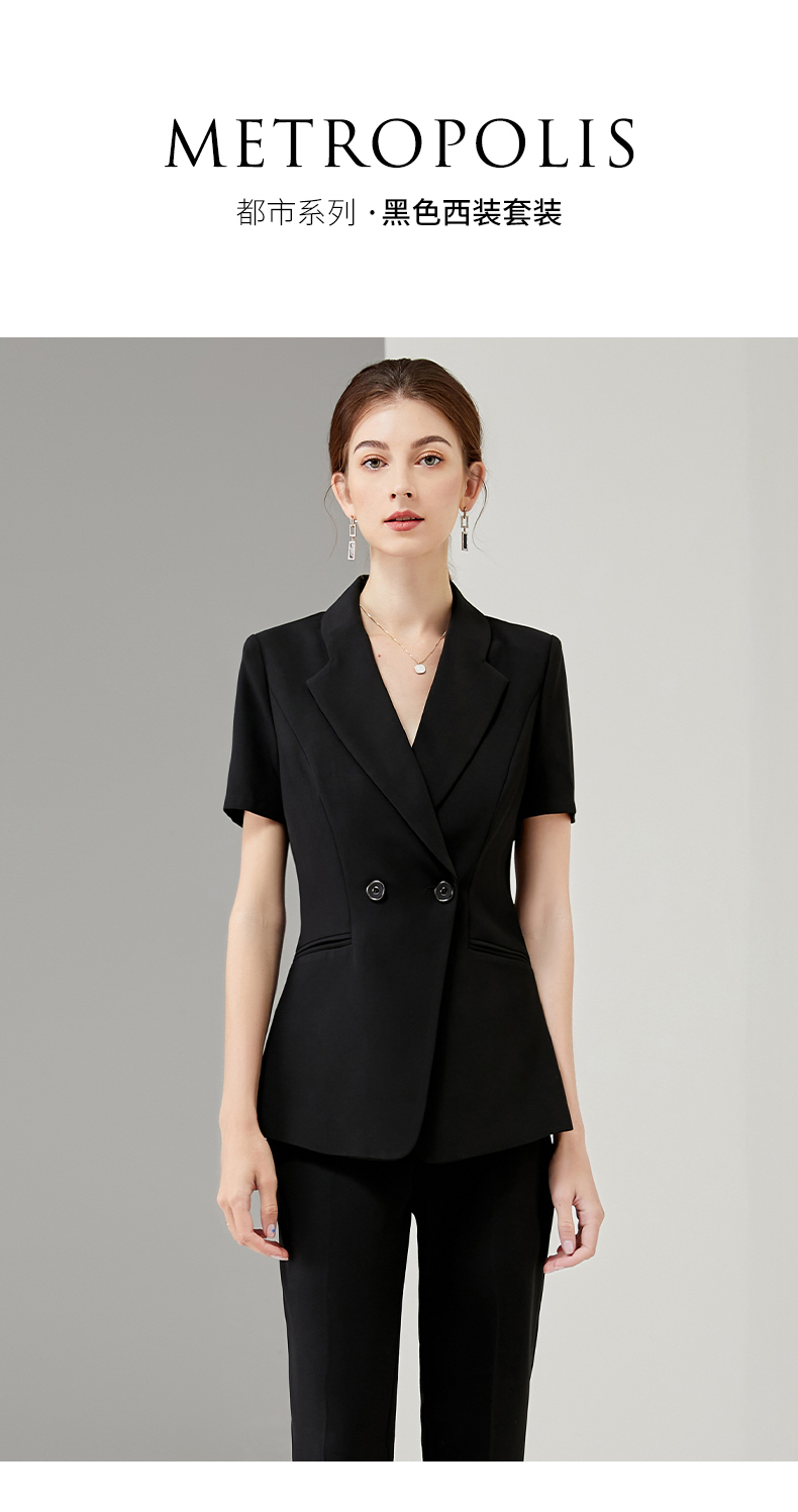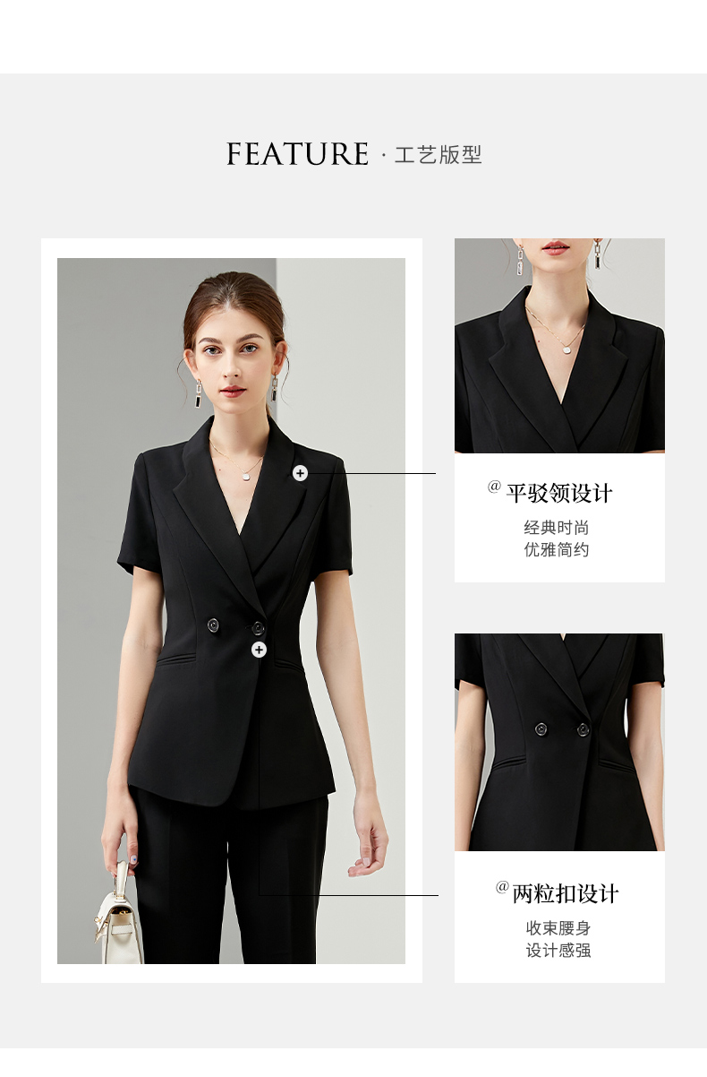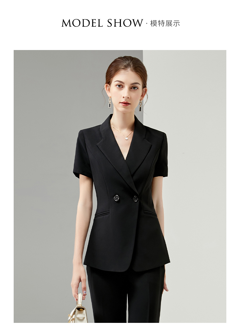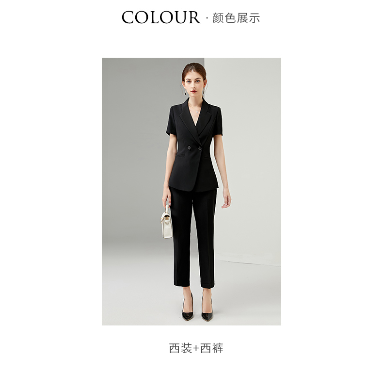 IWY/职业套装女夏季西服时尚黑色正装薄款短袖西装气质售楼部工作服C10220+P10409