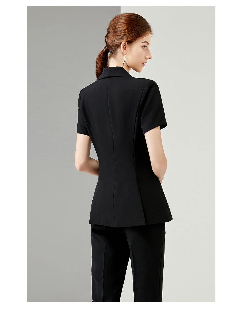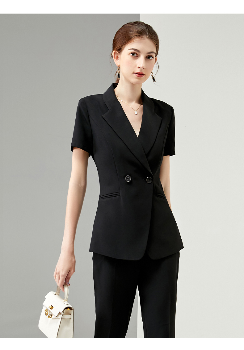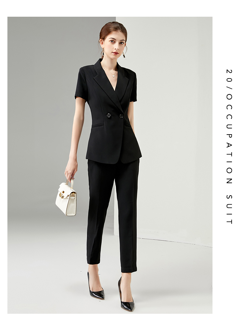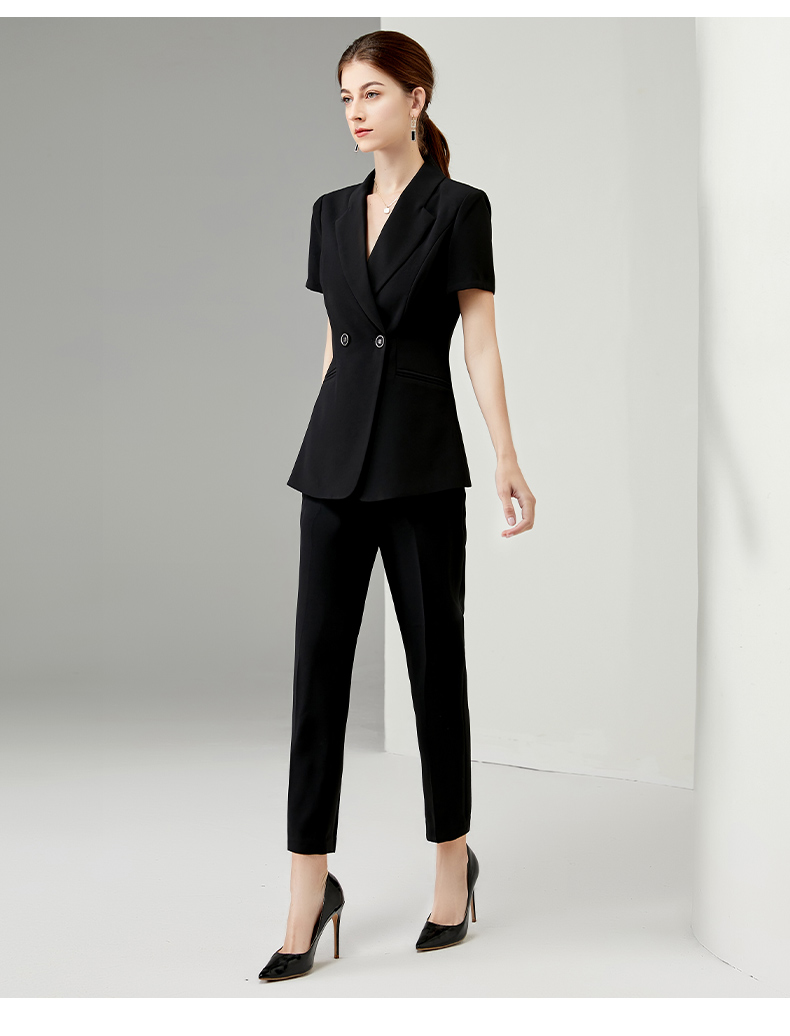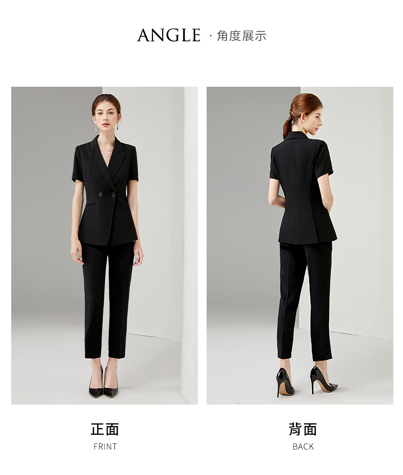 IWY/职业套装女夏季西服时尚黑色正装薄款短袖西装气质售楼部工作服C10220+P10409