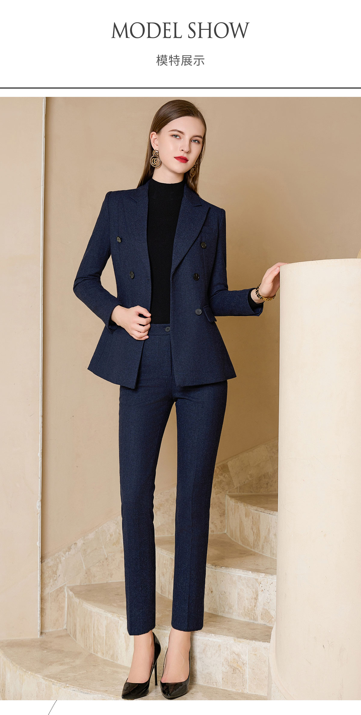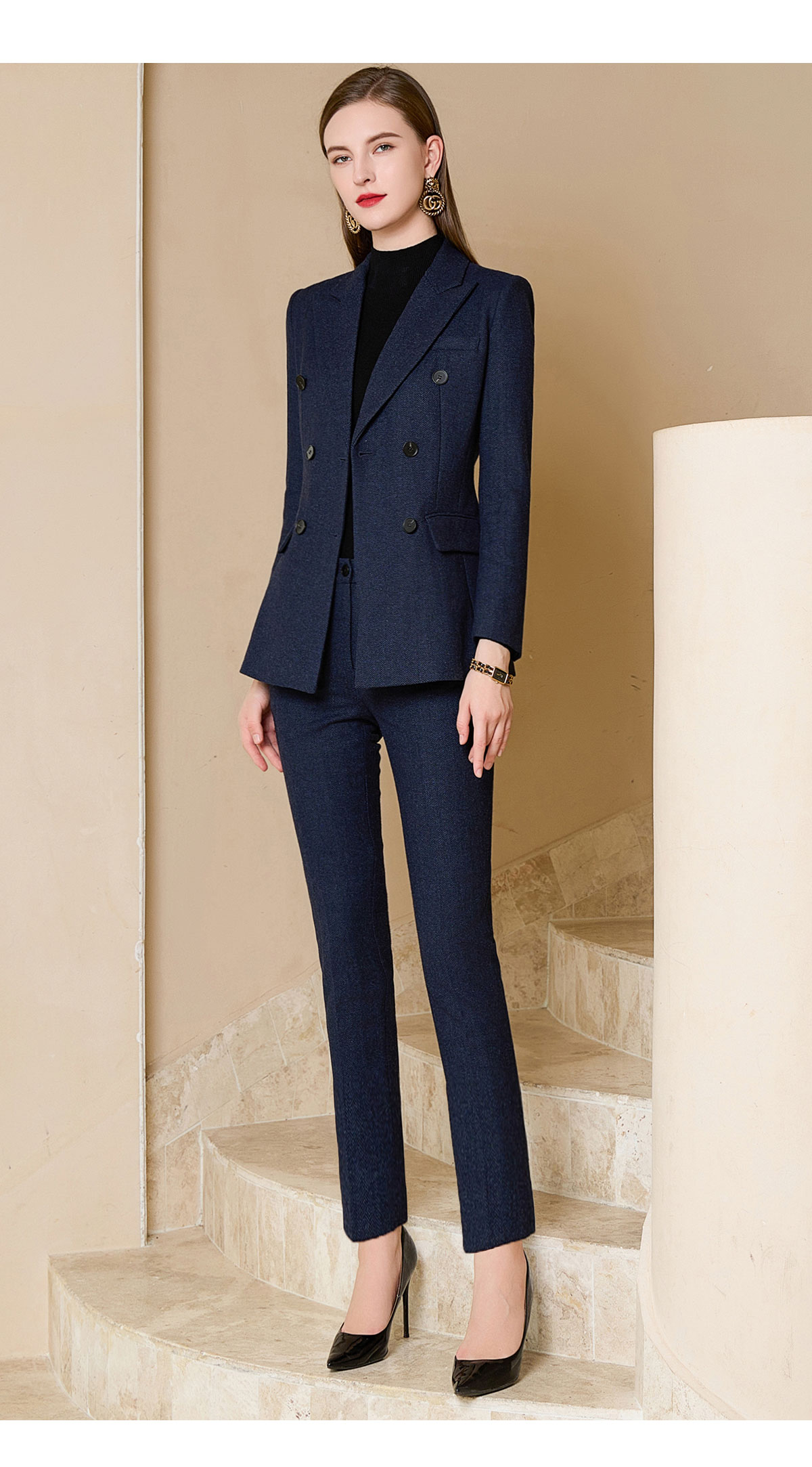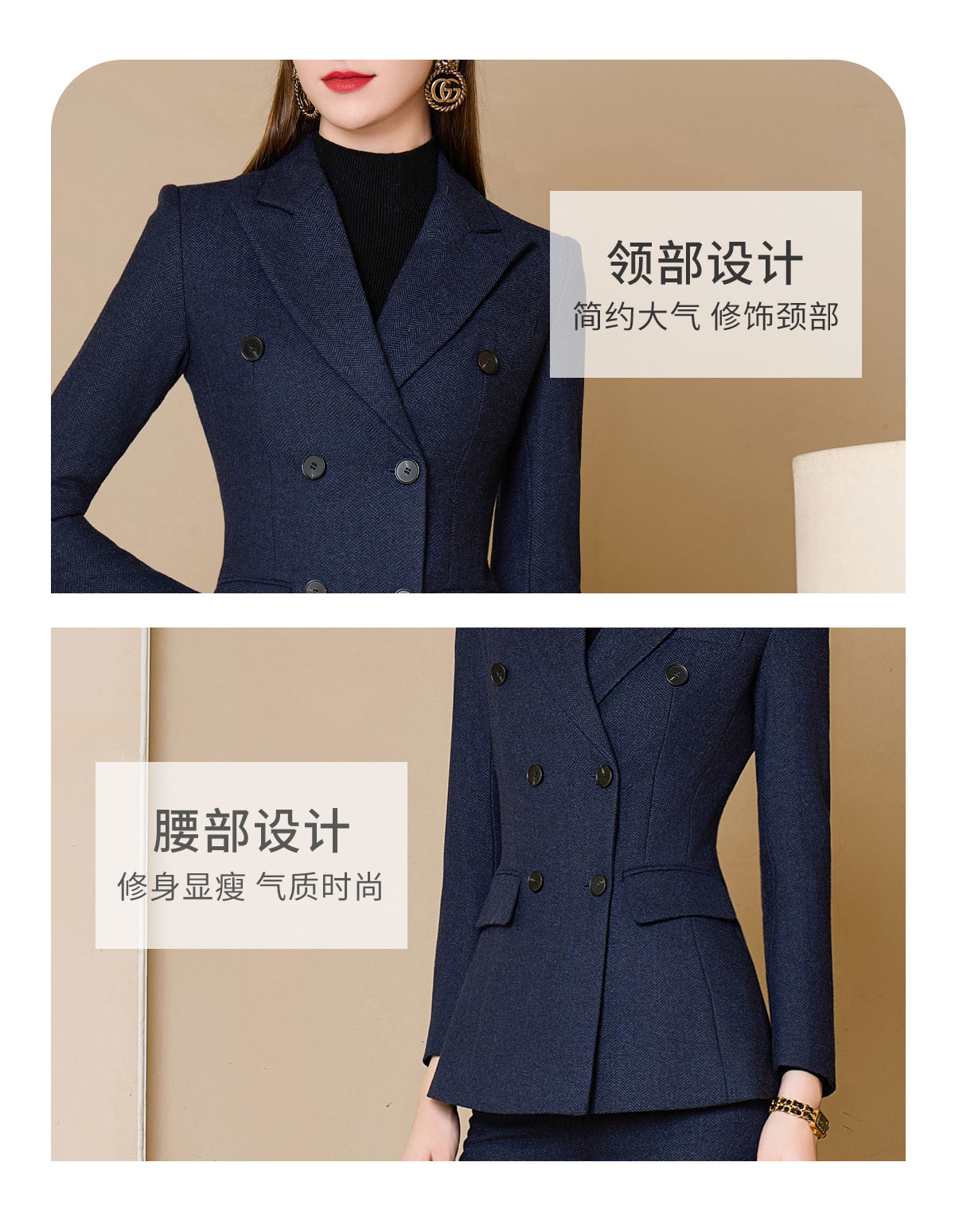 IWY/藏蓝色人字纹西装外套女秋冬羊毛加厚西服休闲商务职业套装 CP1154-ZL