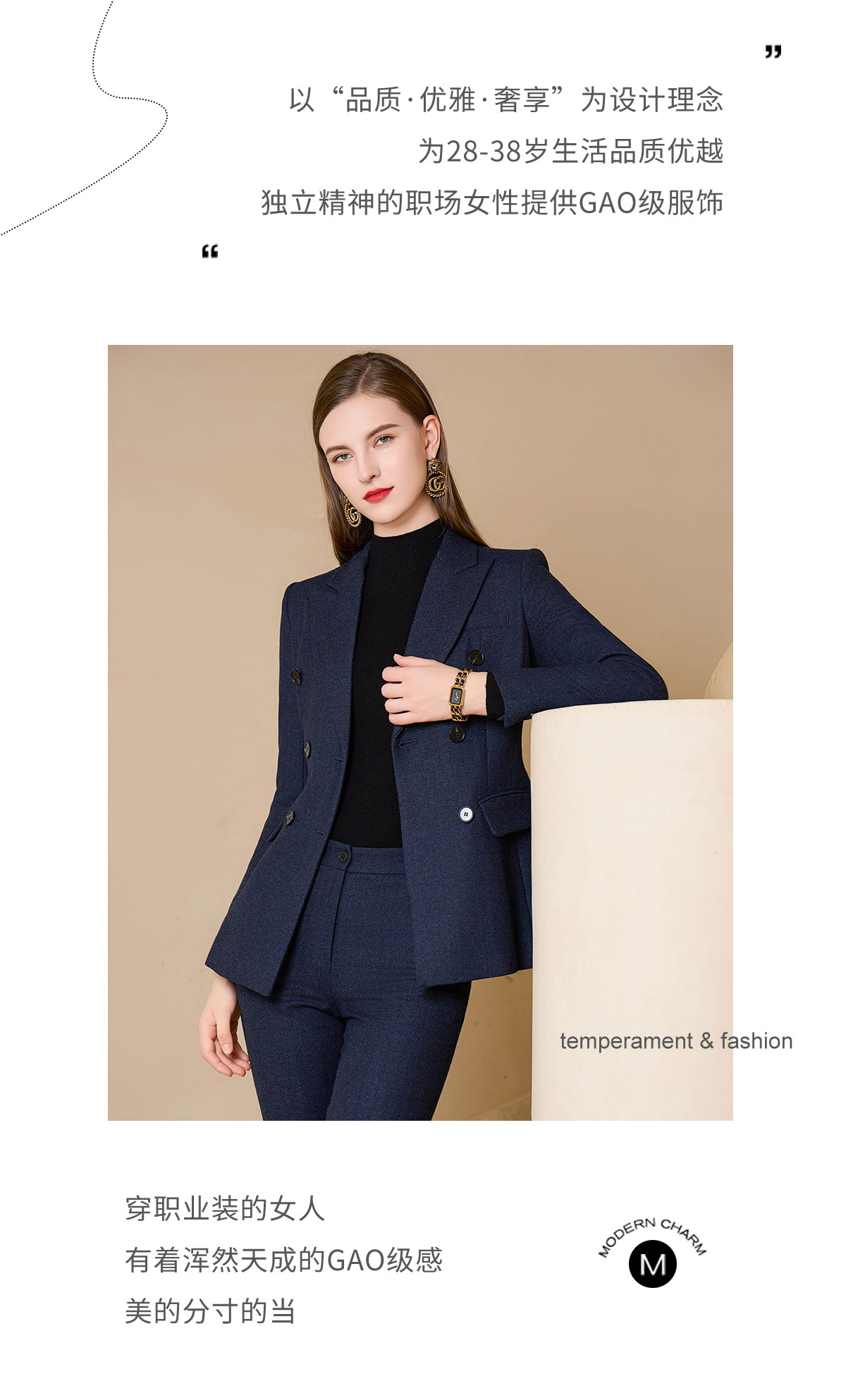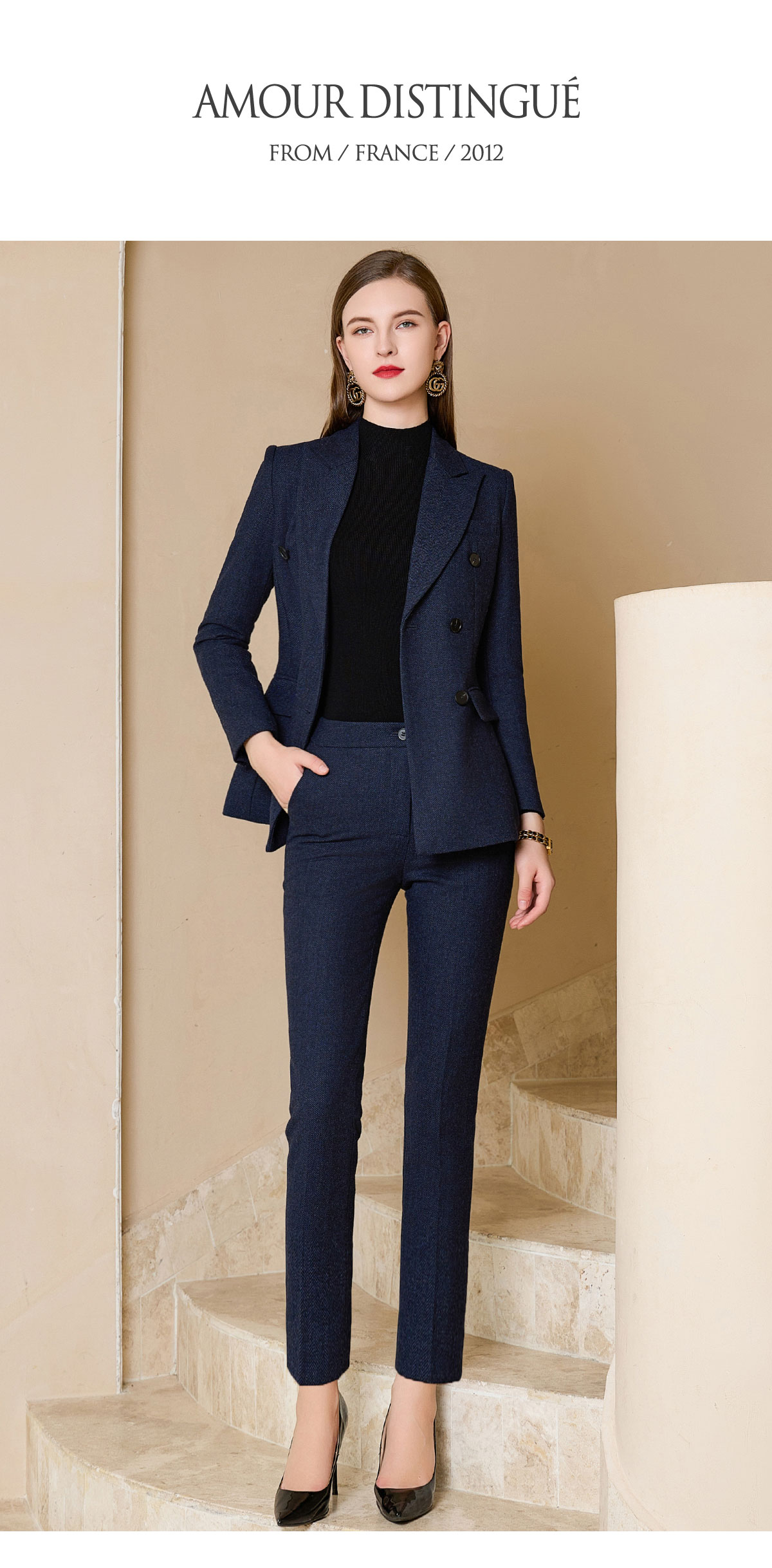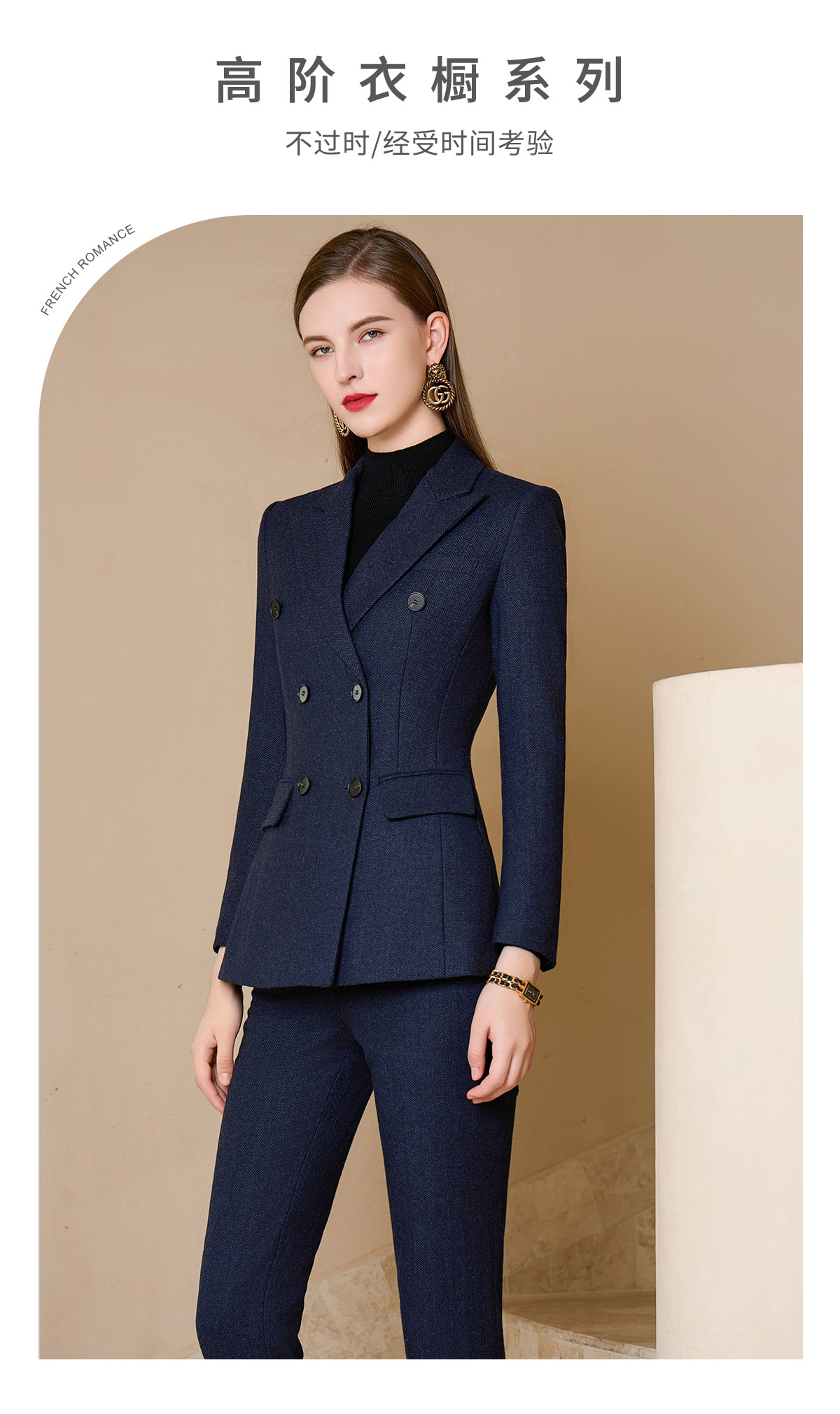 IWY/藏蓝色人字纹西装外套女秋冬羊毛加厚西服休闲商务职业套装 CP1154-ZL