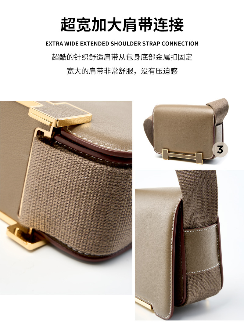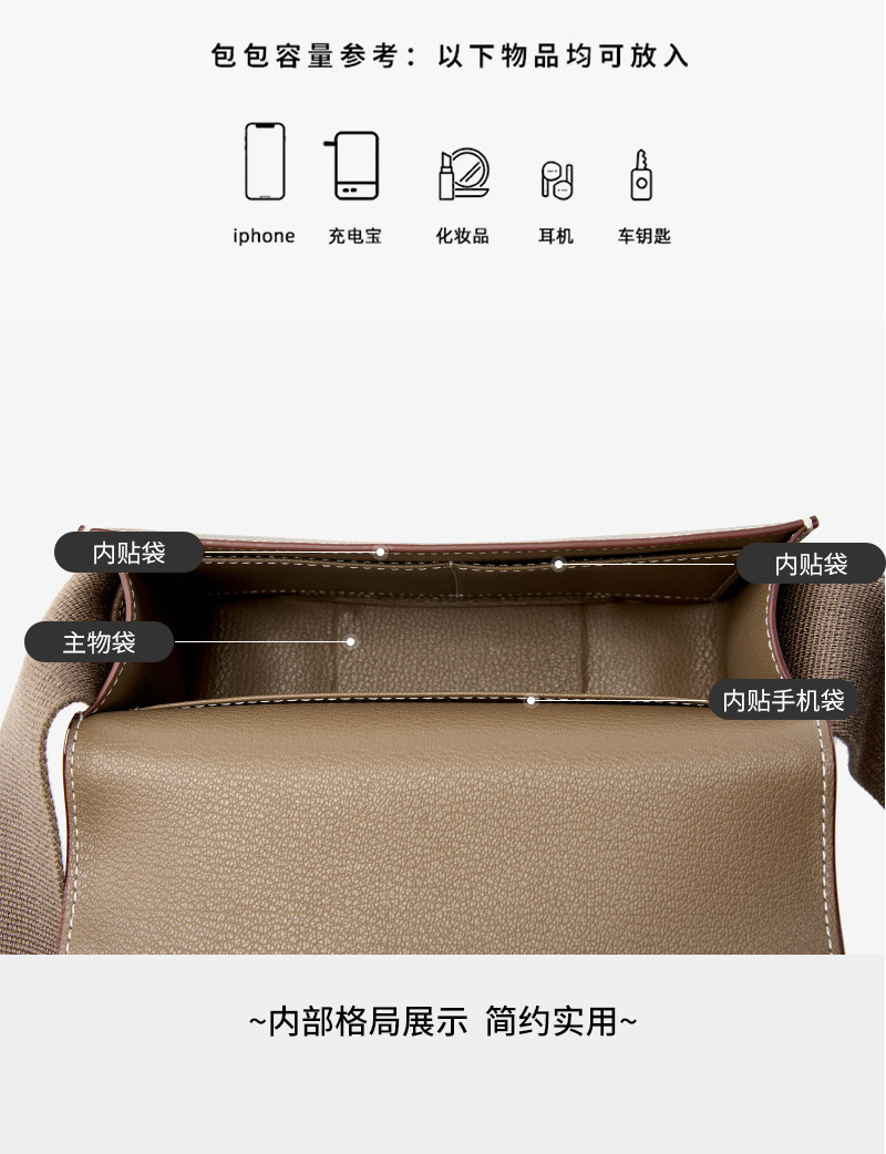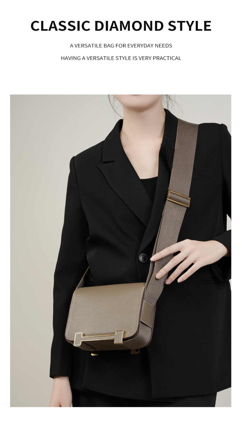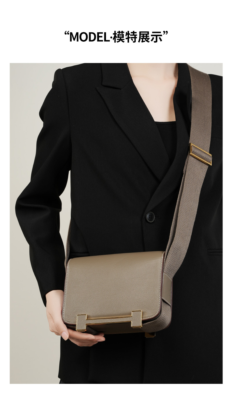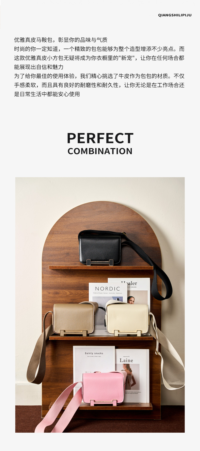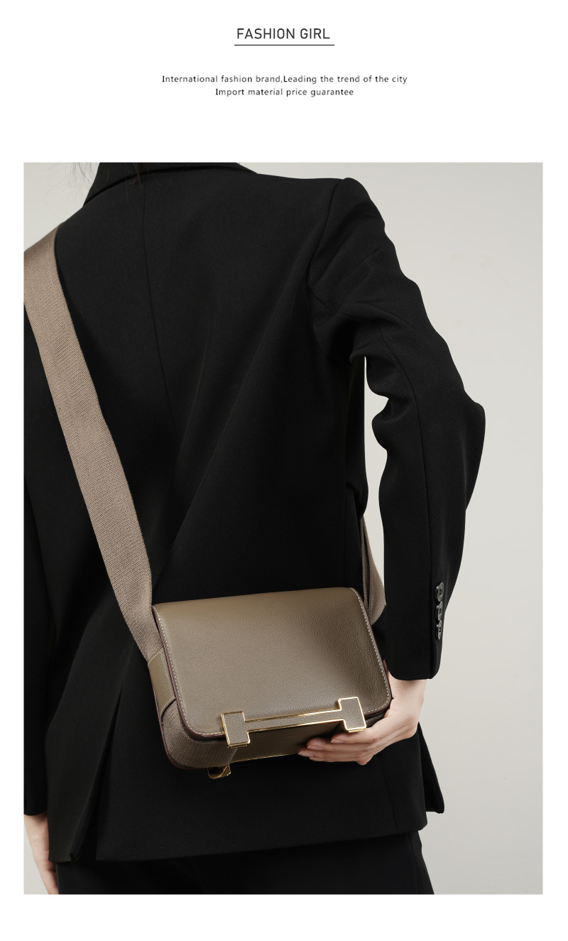 木屐包真皮女包,宽肩带单肩斜挎包包百搭空姐包小方包QSL- 2775
