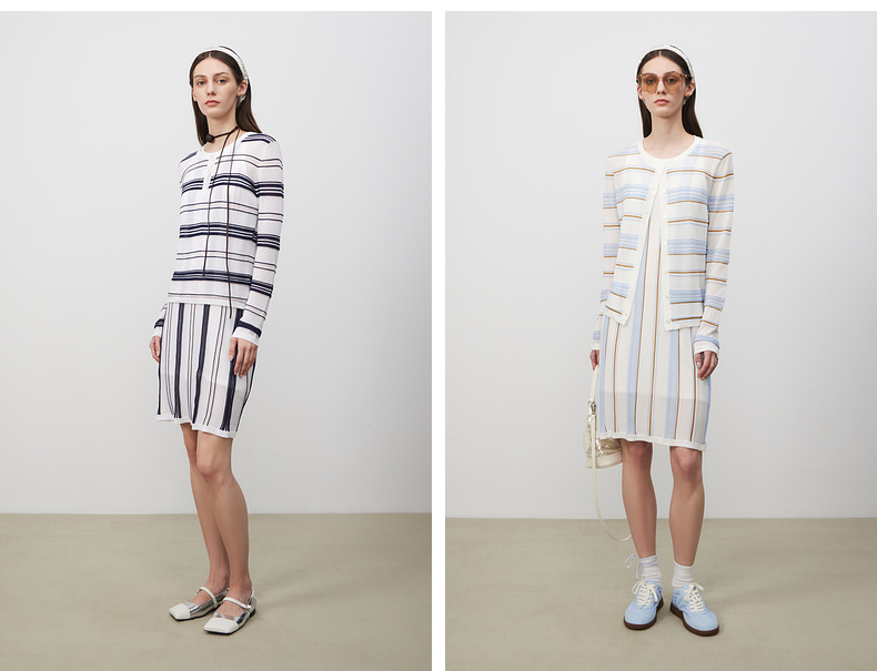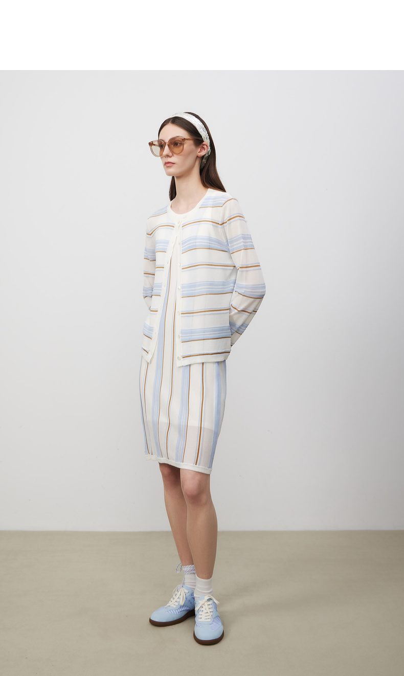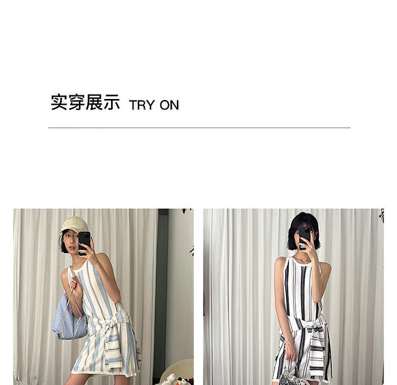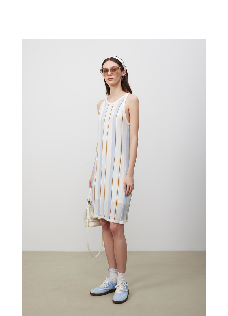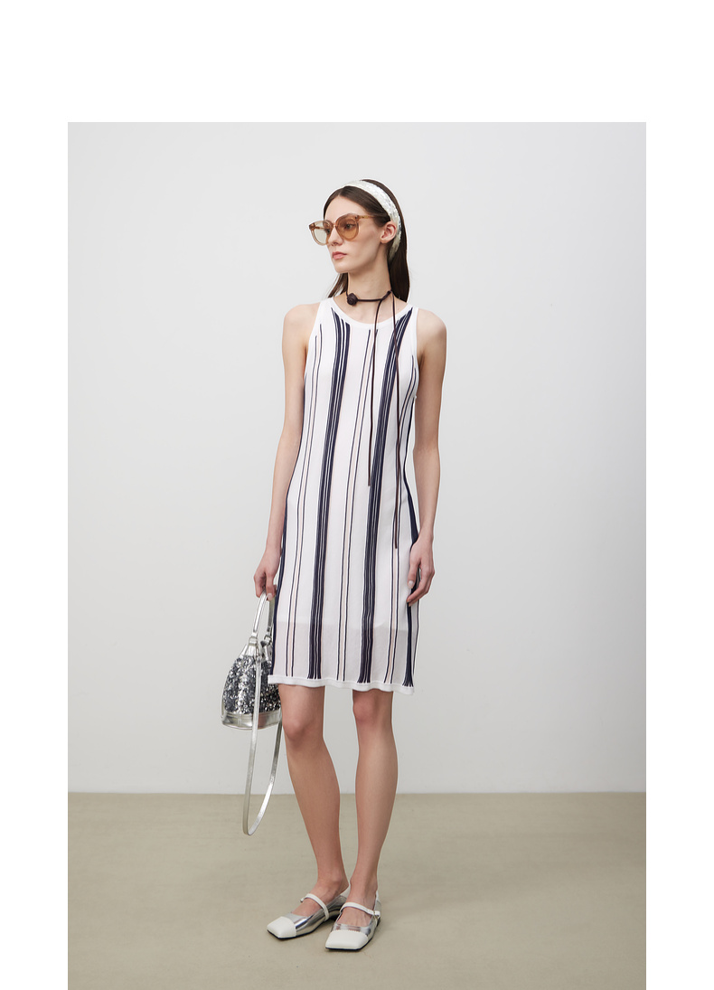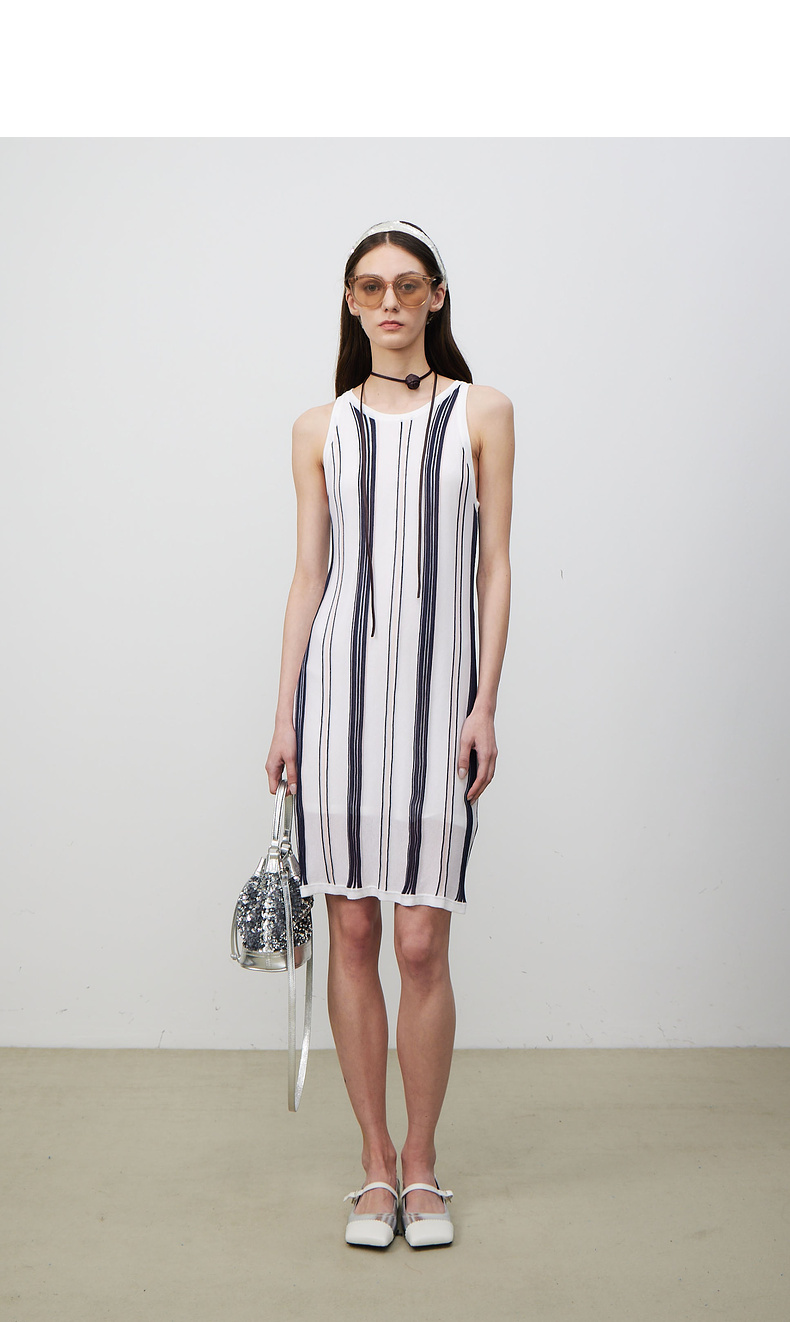 lost in echo2025春夏新款A型针织条纹圆领修身显瘦背心连衣裙女