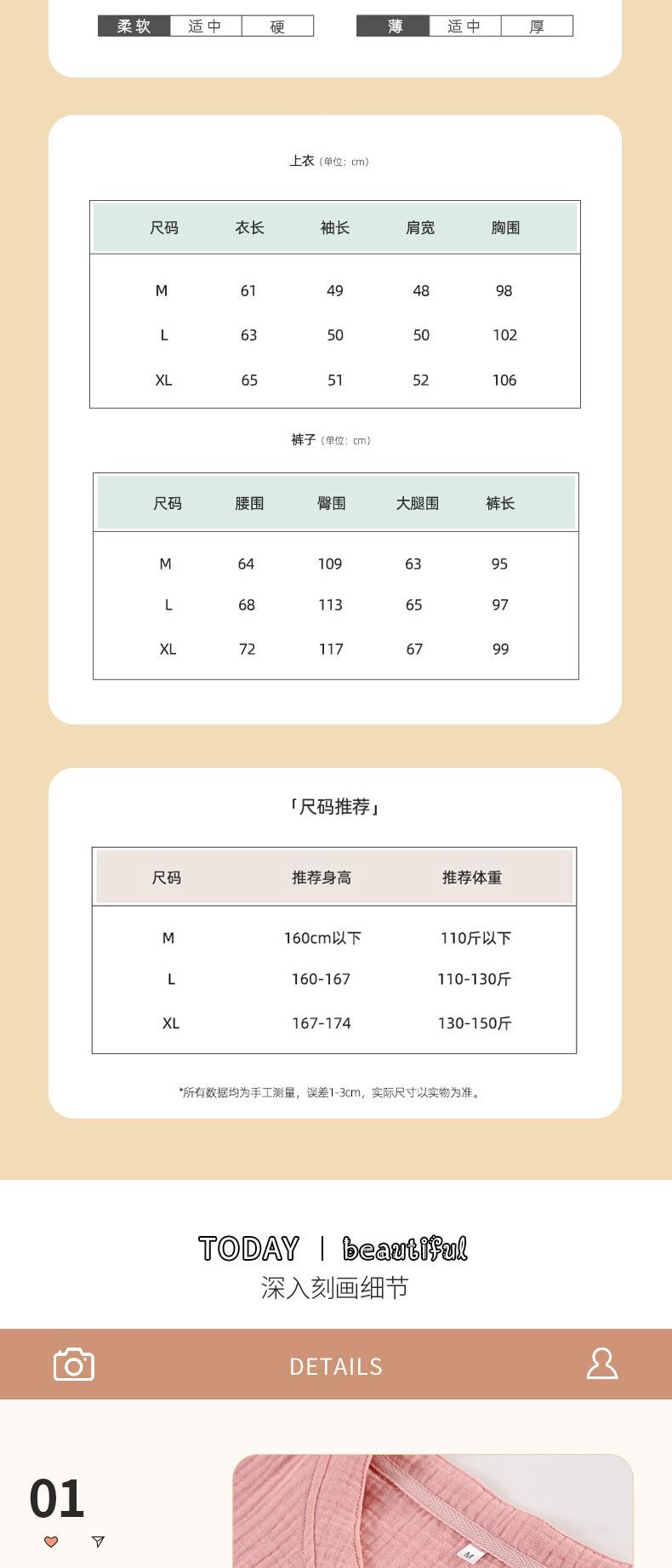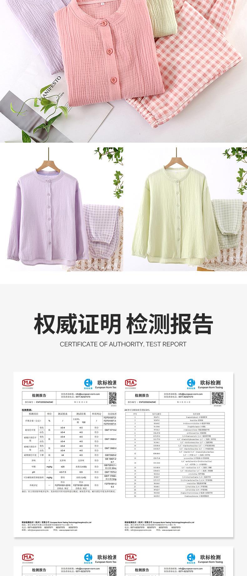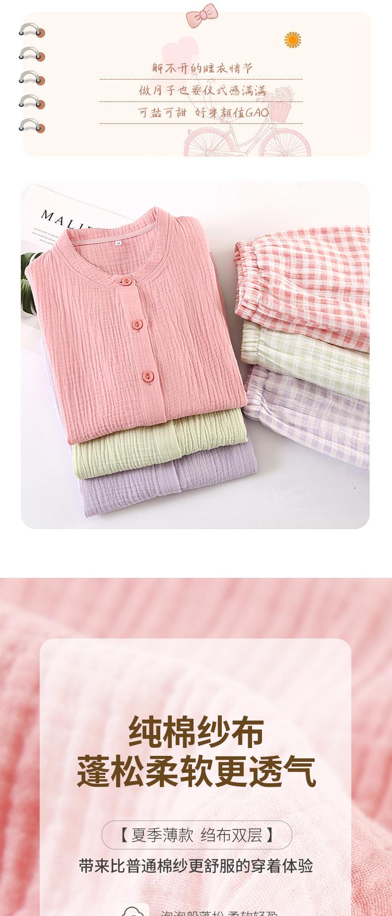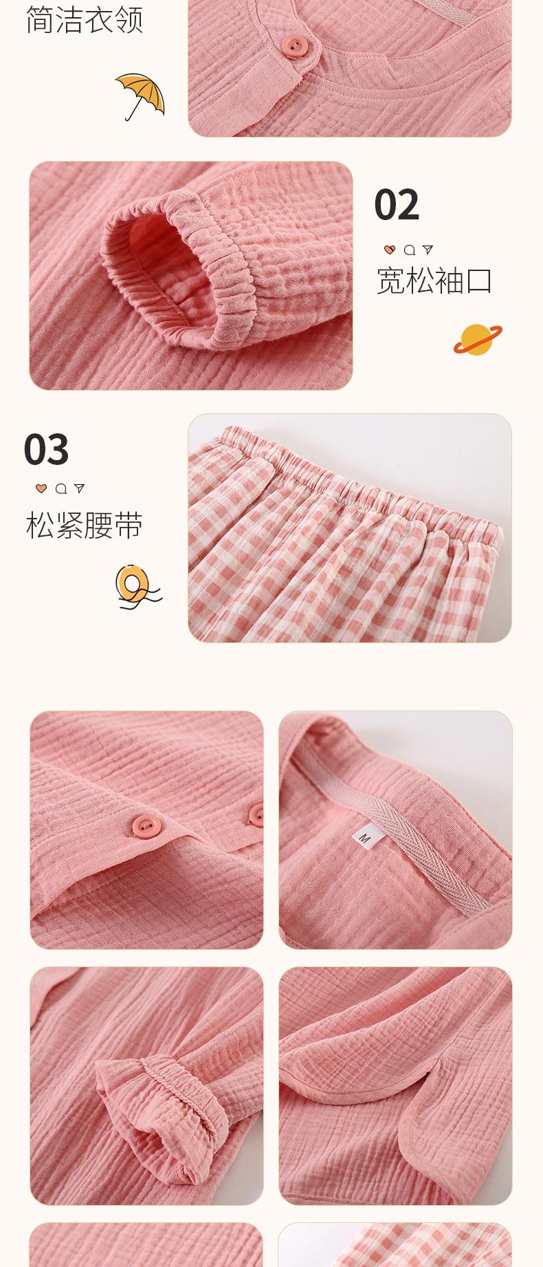 春秋纯棉日系格子女士家居服长袖绉布双层纱布简约可外穿睡衣套装