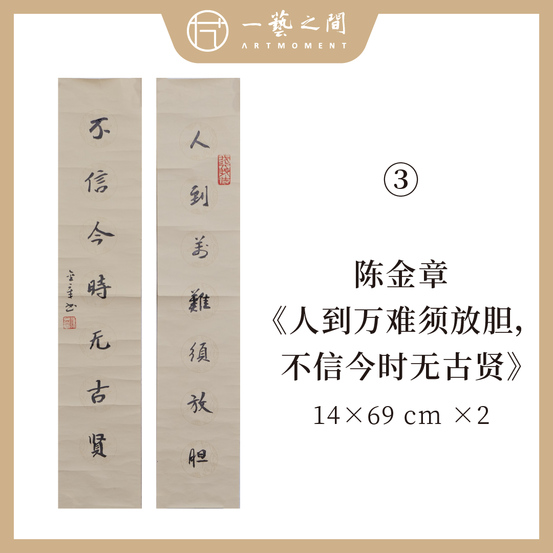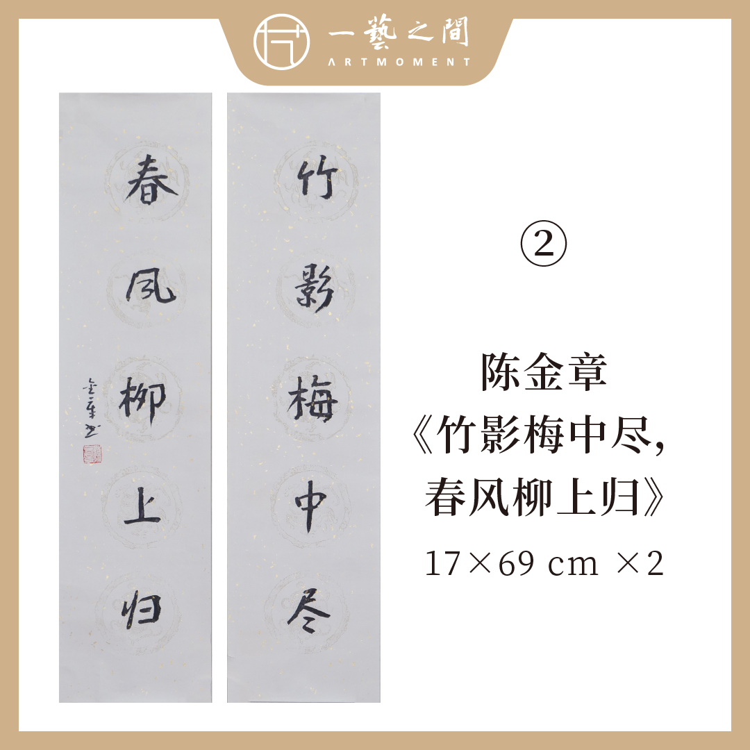 陈金章小对联书法原作 17*69cm*2(合两平尺)《笔下天地宽,多读古人书》《竹影梅中尽,春风柳上归》《人到万难须放胆,不信今时无古贤》可另外定制内容(仅限五言对联) 手写手书纸本宣纸