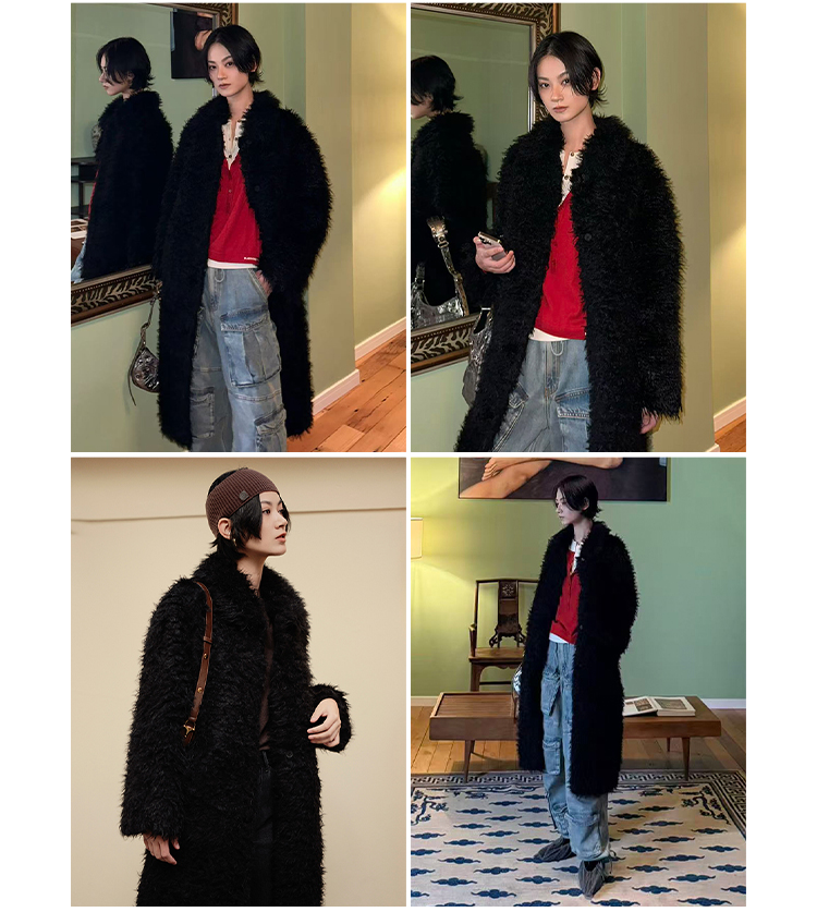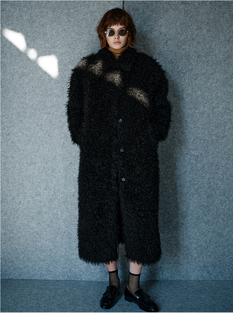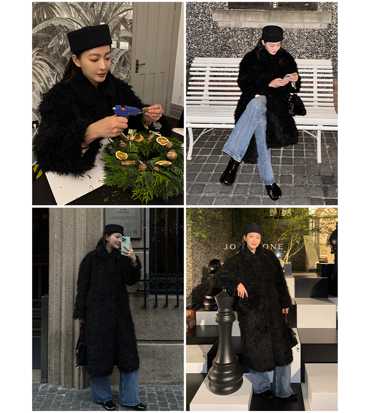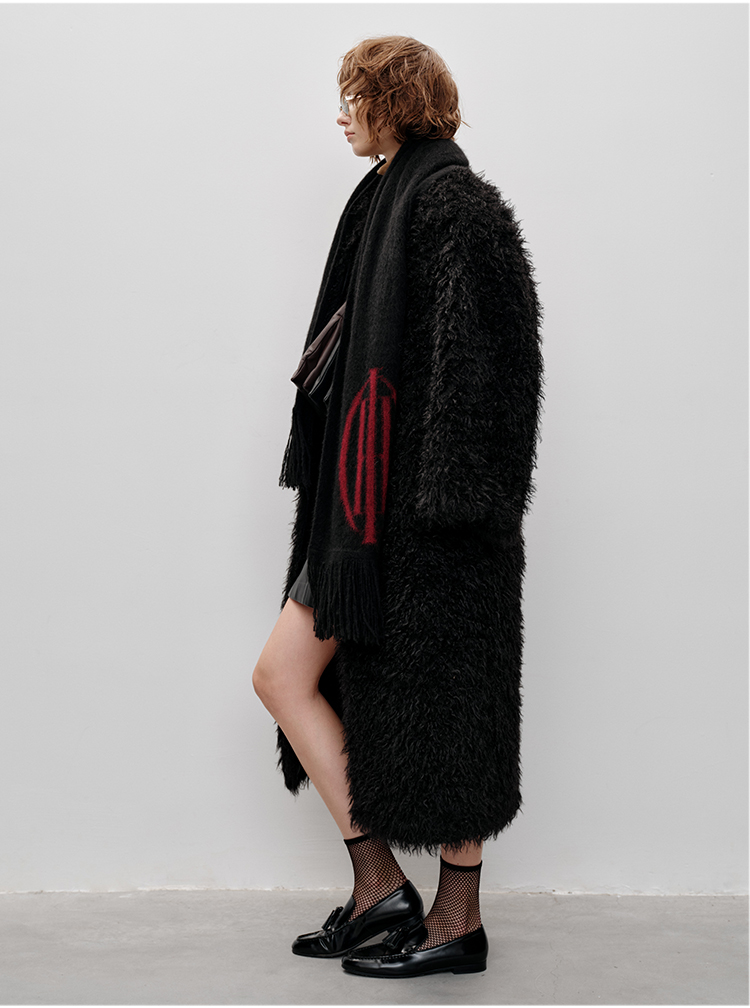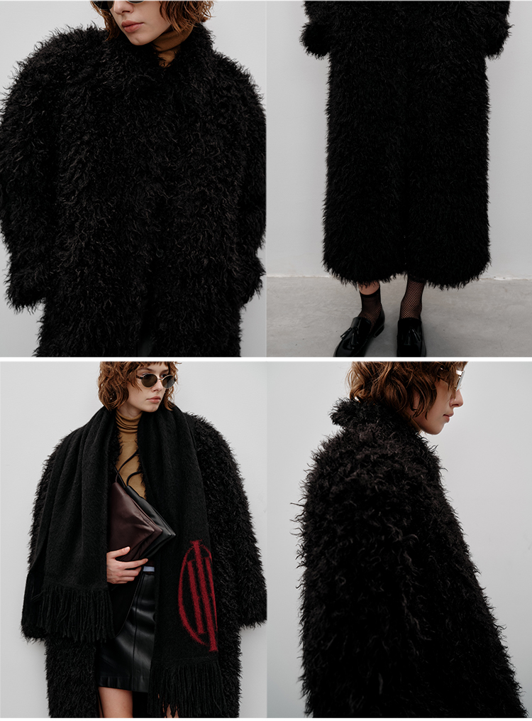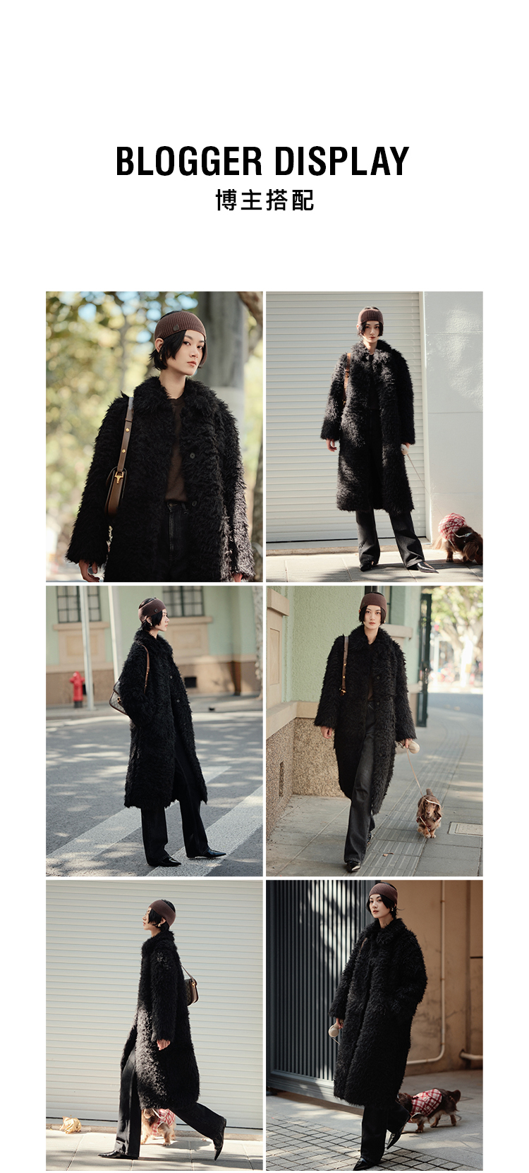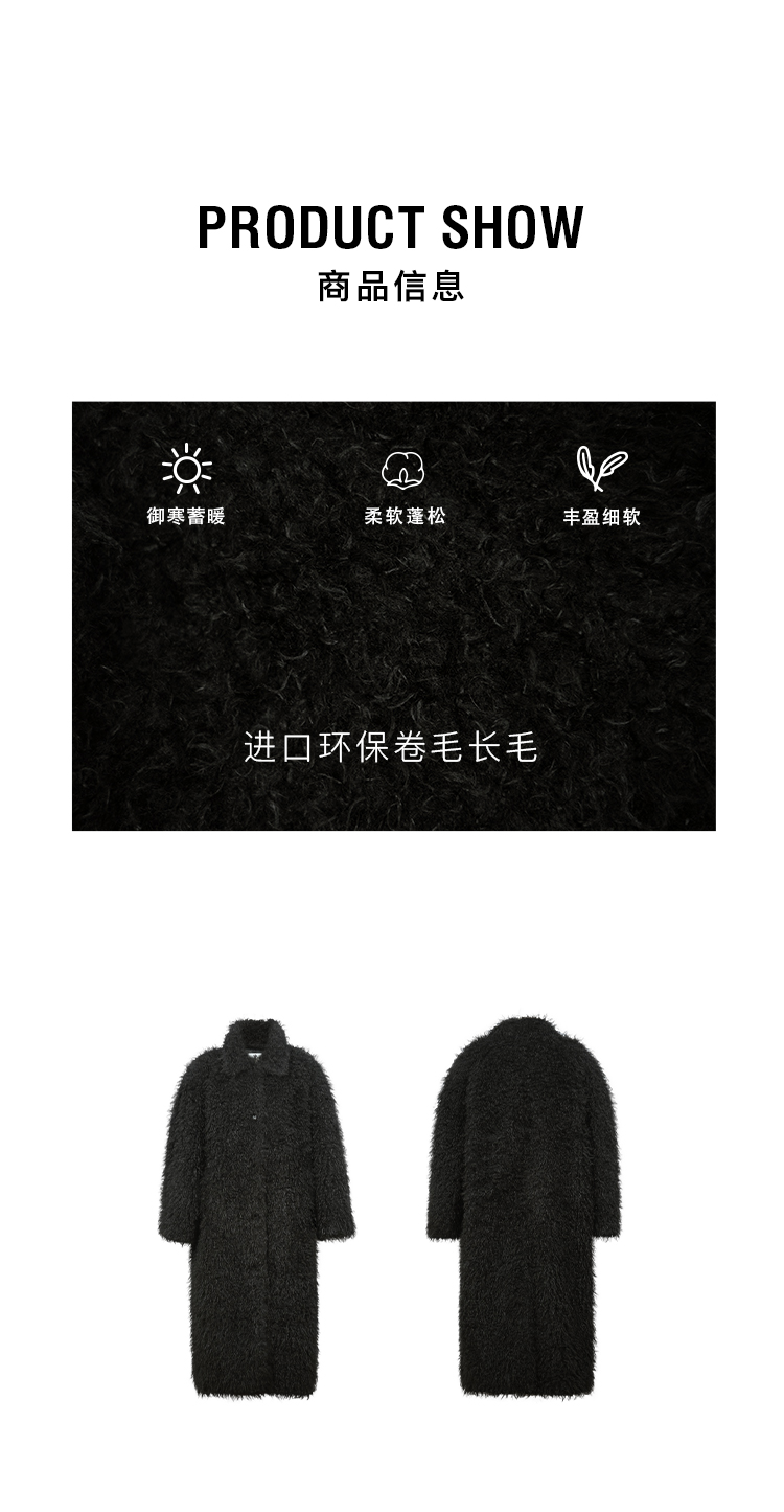 HIDEMI 大秀款进口环保卷毛长毛翻领廓形肩复古感加厚款大衣
