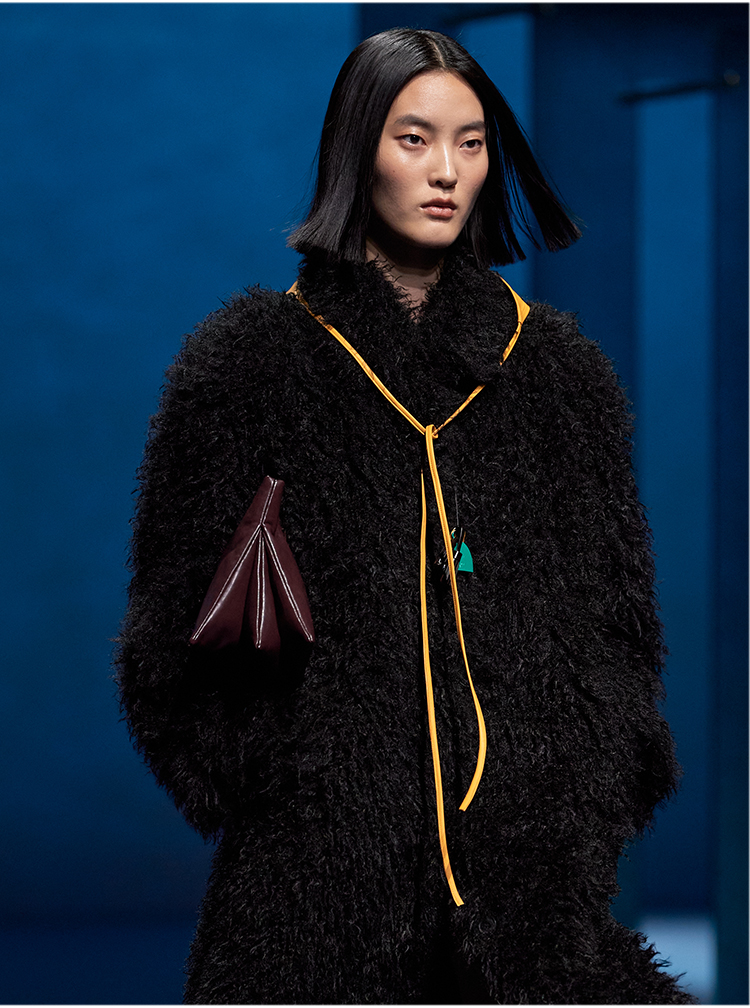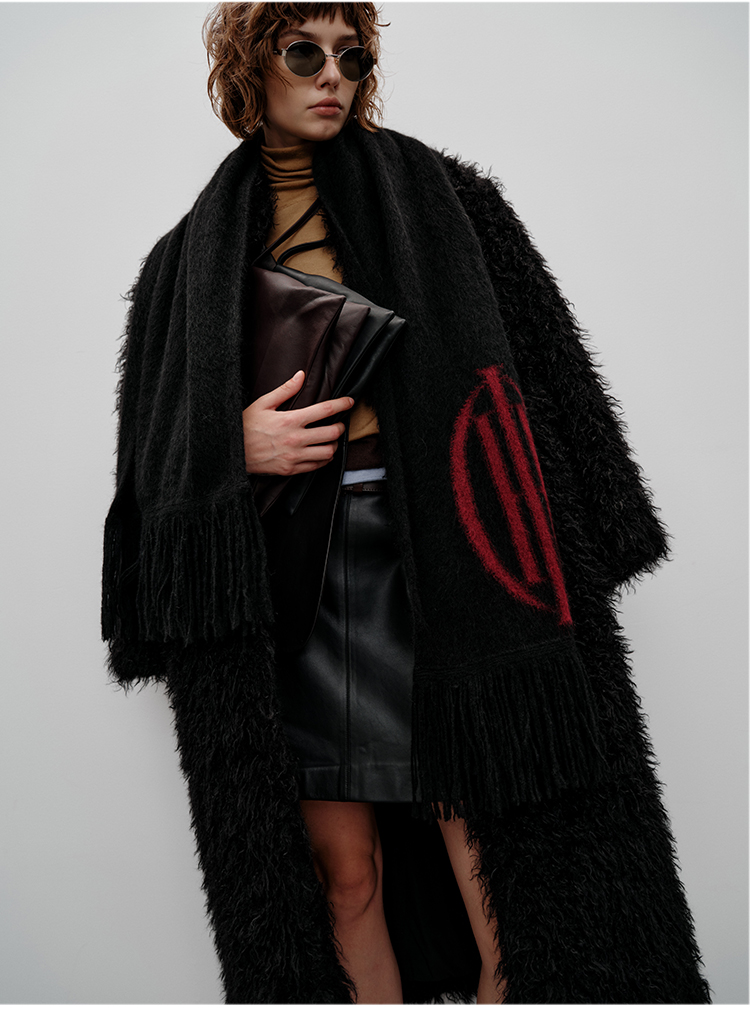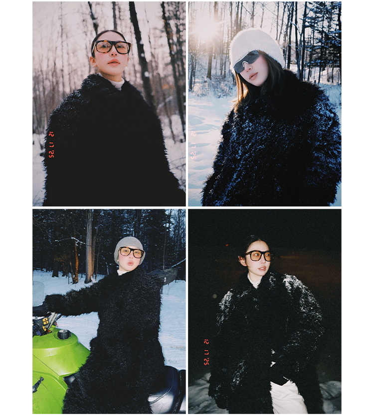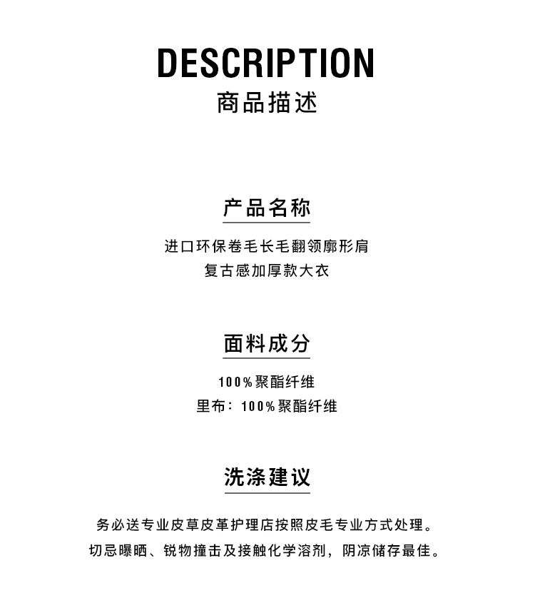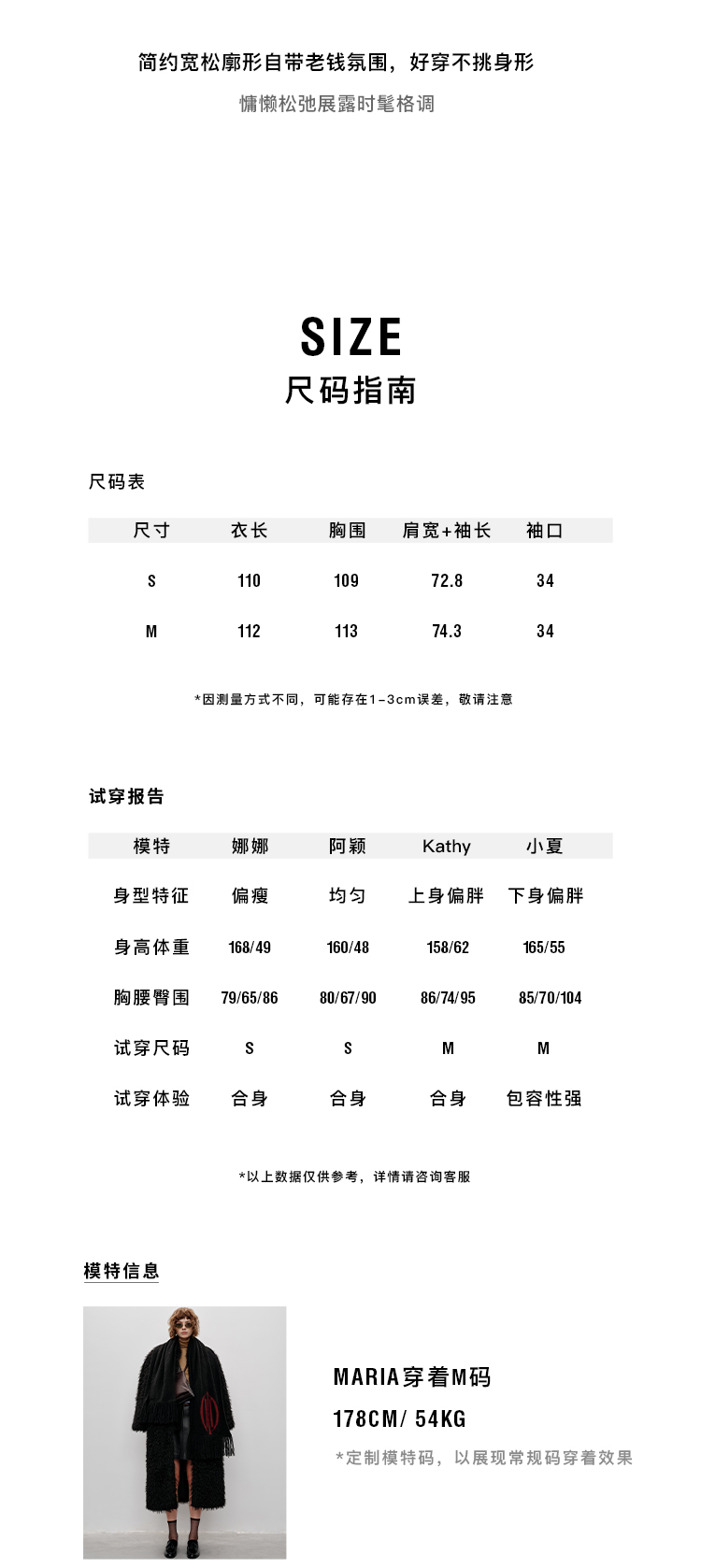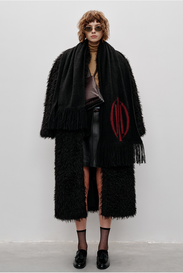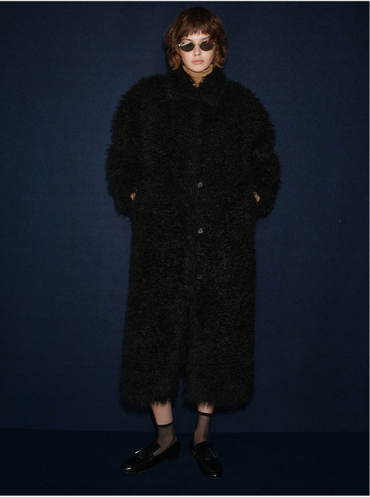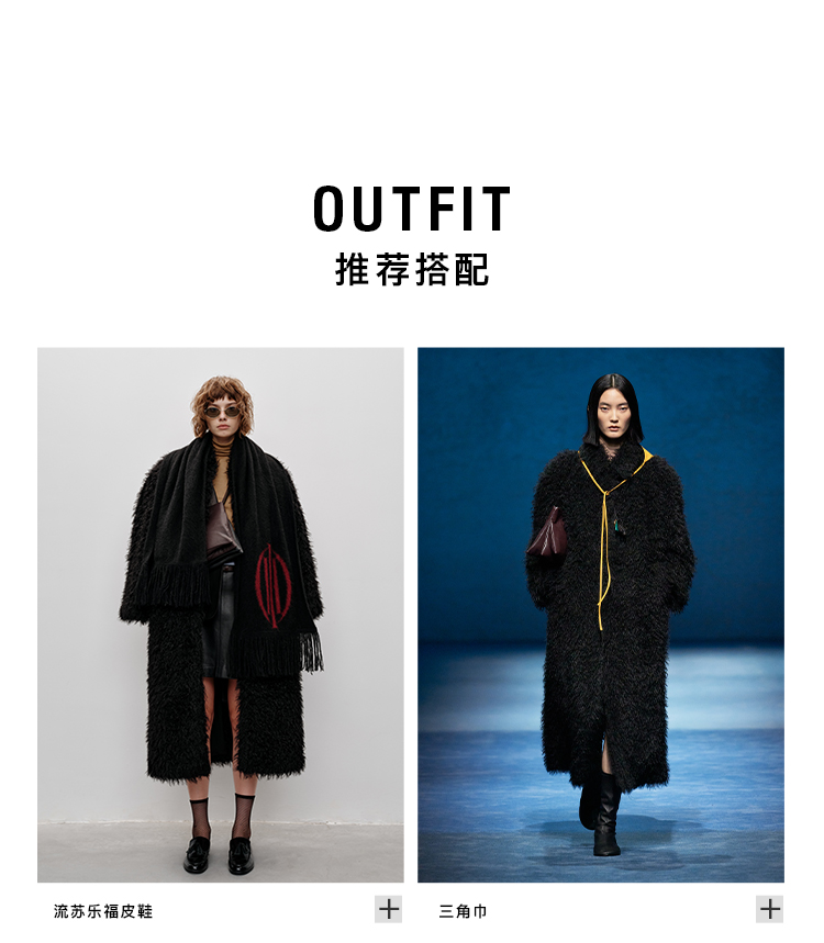 HIDEMI 大秀款进口环保卷毛长毛翻领廓形肩复古感加厚款大衣
