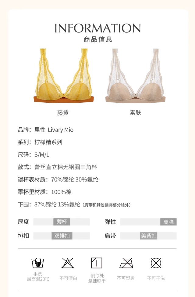 里性 LIVARY MIO 柠檬精 性感蕾丝法式三角杯内衣女无钢圈美背文胸