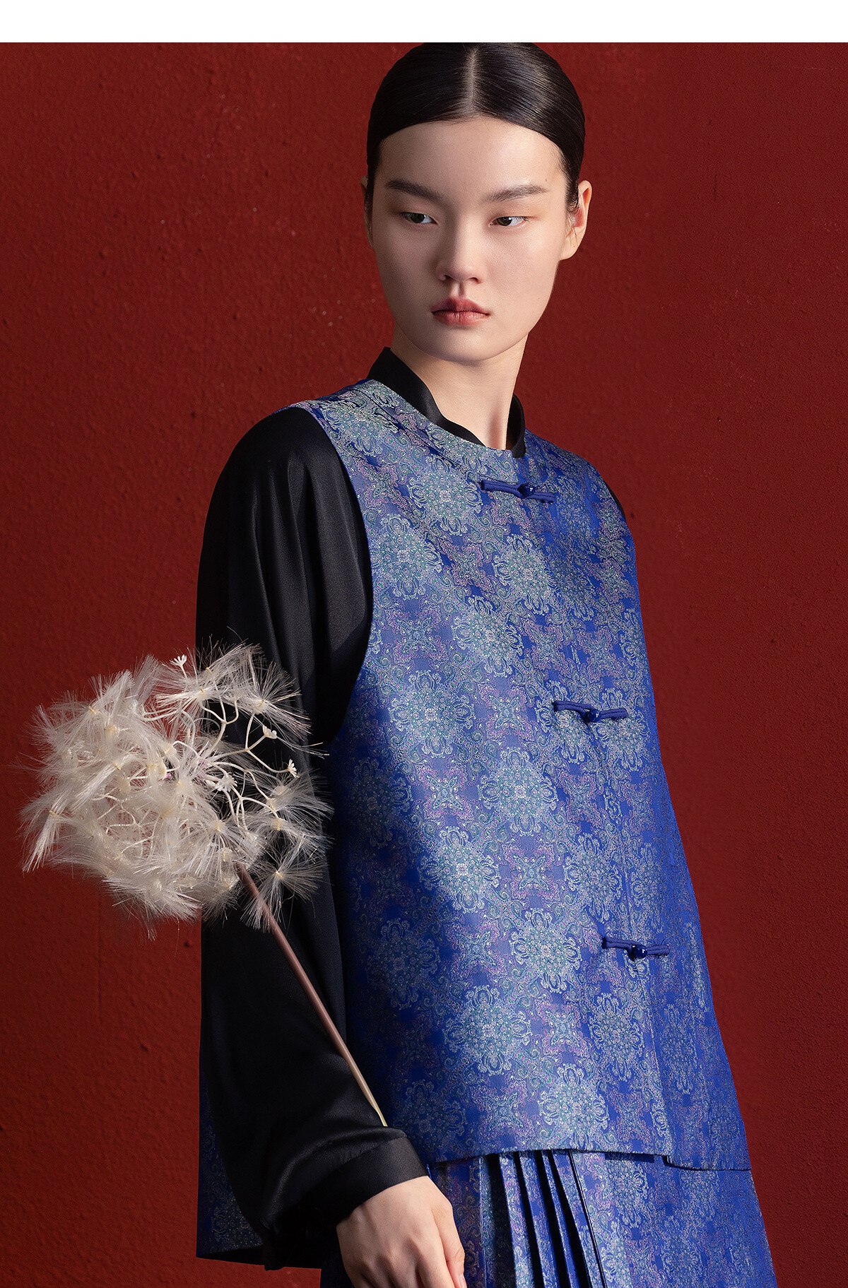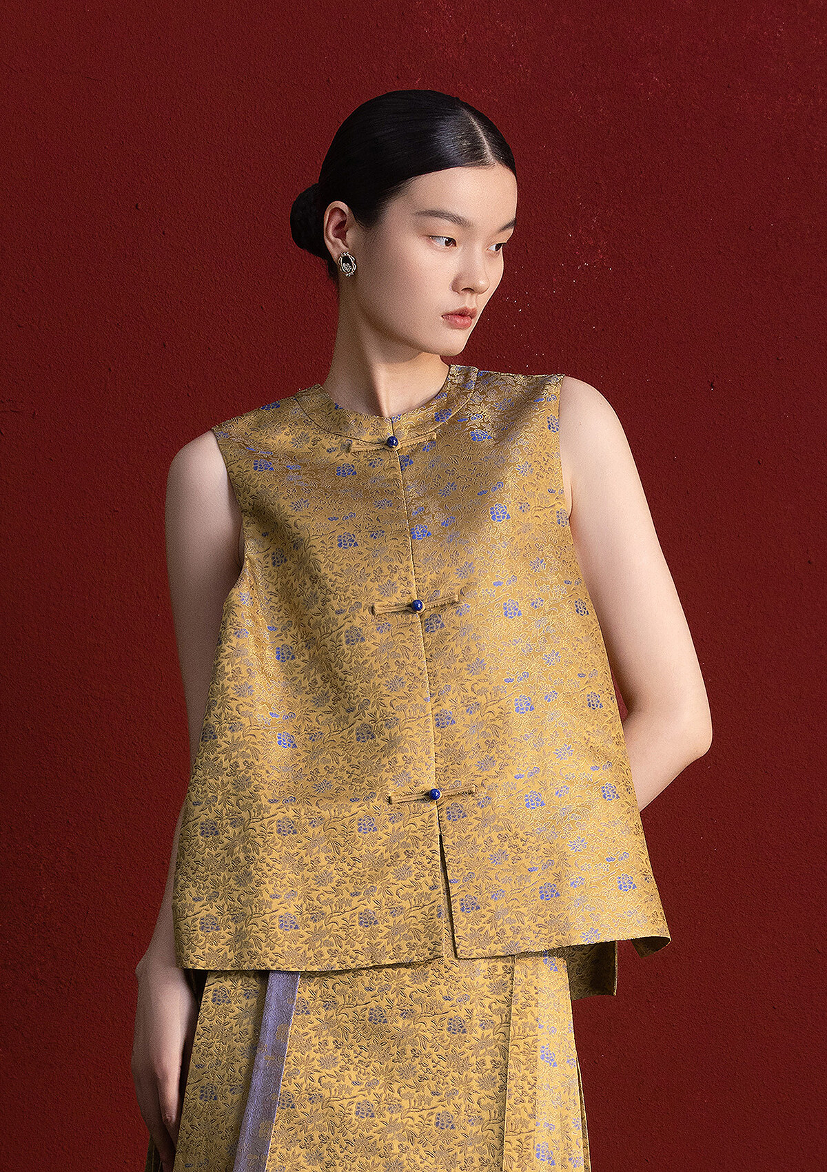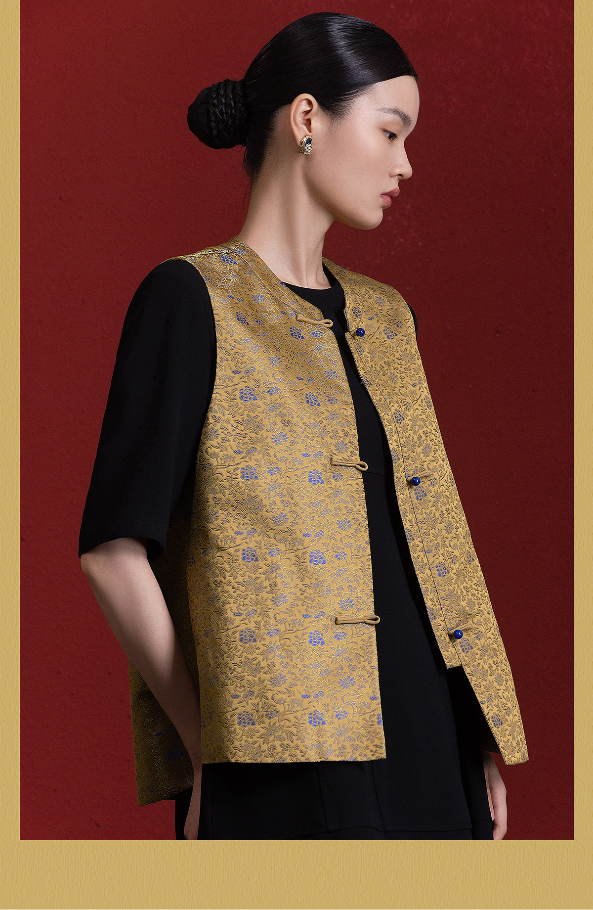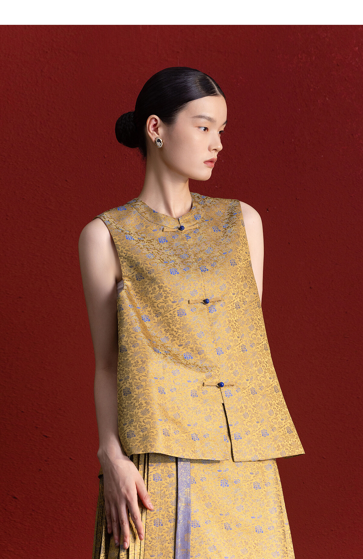 【林栖设计小店】(现货)桑蚕丝宋锦马甲复古紫金提花新中式气质2025春季新品无袖外套女1951027