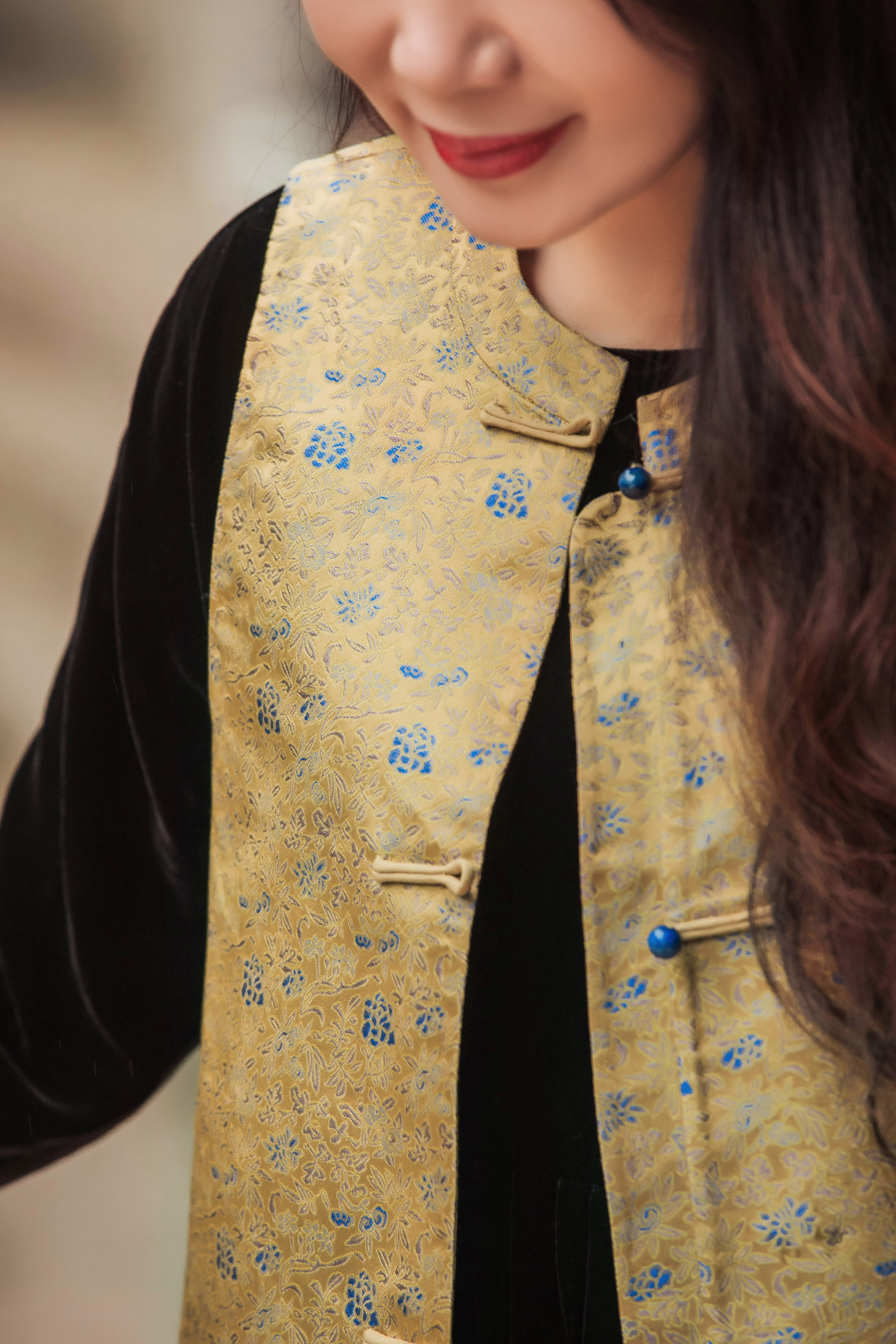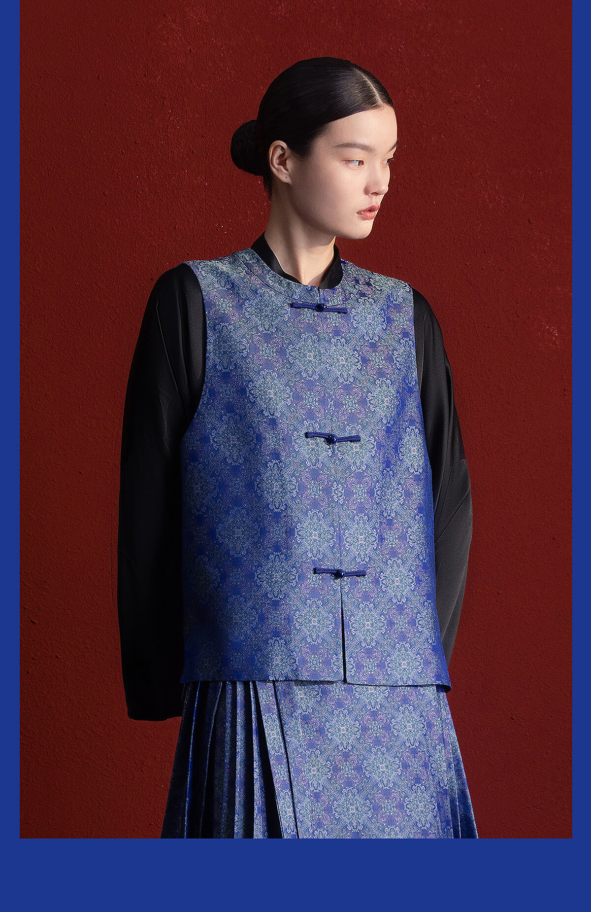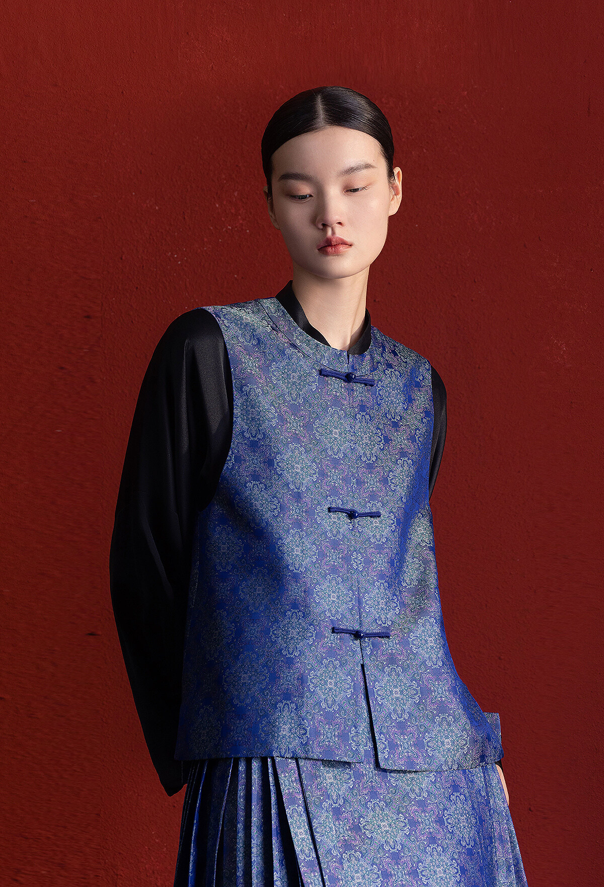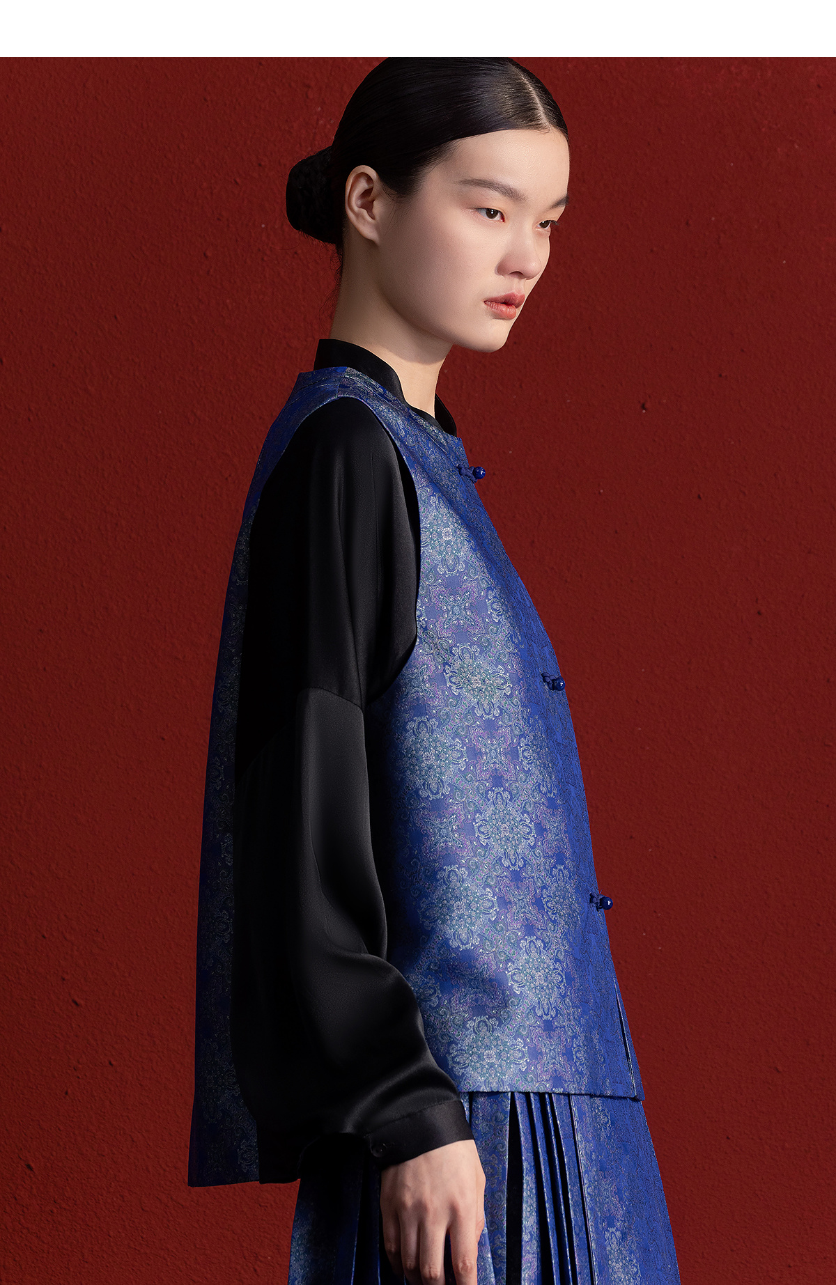 【林栖设计小店】(现货)桑蚕丝宋锦马甲复古紫金提花新中式气质2025春季新品无袖外套女1951027