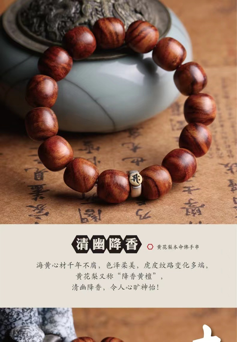 黄花梨手串·十二生肖本命佛 木质佛珠转运手串