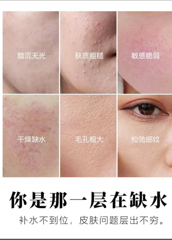 缺水这么严重,皮肤缺水的重要性‼ 1⃣基底层缺水: 代谢不畅、肤质粗糙、长斑 2⃣有肌层缺水: 长痘、干燥粉刺、螨虫 3⃣颗粒层缺水: 紫外线侵入、变薄、过敏 4⃣透明层缺水: 肌肤发黄、暗淡无光 5⃣角质层缺水: 敏感脆弱、粗糙、营养吸收差 6⃣真皮层缺水: 松弛细纹、毛孔粗大