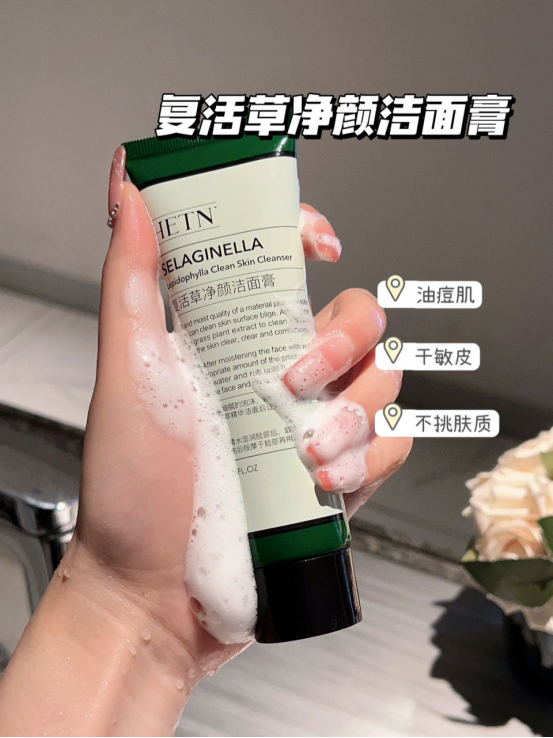 🔺复活草净颜洁面膏 各位黑头脸兄弟姐妹👭 这支超好用的洁面膏一定要试一试 质地丝滑细腻~很好搓开 一点点就能打出绵密的泡沫,柔软舒服 洗完一点也不拔干,很水润哦! 脸上黑头闭口都洗没了!皮肤摸着嫩嫩的~