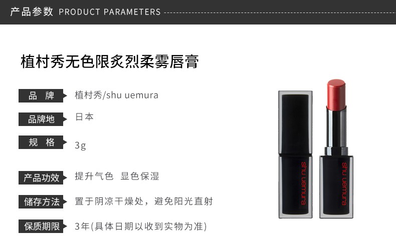 SHU UEMURA/植村秀 无色限炙烈柔雾唇膏 3G AMRD #163