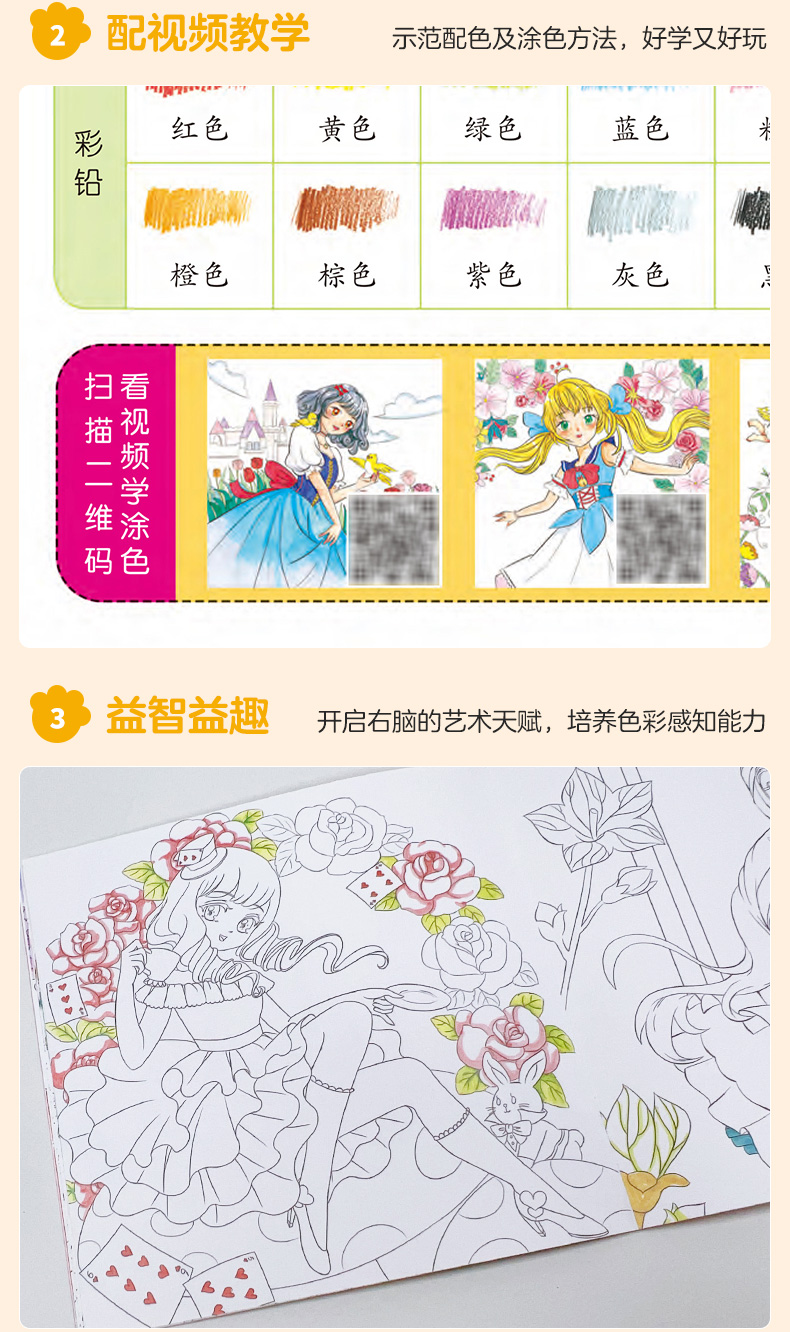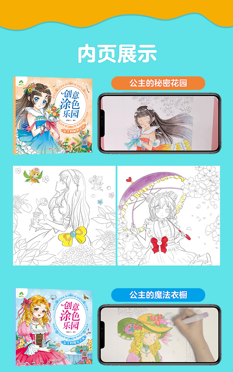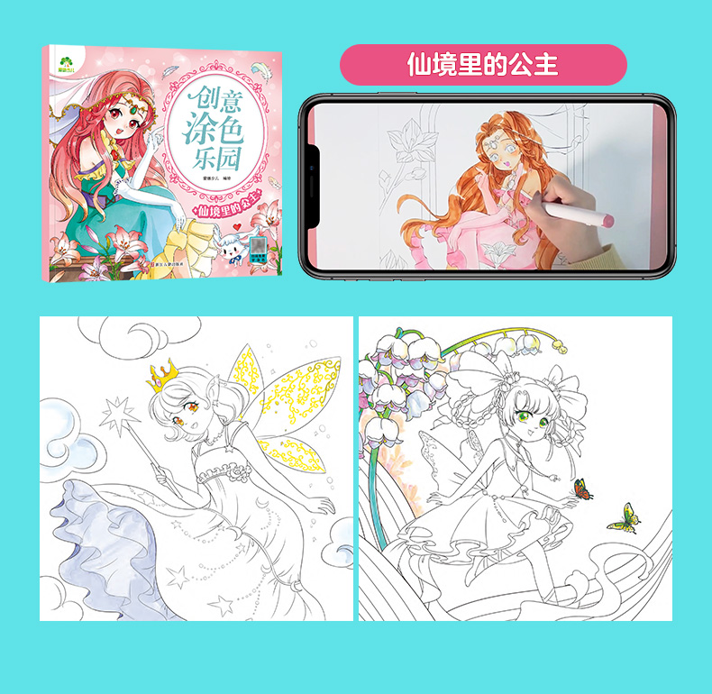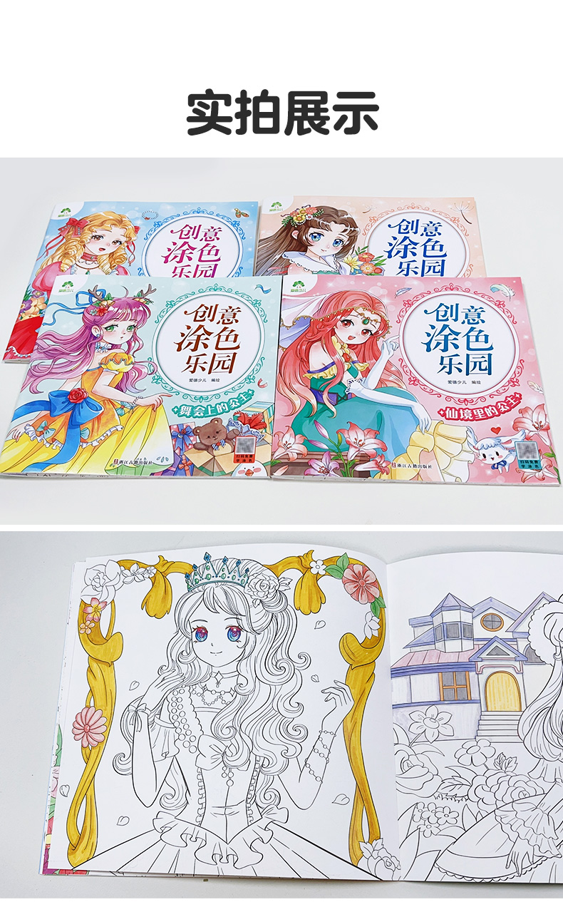 爱德少儿 创意涂色乐园 4册公主涂色画本绘画册公主换装涂色秀3-6岁简笔画宝宝学画画