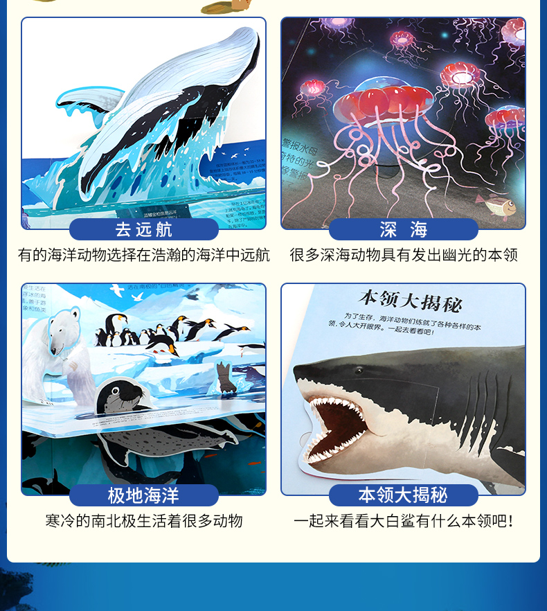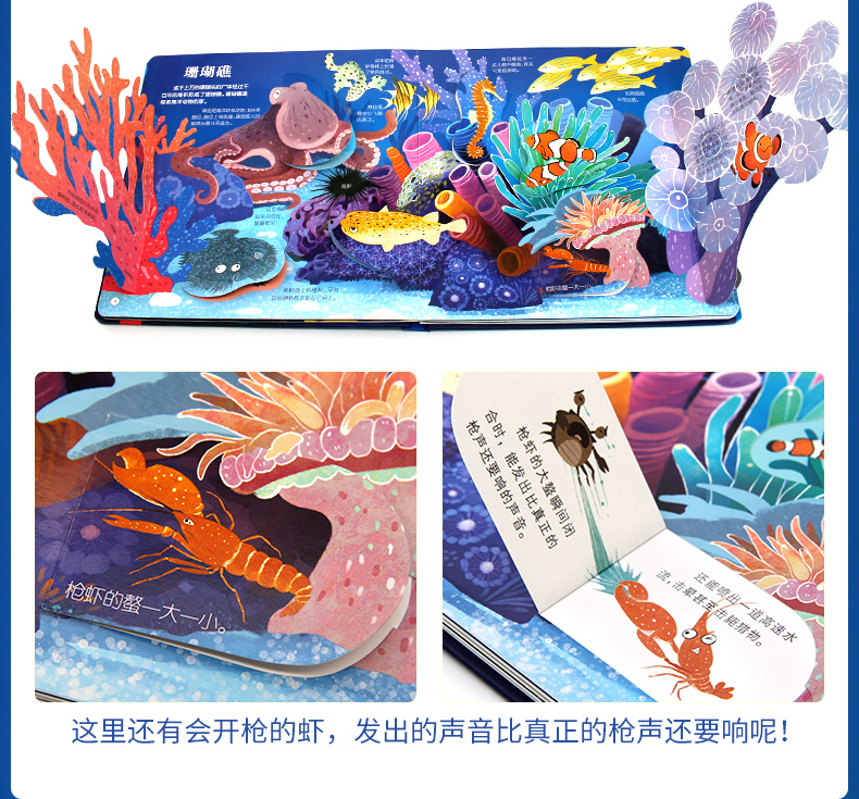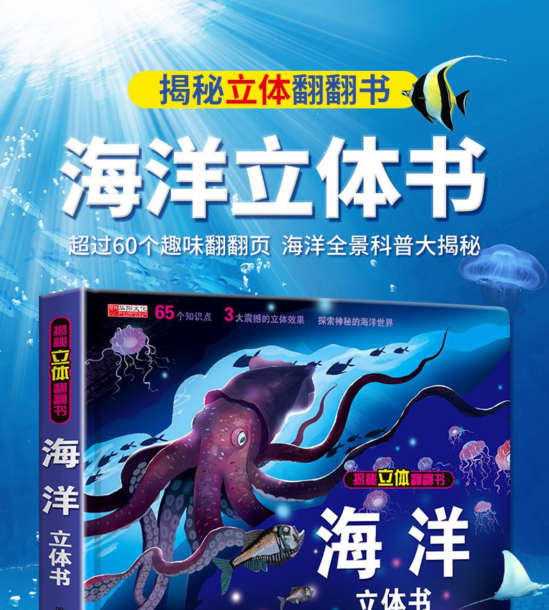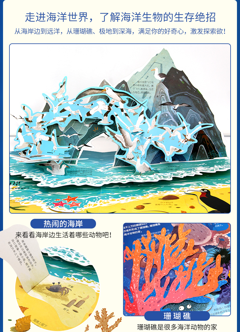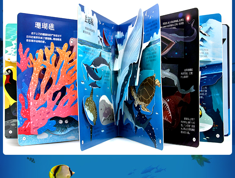 探秘海洋立体书3d揭秘系列儿童翻翻书6-8岁以上绘本故事书海底世界科普百科全书宝宝启蒙认知三地折叠书本幼儿园婴儿3岁情景体验